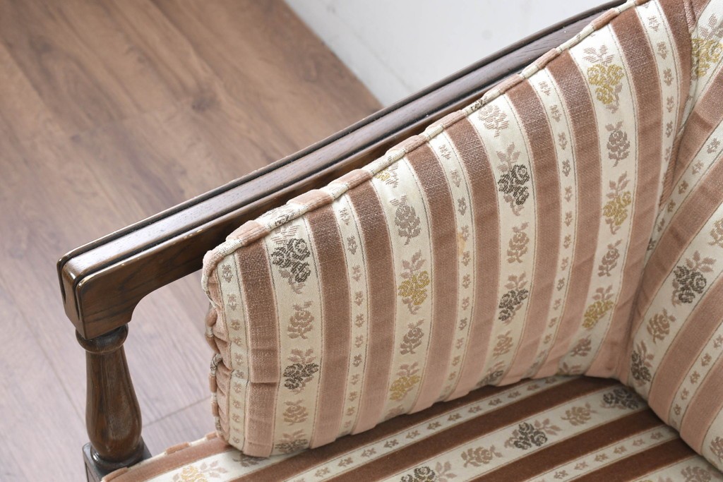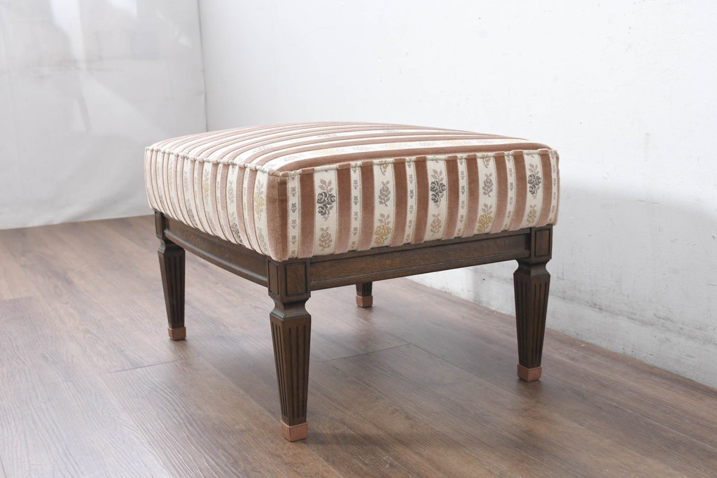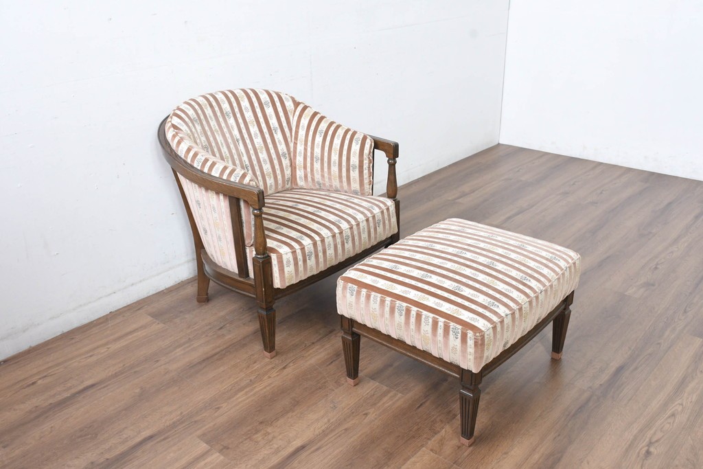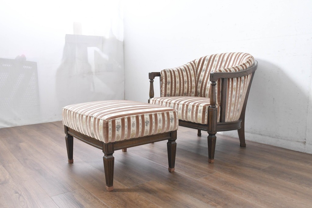 ラフジュ工房> 椅子・ベンチ> スツール > 中古 カリモク家具(karimoku) domani(ドマーニ) QUEENS LIFE(クイーンズライフ) クラシカルな空間を演出するアームチェアとスツールのセット アームチェア定価約27万6千円相当 スツール定価約10万円相当 (R-084588)