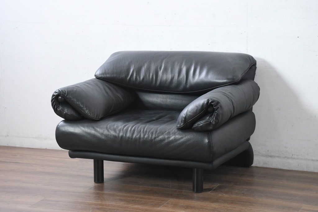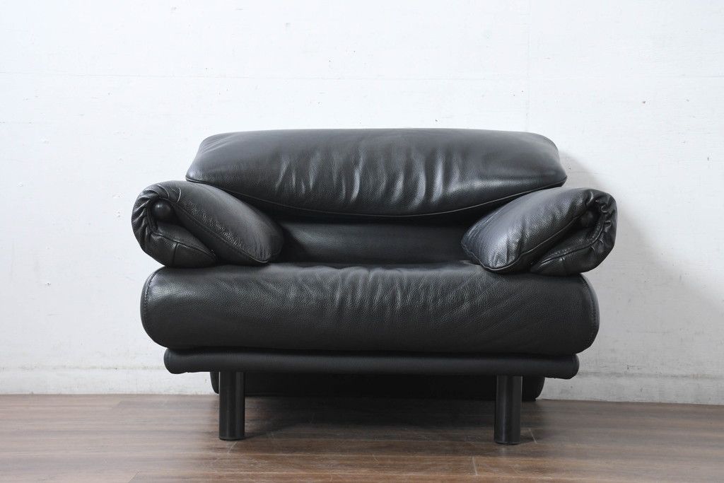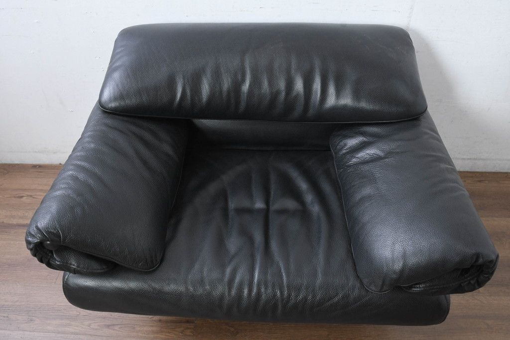 中古 Poltromec(ポルトロメック)社 ジェミニシリーズ レザー(本革) モダンな佇まいの1人掛けソファ(一人掛け、1Pソファ)(定価約30万円)(R-084596)