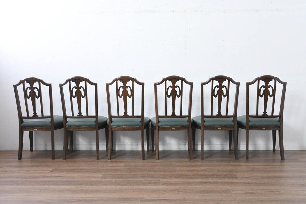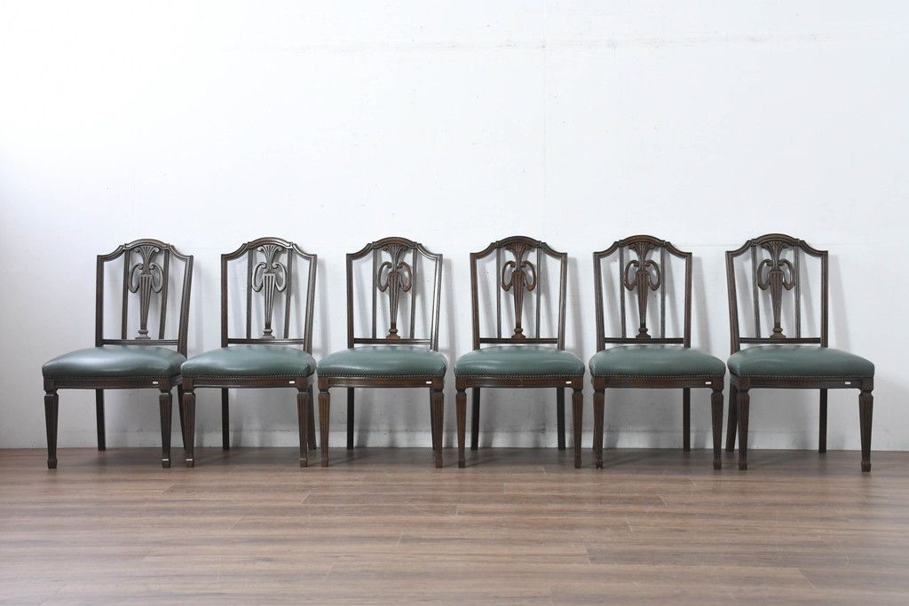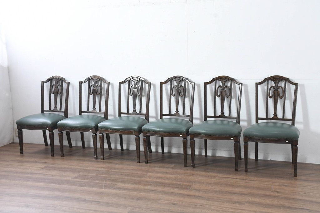 ラフジュ工房> 椅子・ベンチ> ダイニングチェア > 中古 美品 カリモク家具 domani(ドマーニ) QUEENS LIFE(クイーンズライフ) 本革 優美なフォルムで格調高い雰囲気漂うダイニングチェア6脚セット(アームレスチェア、椅子、イス、バラ売り可能)(現行価格約132万円)(R-084600)