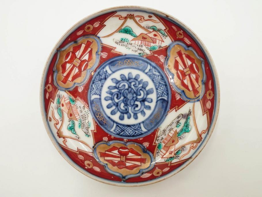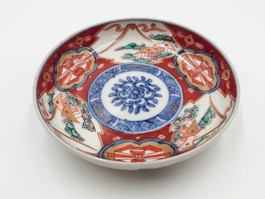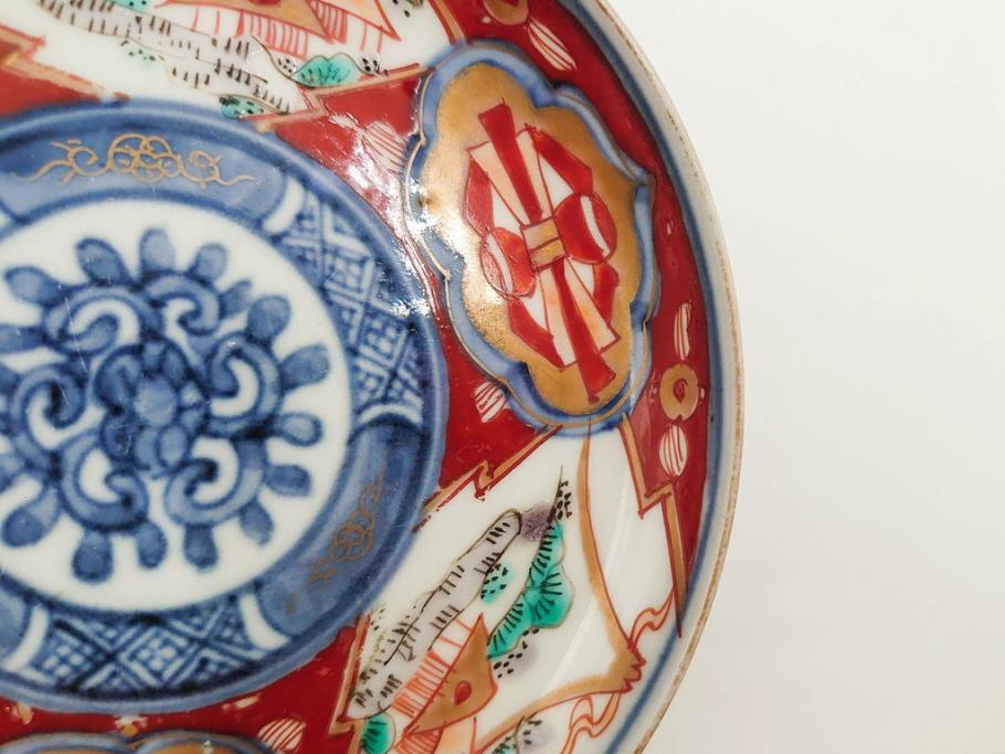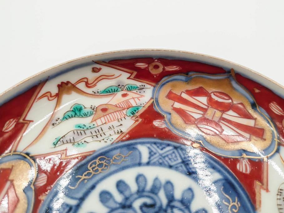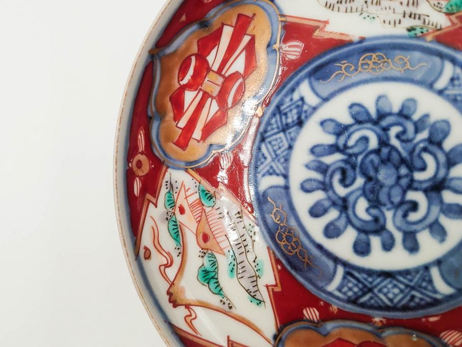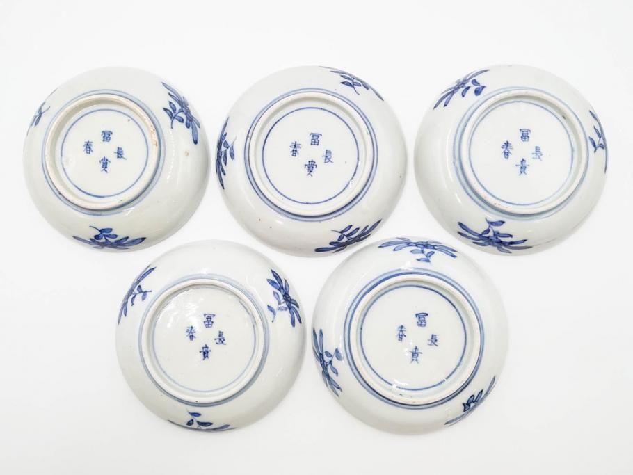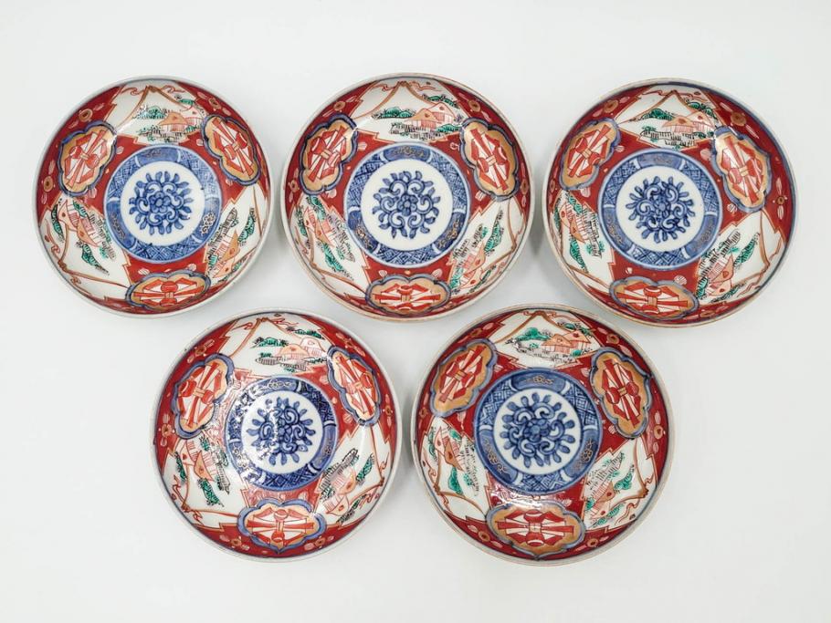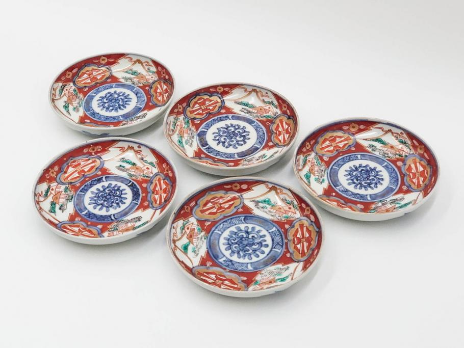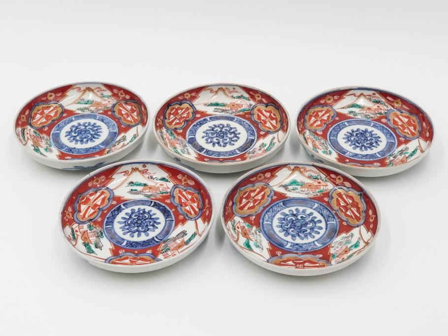 和食器・茶道具> 陶磁器 > 江戸期 古伊万里 冨貴長春 色絵 染付 金彩 約12cm 3.7寸 緻密な絵付けが目を引く小皿5枚セット (R-084618)