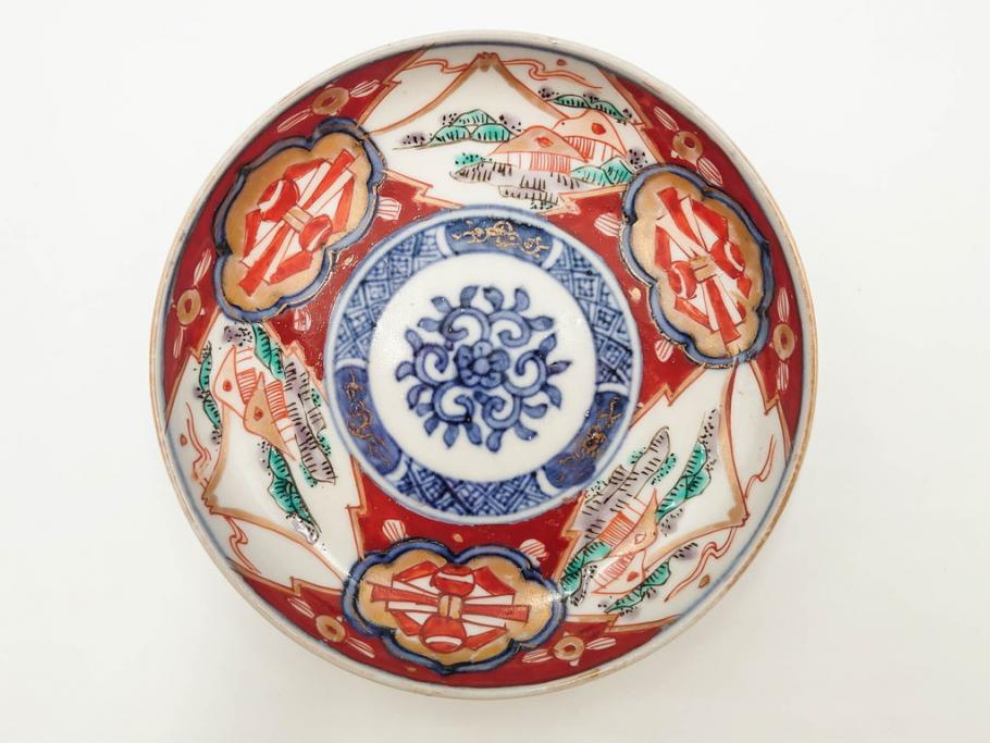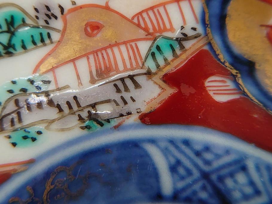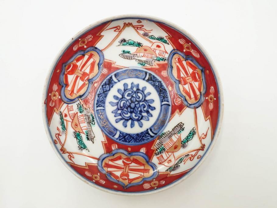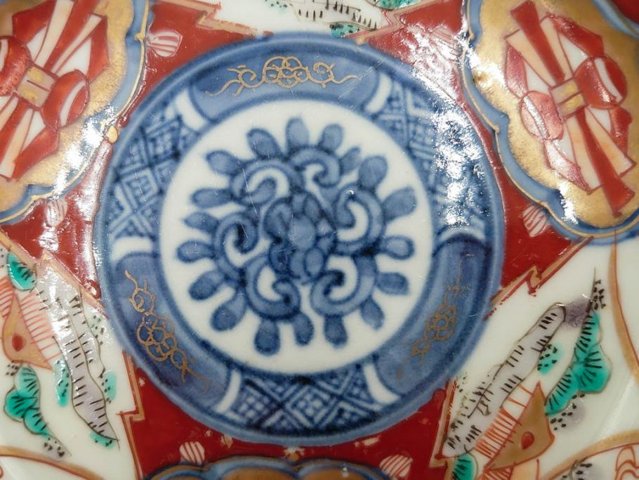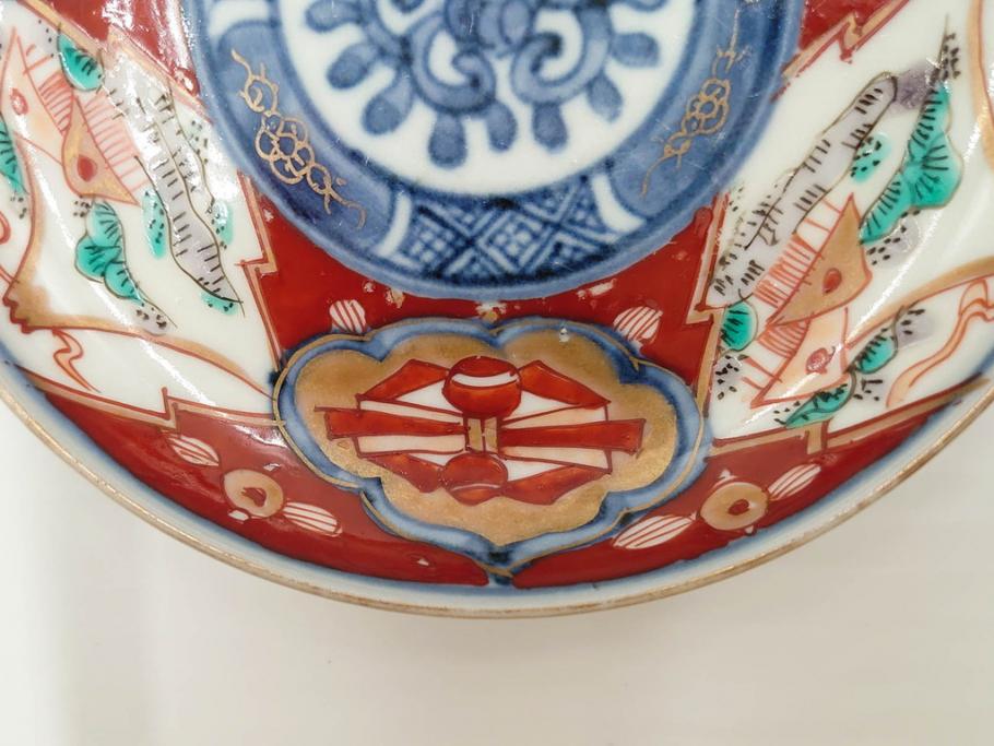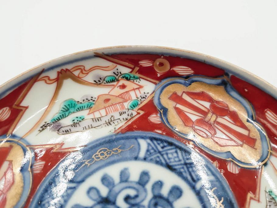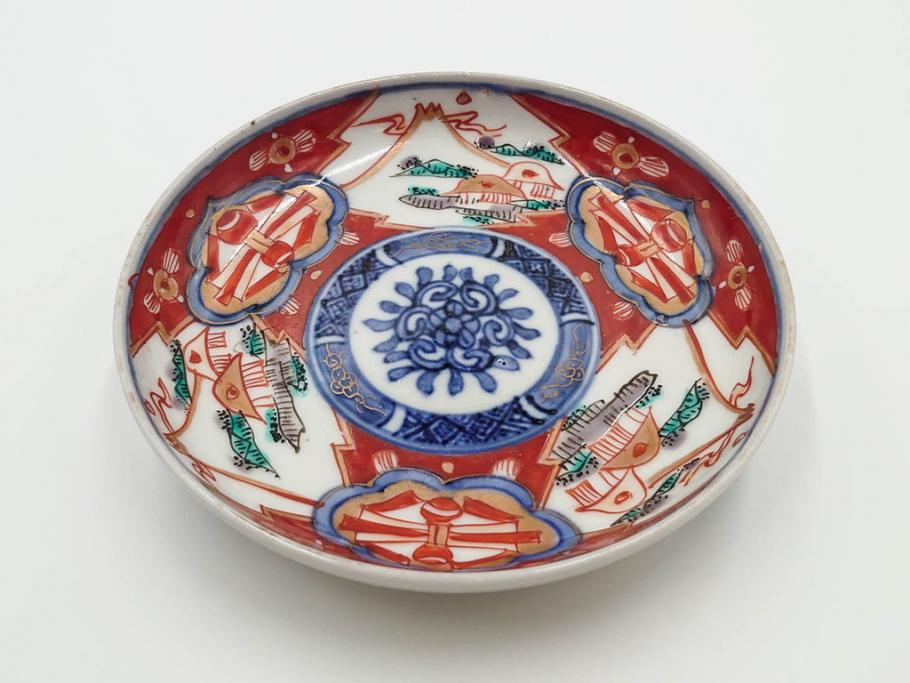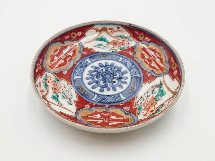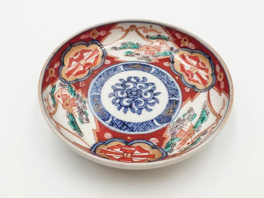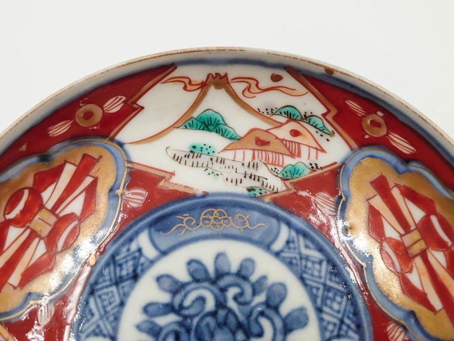 和食器・茶道具> 陶磁器 > 江戸期 古伊万里 冨貴長春 色絵 染付 金彩 約12cm 3.7寸 緻密な絵付けが目を引く小皿5枚セット (R-084618)