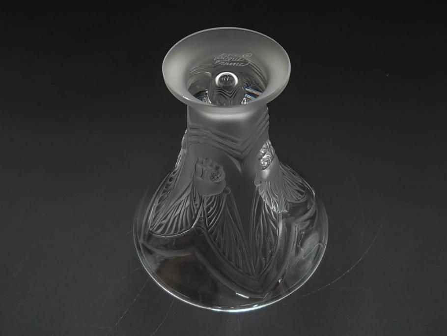 雑貨 > フランス LALIQUE(ラリック) シガール(CIGALES) セミ 高さ 約10cm 繊細な輝きが空間に深みをもたらすフラワーベース (R-084628)