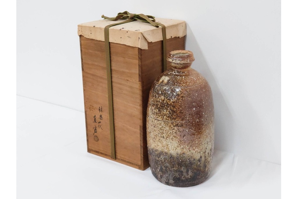 雑貨> オブジェ > 滋賀県指定無形文化財 四代 上田直方 信楽焼 高さ 約30cm 温かみのある風合いが魅力の花瓶 (R-084634)