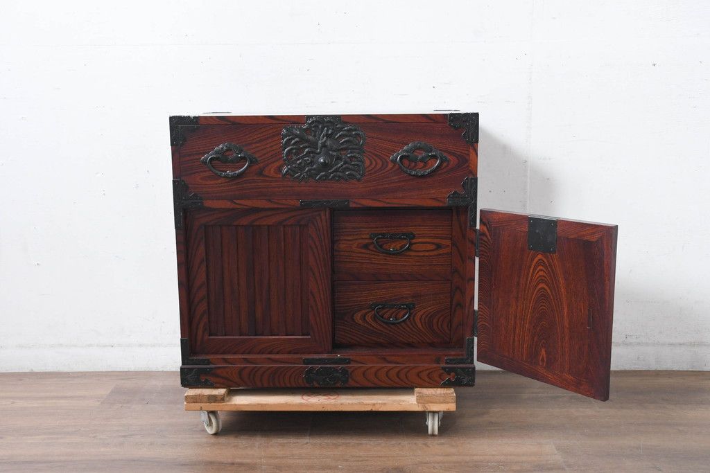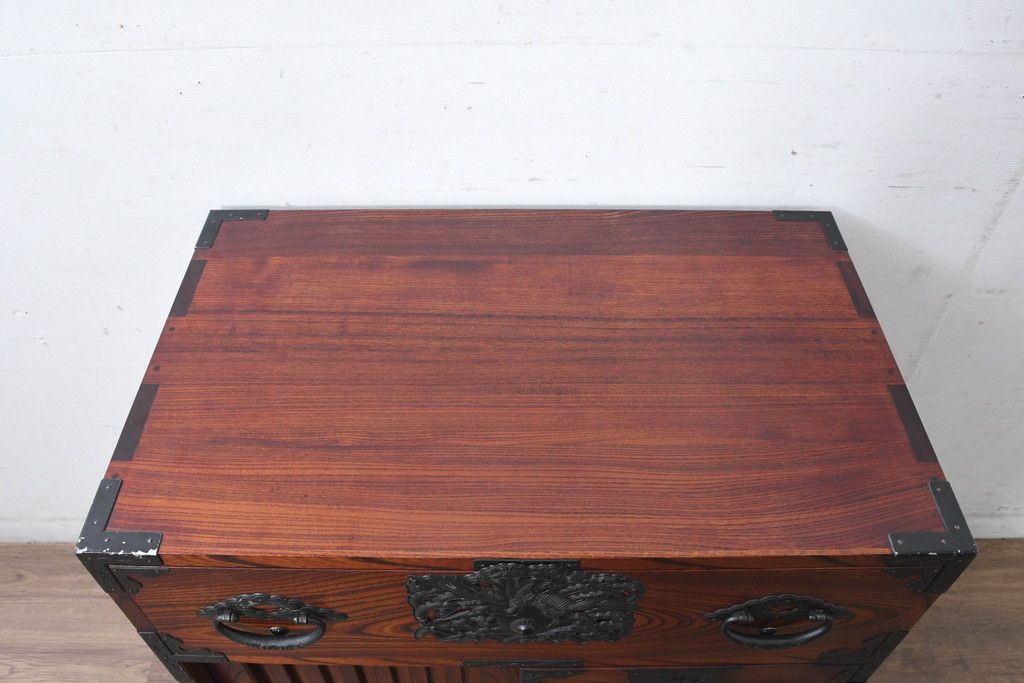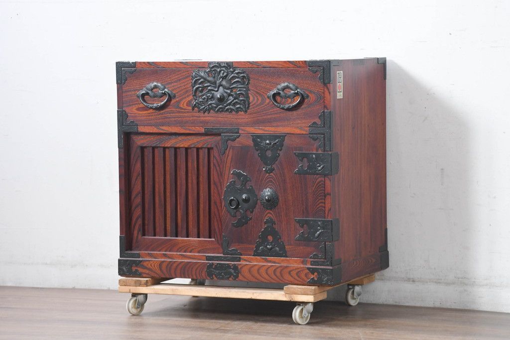 中古 美品 希少!! 岩谷堂箪笥 特注の無垢材モデル 通産大臣指定 伝統工芸品認定品 職人が魅せる手打ち金具とワンランク上の風格と存在感が魅力の小箪笥(収納箪笥、引き出し)(定価推定約100万円以上)(R-084642)