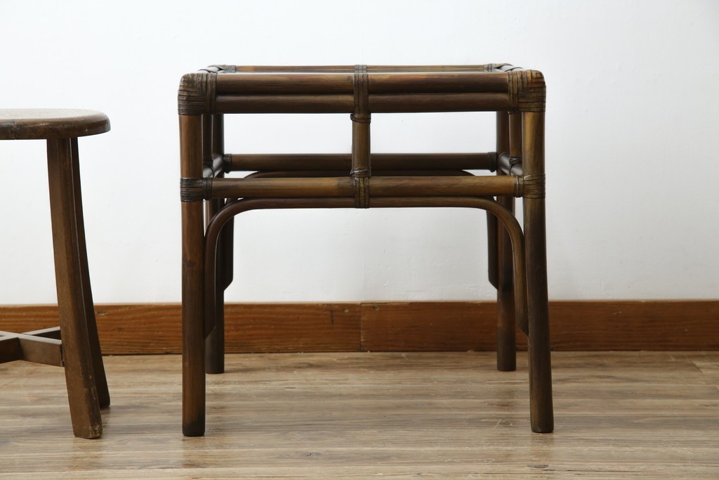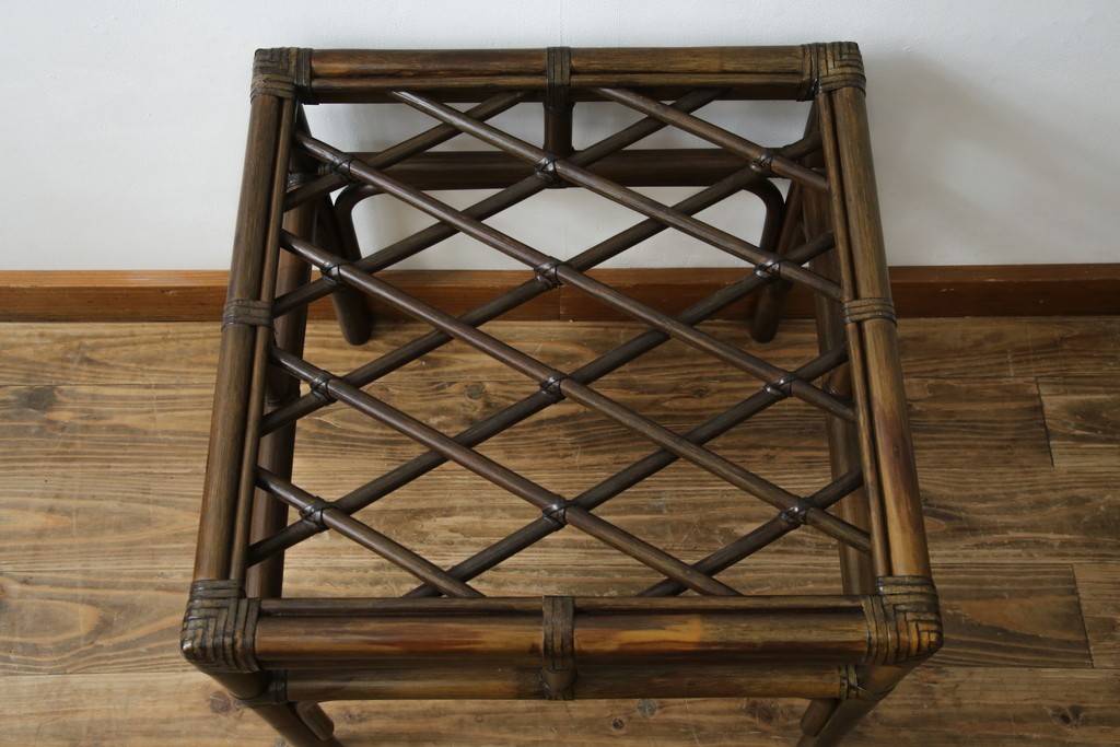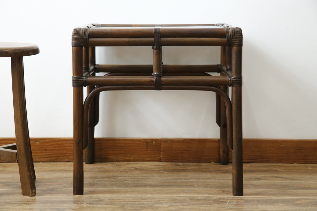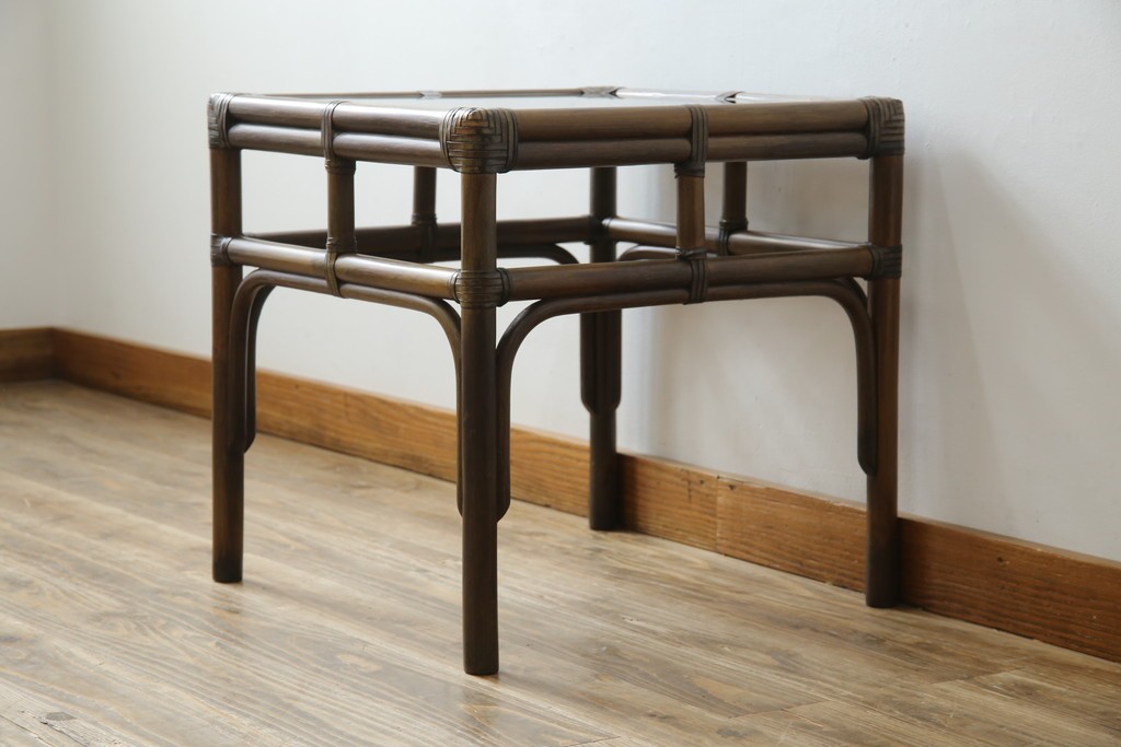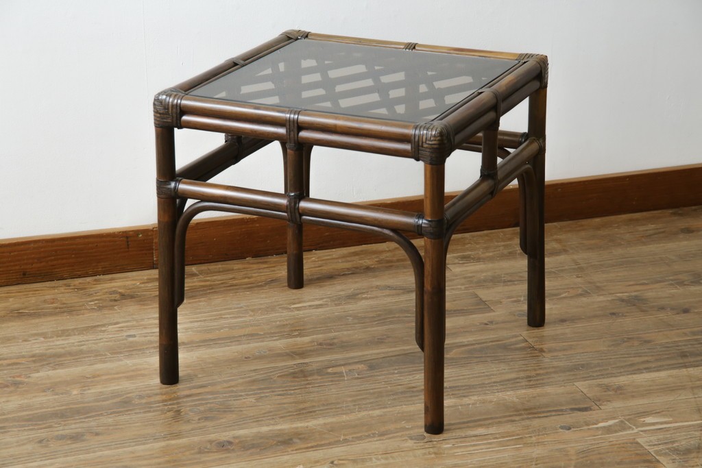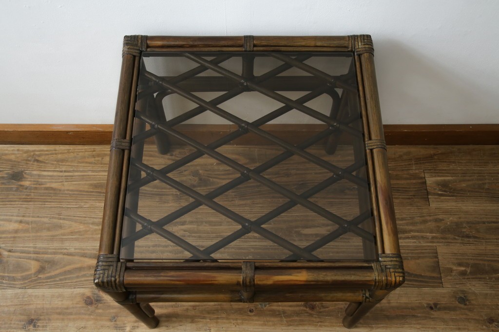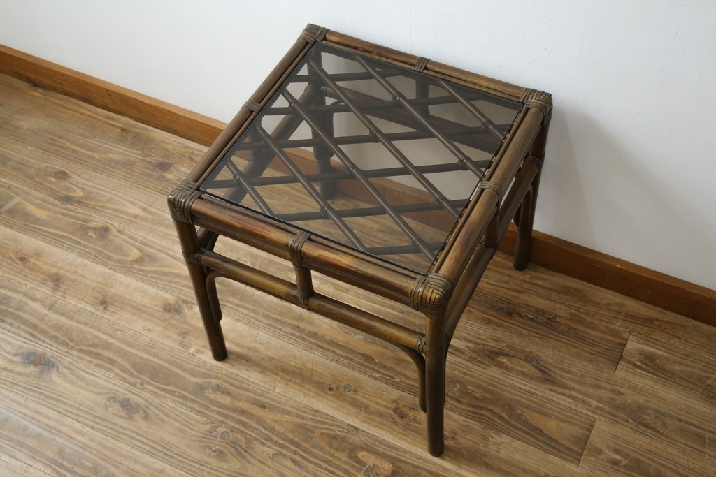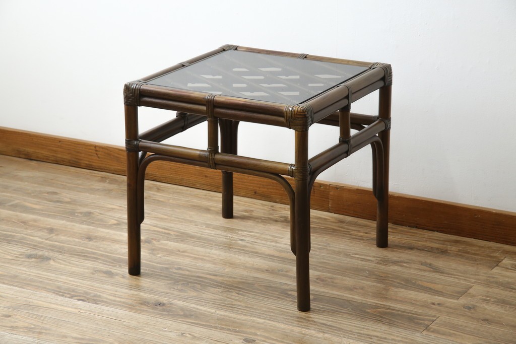 テーブル> サイドテーブル > 和製ヴィンテージ 美品 希少モデル maruni(マルニ木工) オールドマルニ ラタン スモークガラストップ くつろぎ空間にぴったりのサイドテーブル (R-084644)