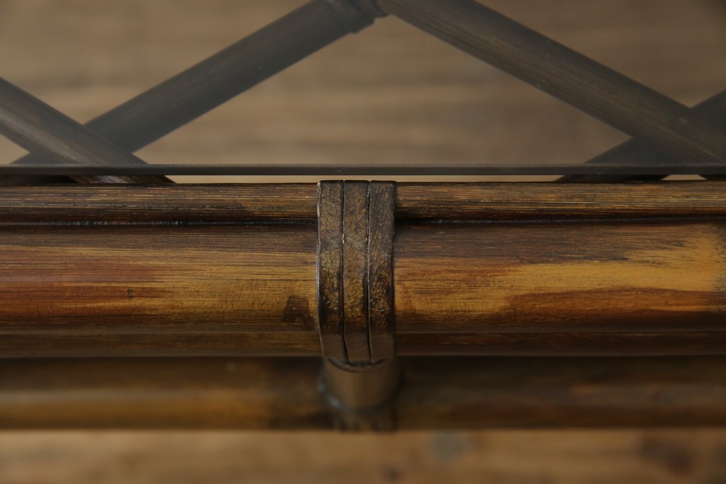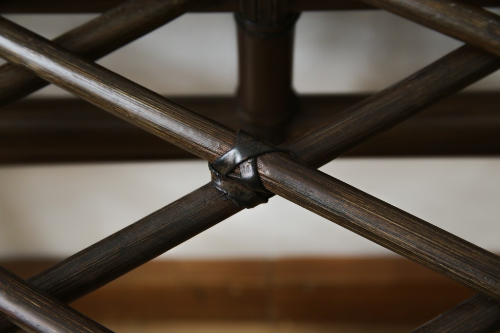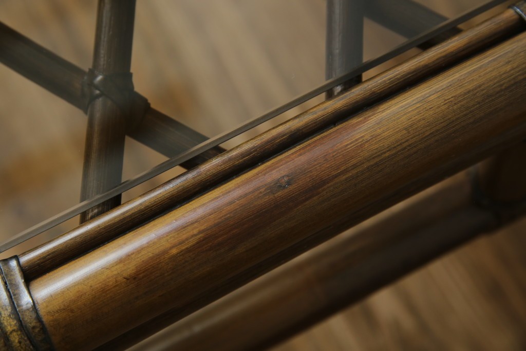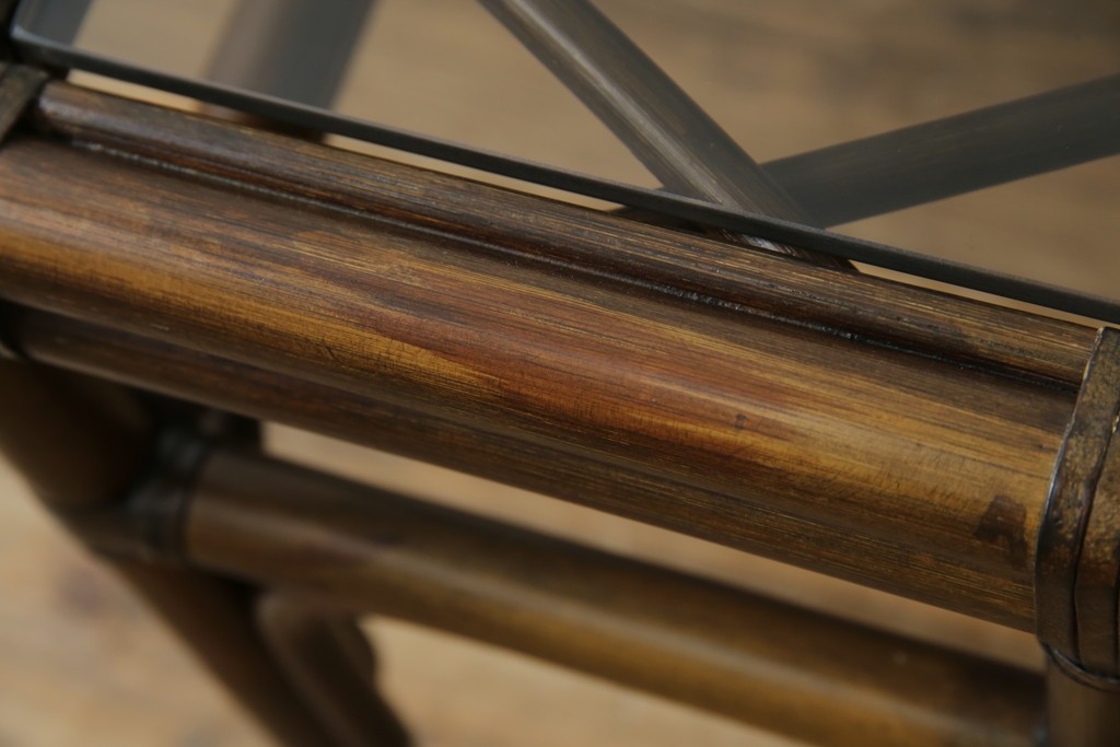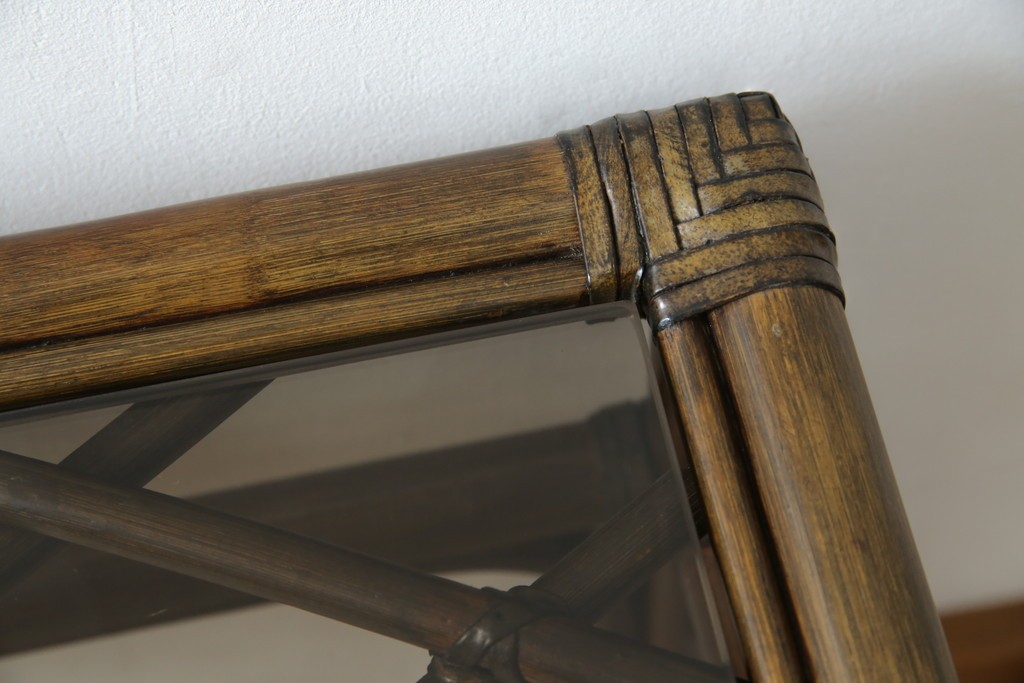 和製ヴィンテージ 美品 希少モデル maruni(マルニ木工) オールドマルニ ラタン スモークガラストップ くつろぎ空間にぴったりのサイドテーブル (R-084644)