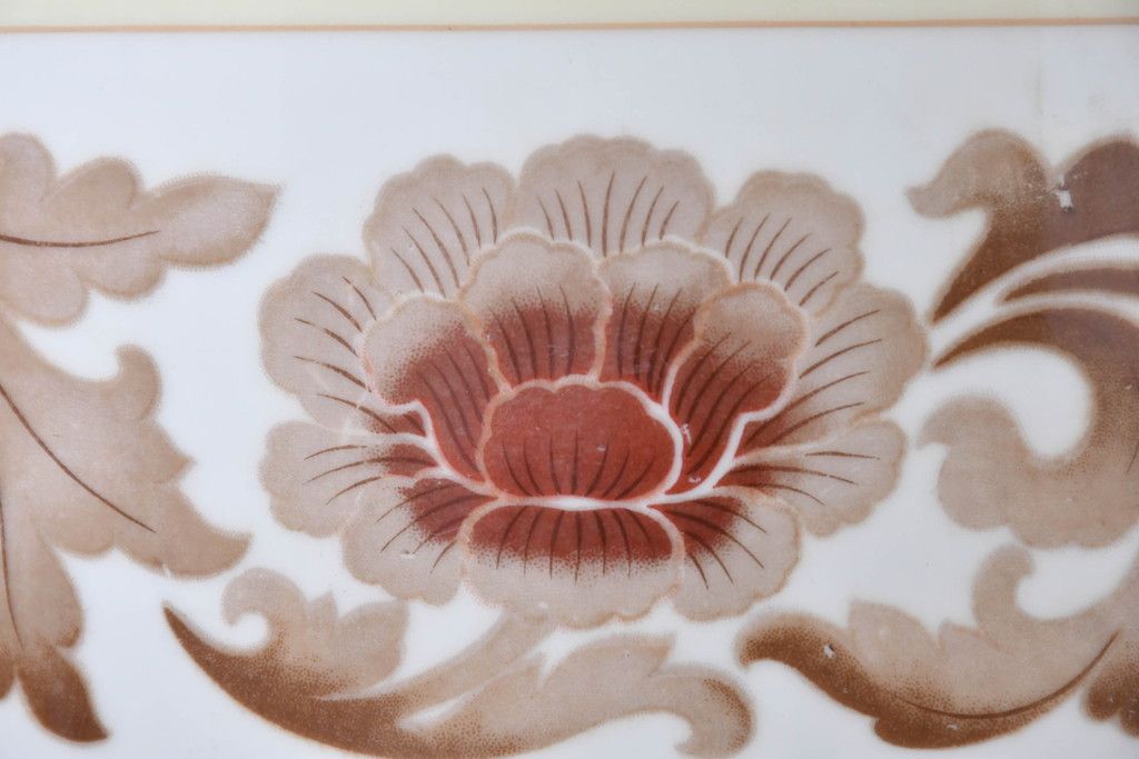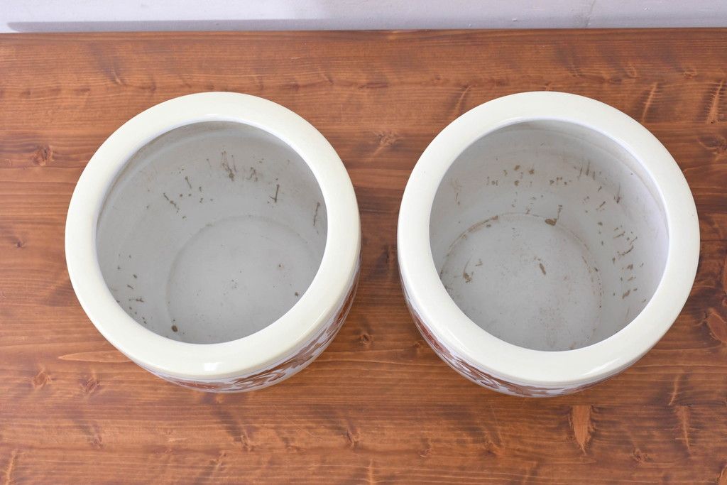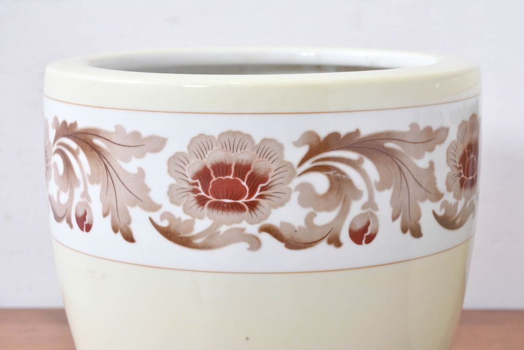 火鉢> 瀬戸火鉢 > アンティーク雑貨 オールドノリタケ(則武、日陶) NORITAKE 月桂樹印 菊牡丹文がレトロな火鉢2点セット(手あぶり、鉢カバー、傘立て)(R-084659)