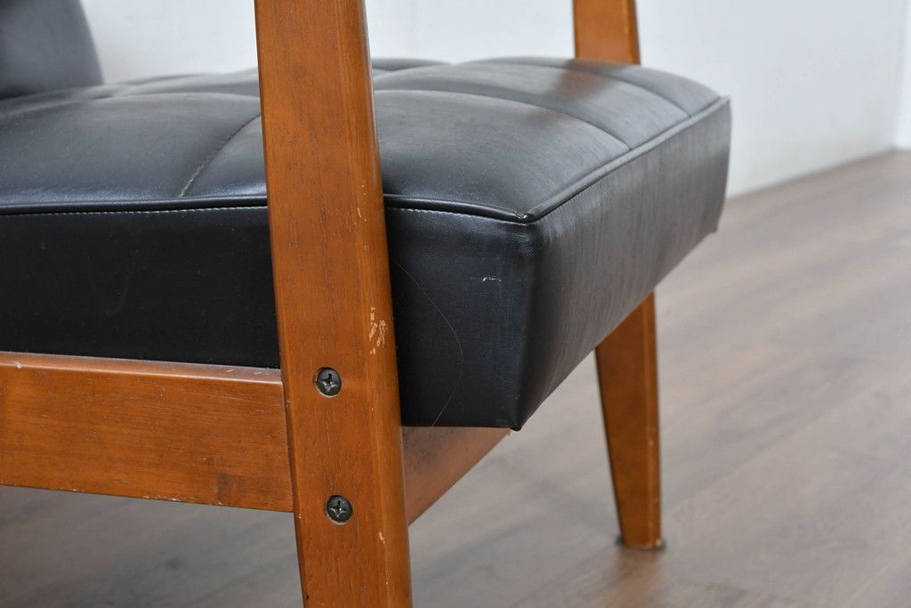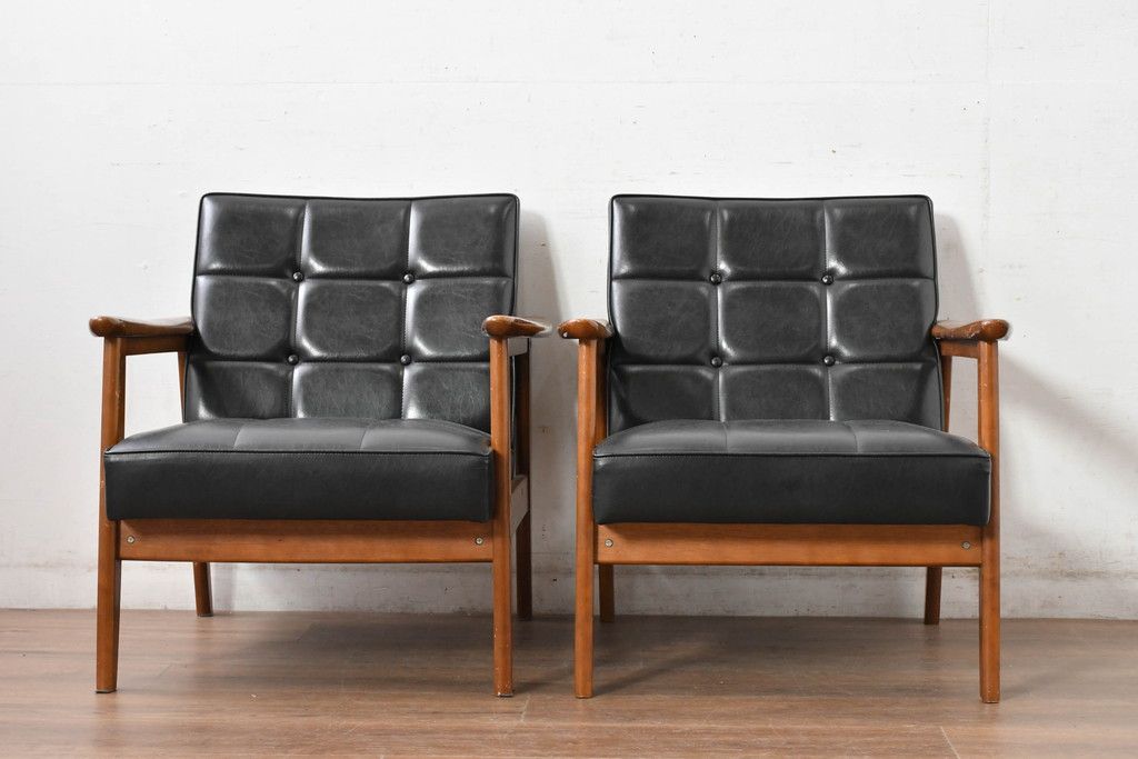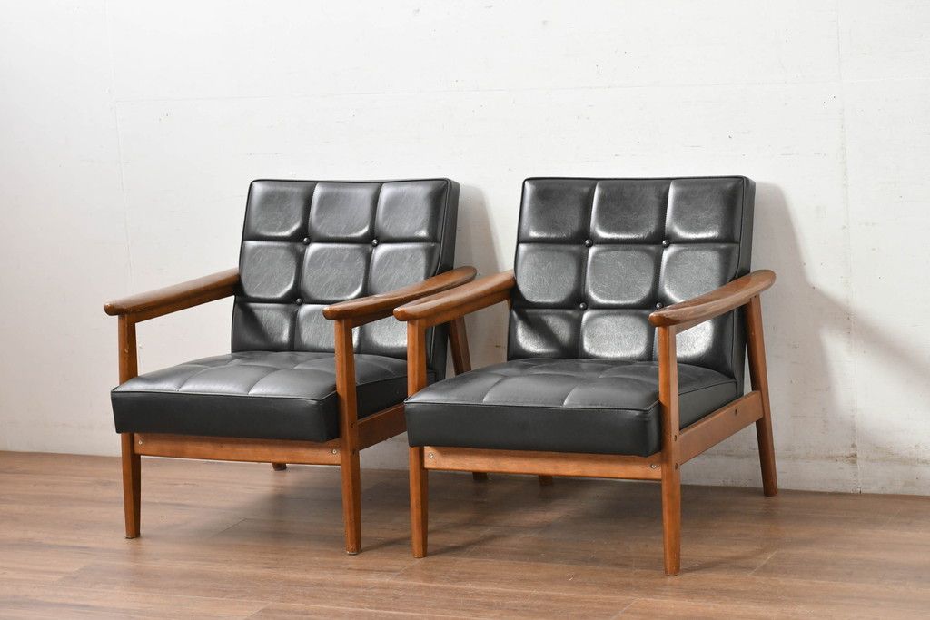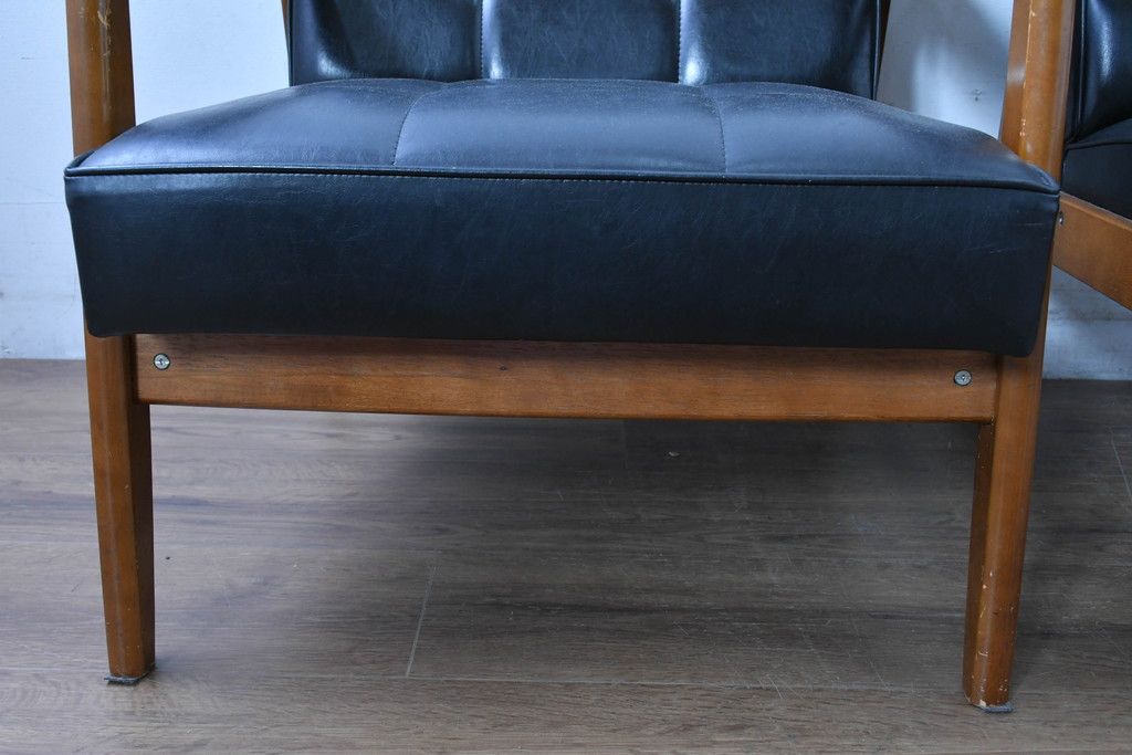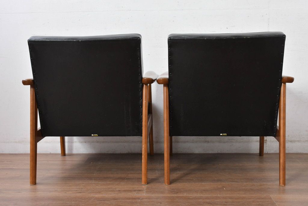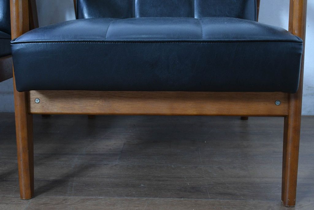 和製ビンテージ 美品 オールドカリモク カリモク家具(karimoku) 合皮 上質なモダン空間を演出するKチェア2脚セット(1シーター、1人掛け、一人掛け、アームチェア、椅子、イス、ヴィンテージ、バラ売り可能)(R-084668)
