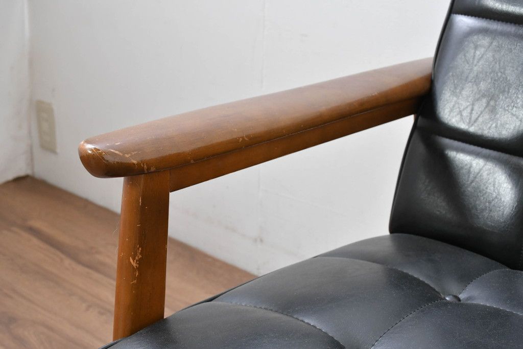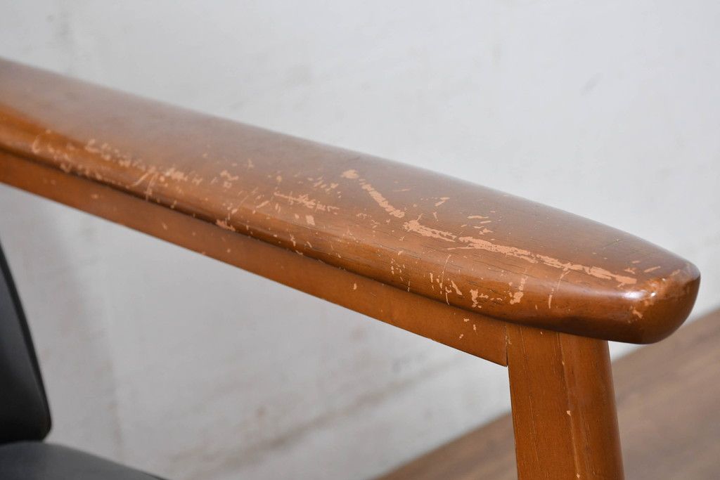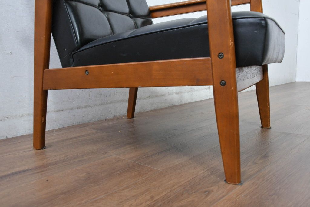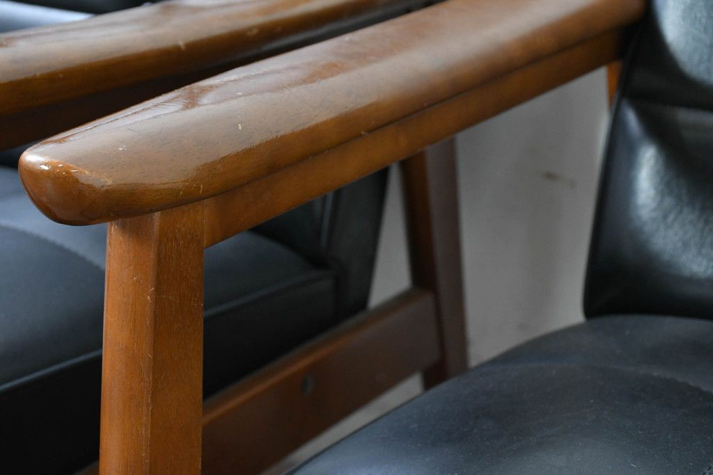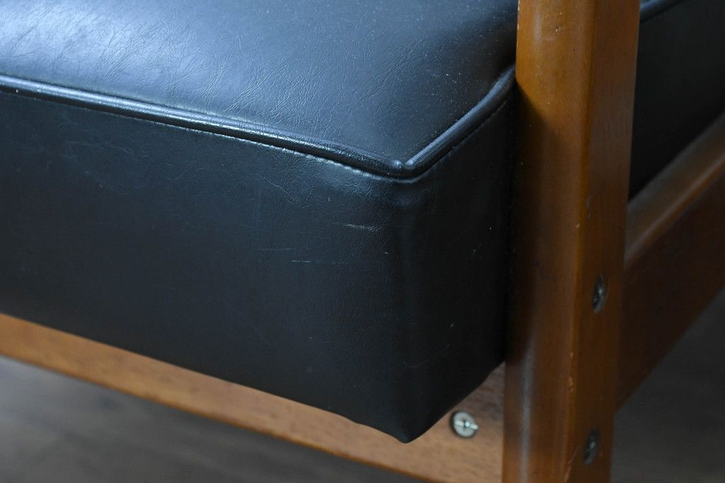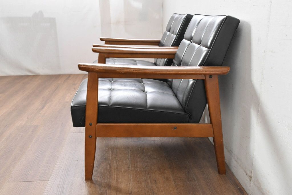 和製ビンテージ 美品 オールドカリモク カリモク家具(karimoku) 合皮 上質なモダン空間を演出するKチェア2脚セット(1シーター、1人掛け、一人掛け、アームチェア、椅子、イス、ヴィンテージ、バラ売り可能)(R-084668)