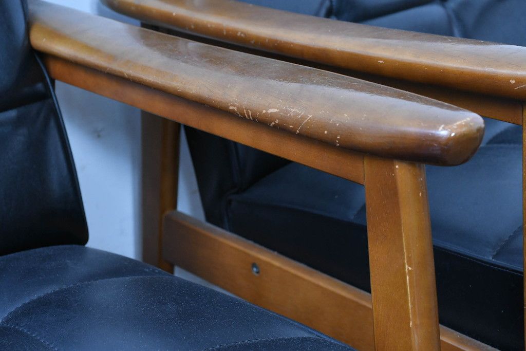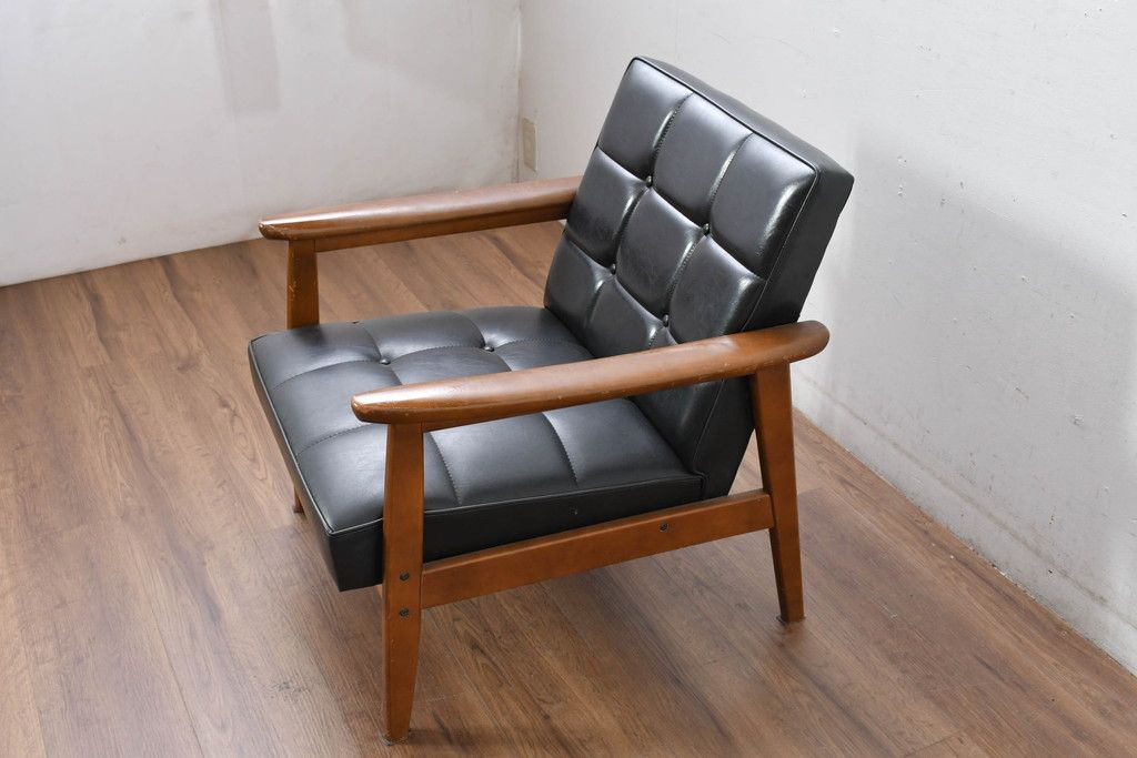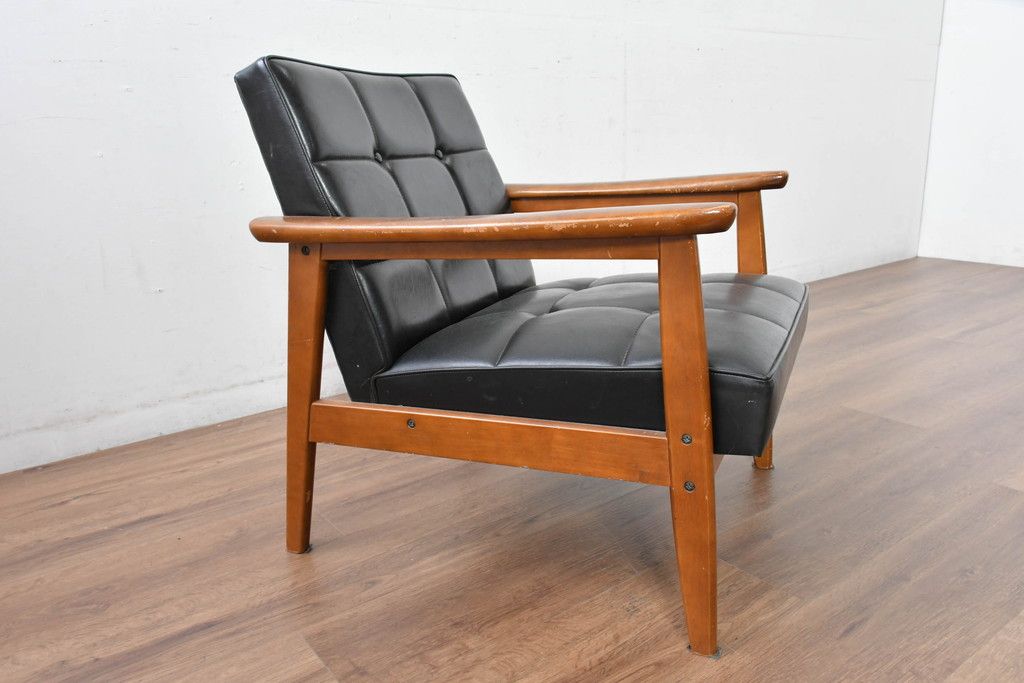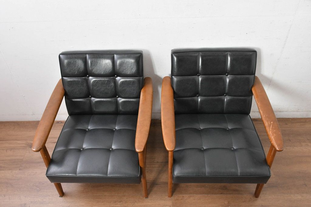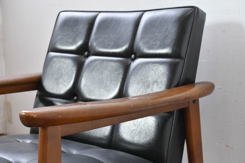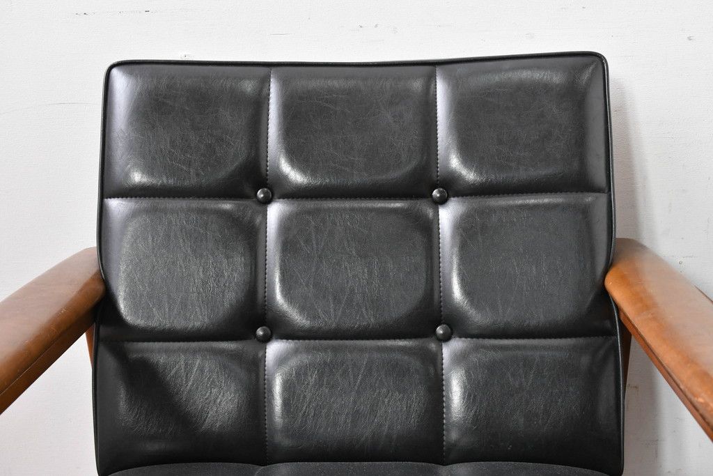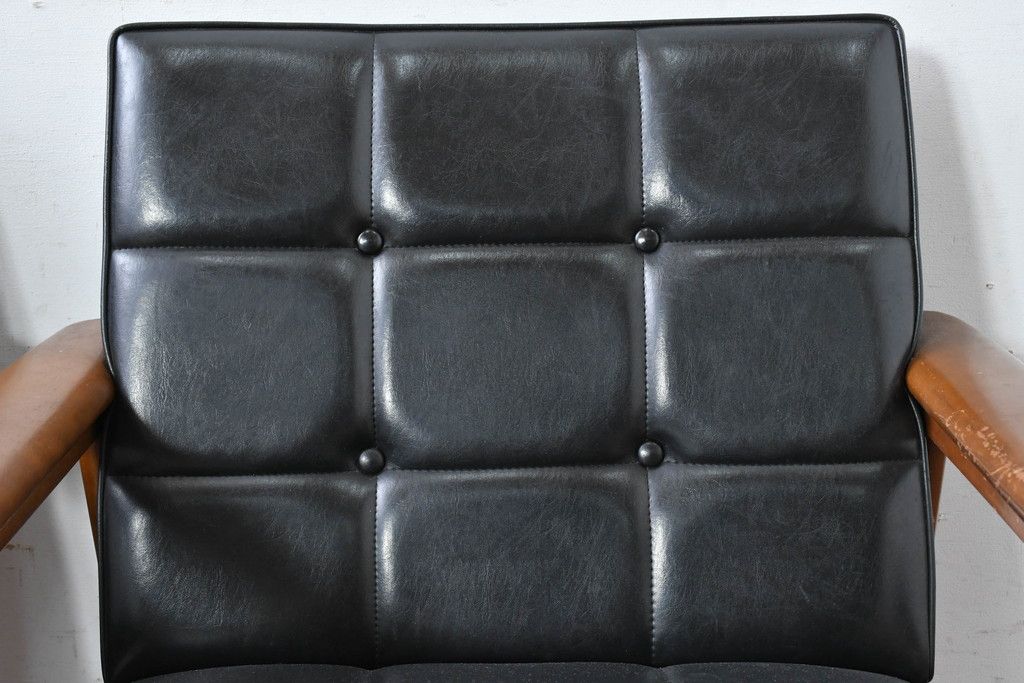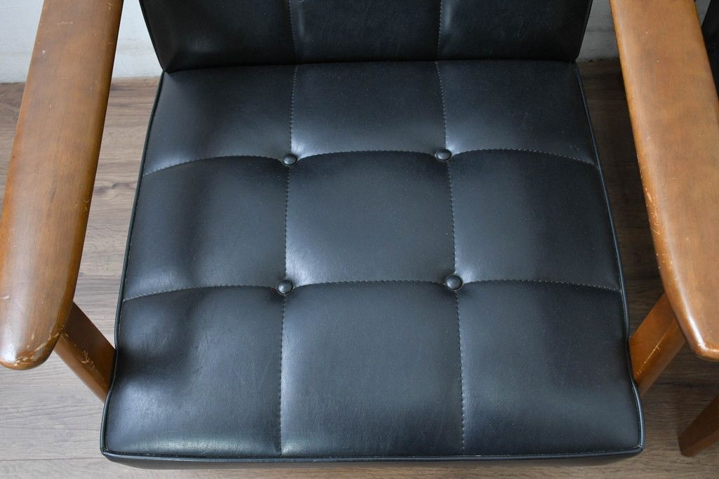 椅子・ベンチ> イージーチェア > 和製ビンテージ 美品 オールドカリモク カリモク家具(karimoku) 合皮 上質なモダン空間を演出するKチェア2脚セット(1シーター、1人掛け、一人掛け、アームチェア、椅子、イス、ヴィンテージ、バラ売り可能)(R-084668)