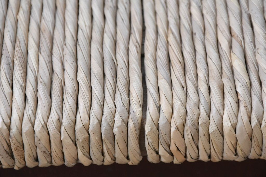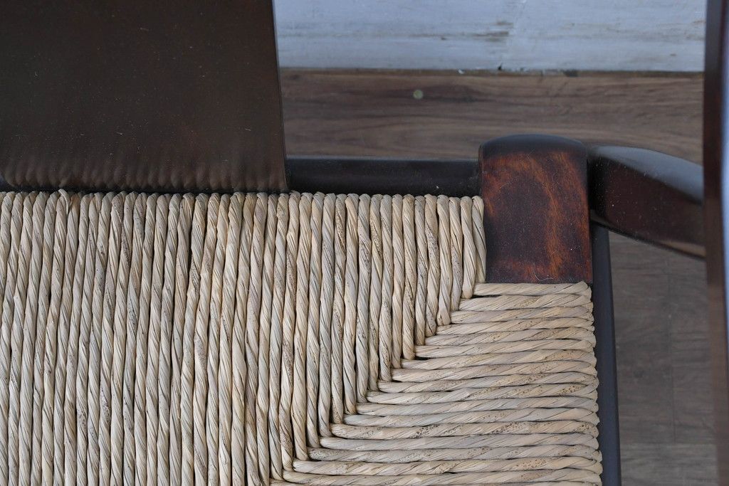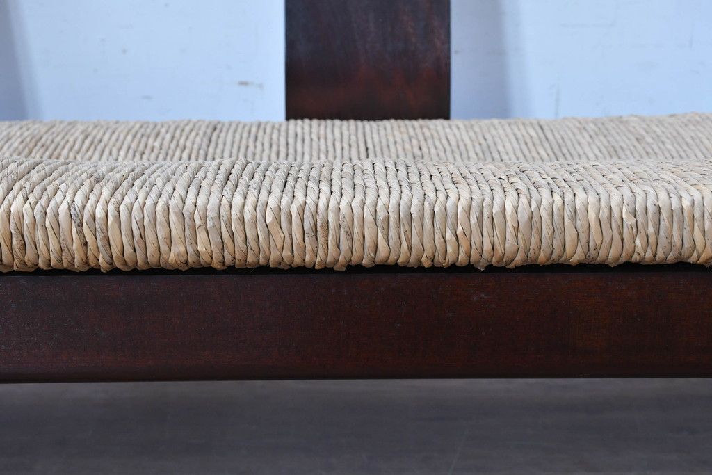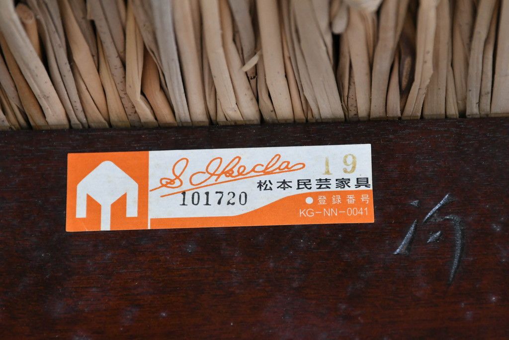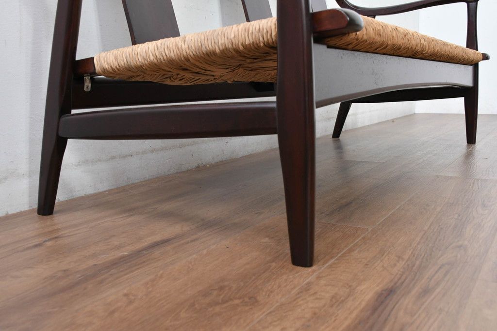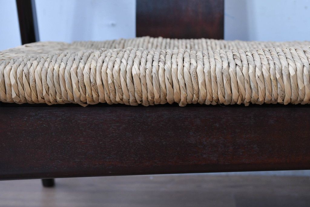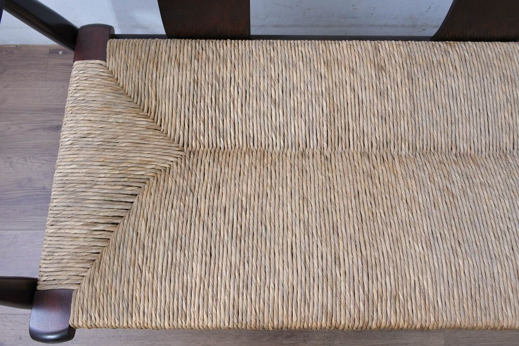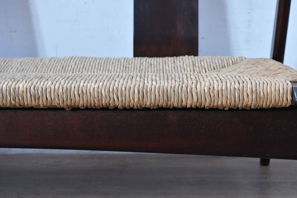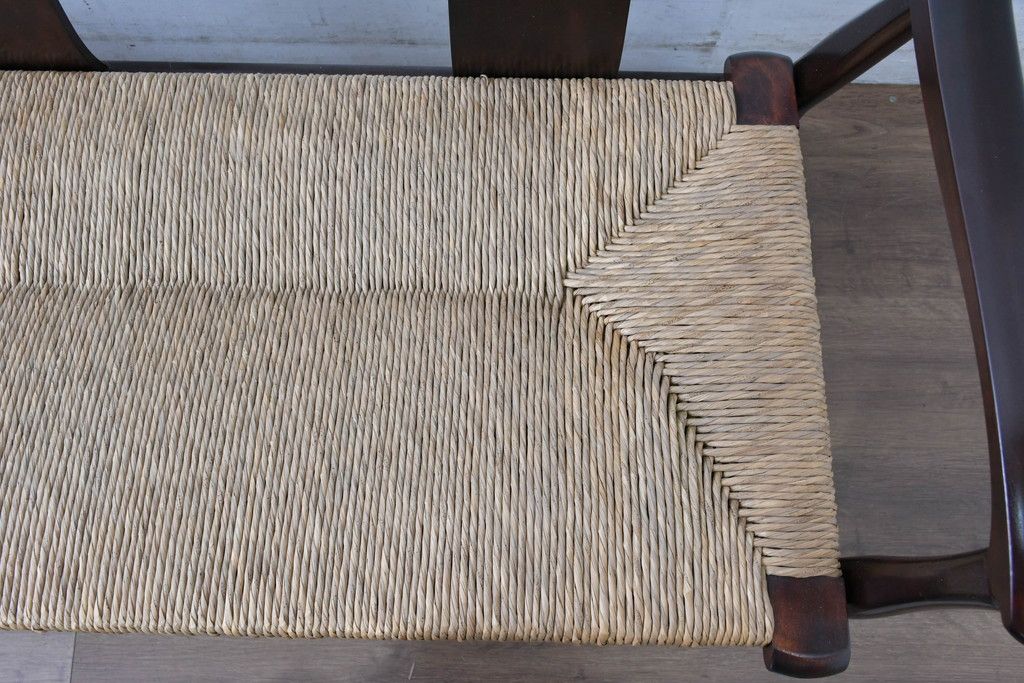 椅子・ベンチ> ベンチ > 中古 松本民芸家具 #77型 ラッシ座(ガマ座) 和モダンな雰囲気を醸し出す3人掛け曲肘イス(定価約45万円)(アームベンチ、ラッシチェア、3P、三人掛け、椅子、ソファ)(R-084672)