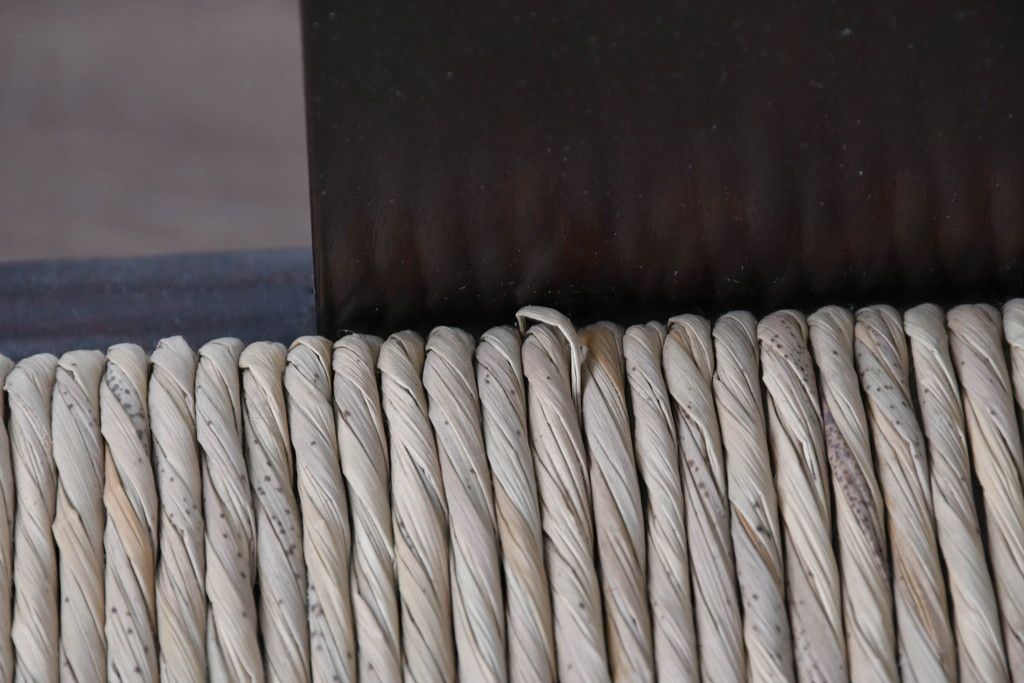中古 松本民芸家具 #77型 ラッシ座(ガマ座) 和モダンな雰囲気を醸し出す3人掛け曲肘イス(定価約45万円)(アームベンチ、ラッシチェア、3P、三人掛け、椅子、ソファ)(R-084672)