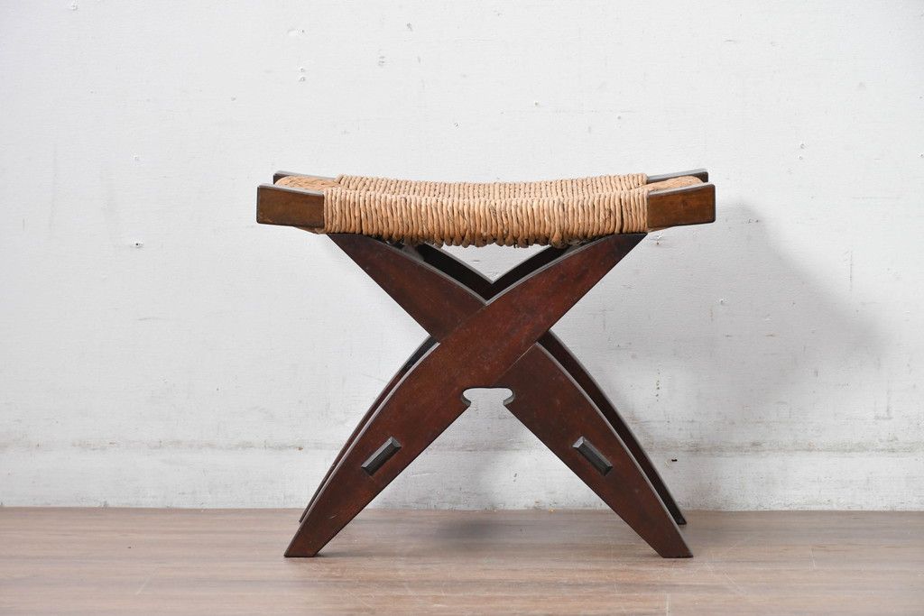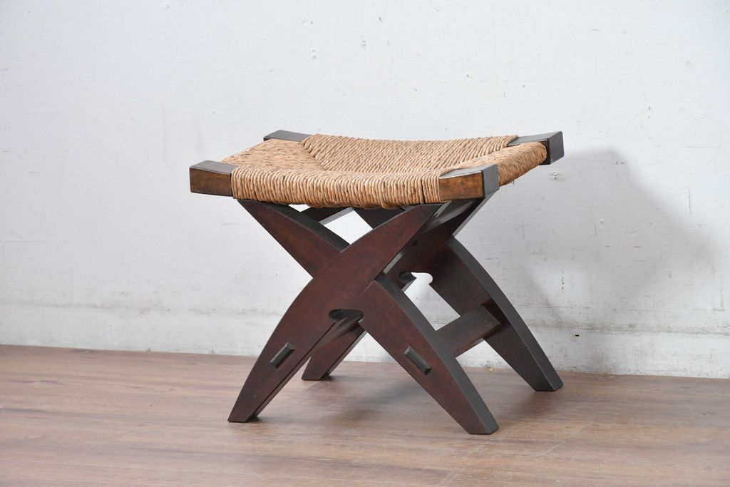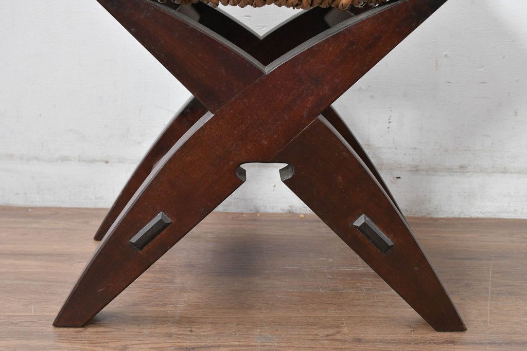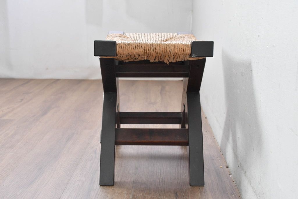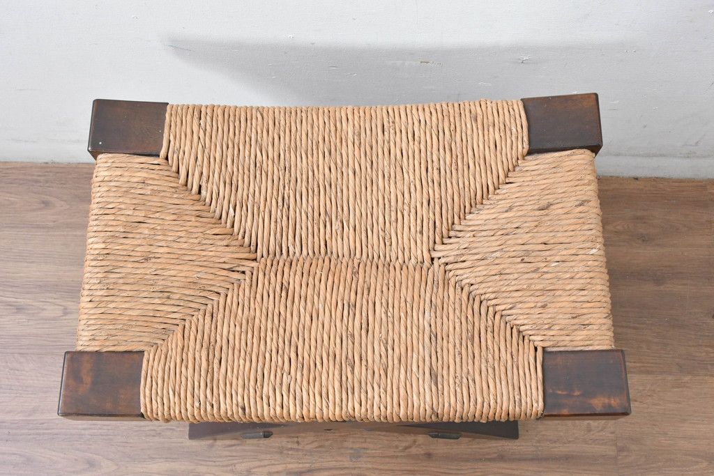 中古 美品 松本民芸家具 ラッシ座面(い草) 和モダンな空間づくりにおすすめの#222鞍型スツール(椅子、チェア、イス)(R-084675)