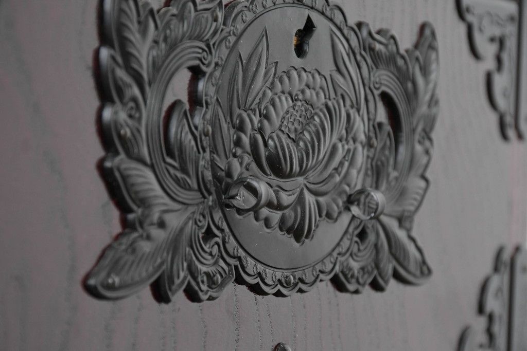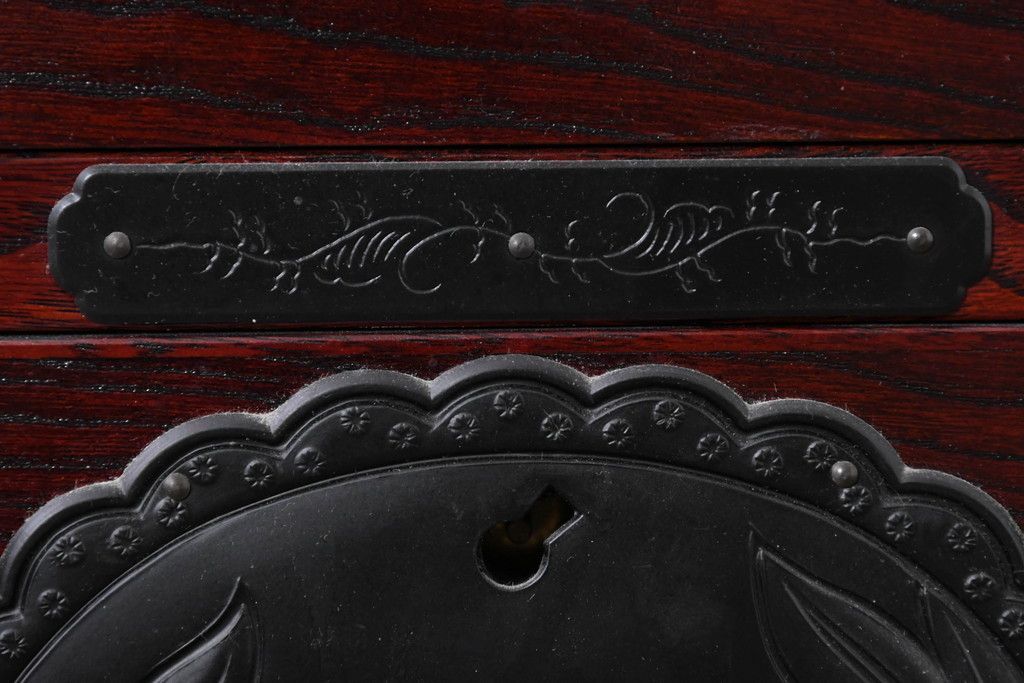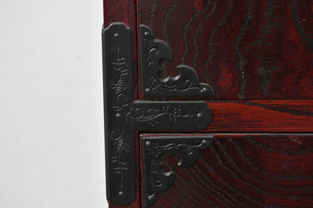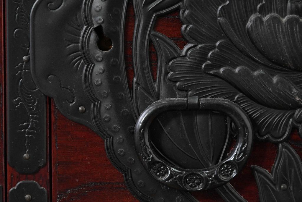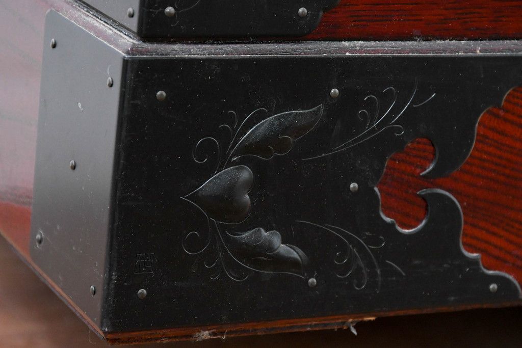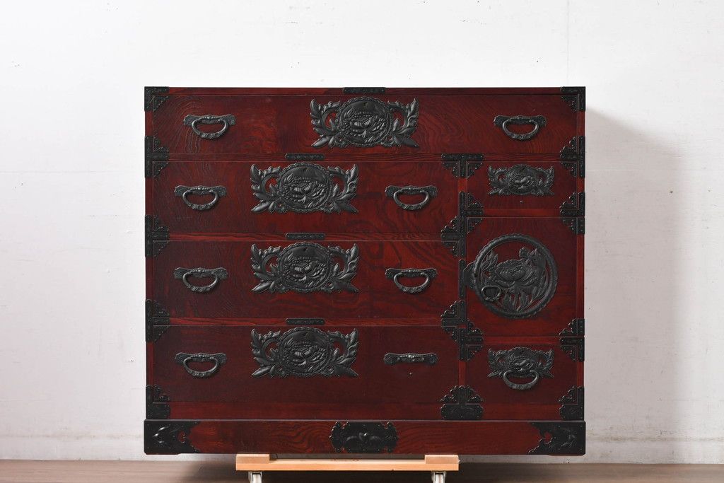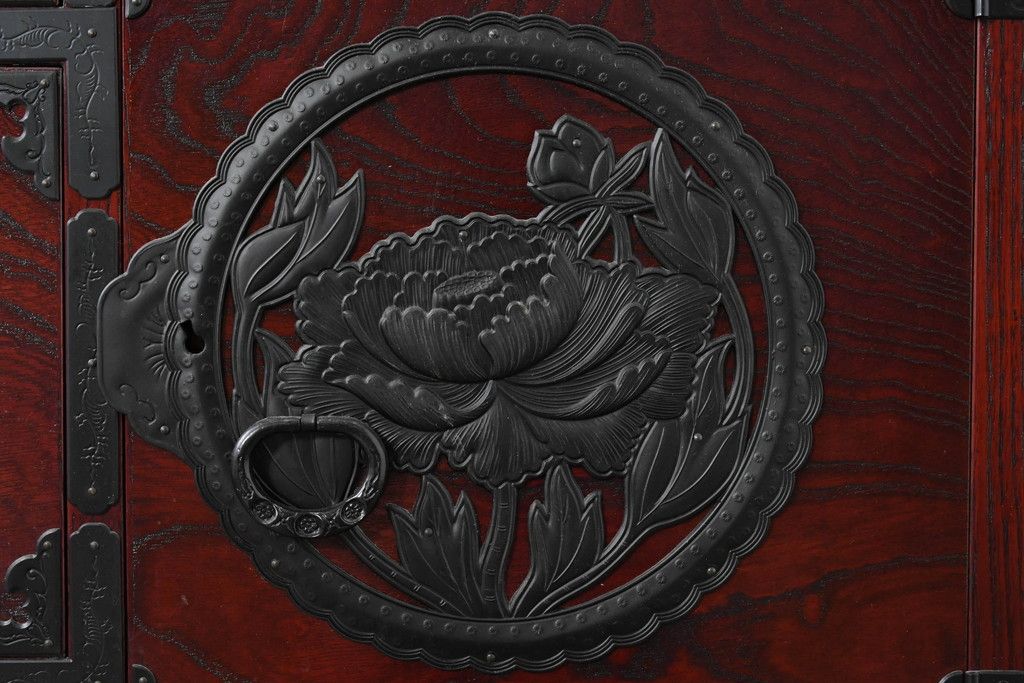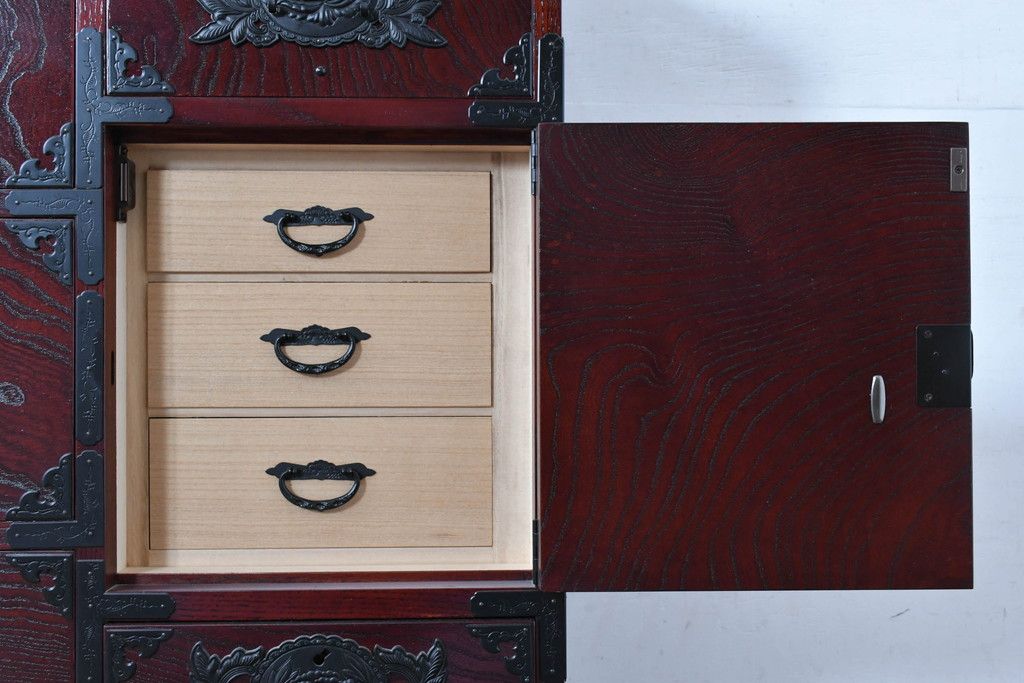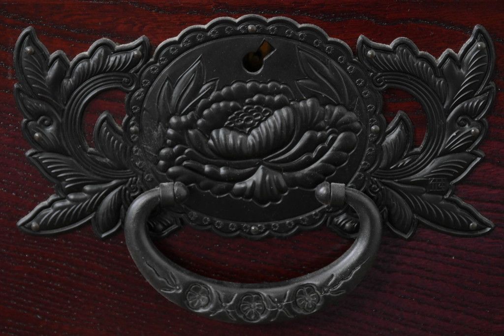 和箪笥> 衣装箪笥 > 中古 美品 仙台民芸箪笥 欅産業 漆塗り 立派な杢目と牡丹があしらわれた装飾金具が美しい仙台箪笥 定価約60万円相当 (R-084679)