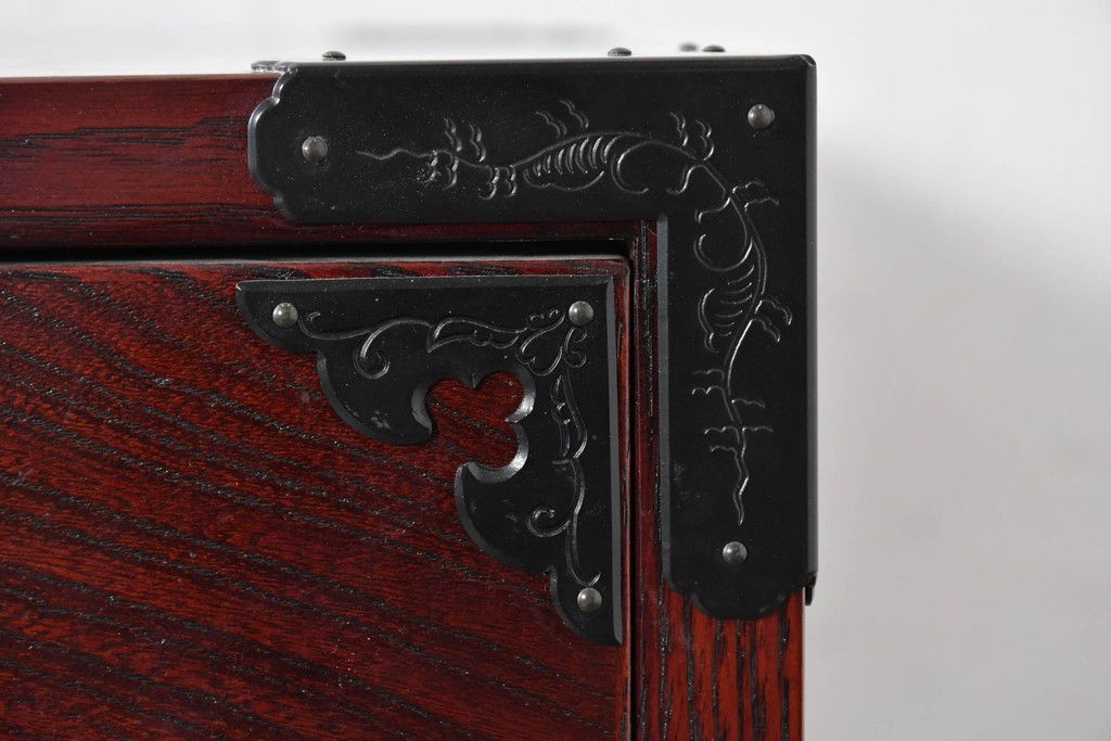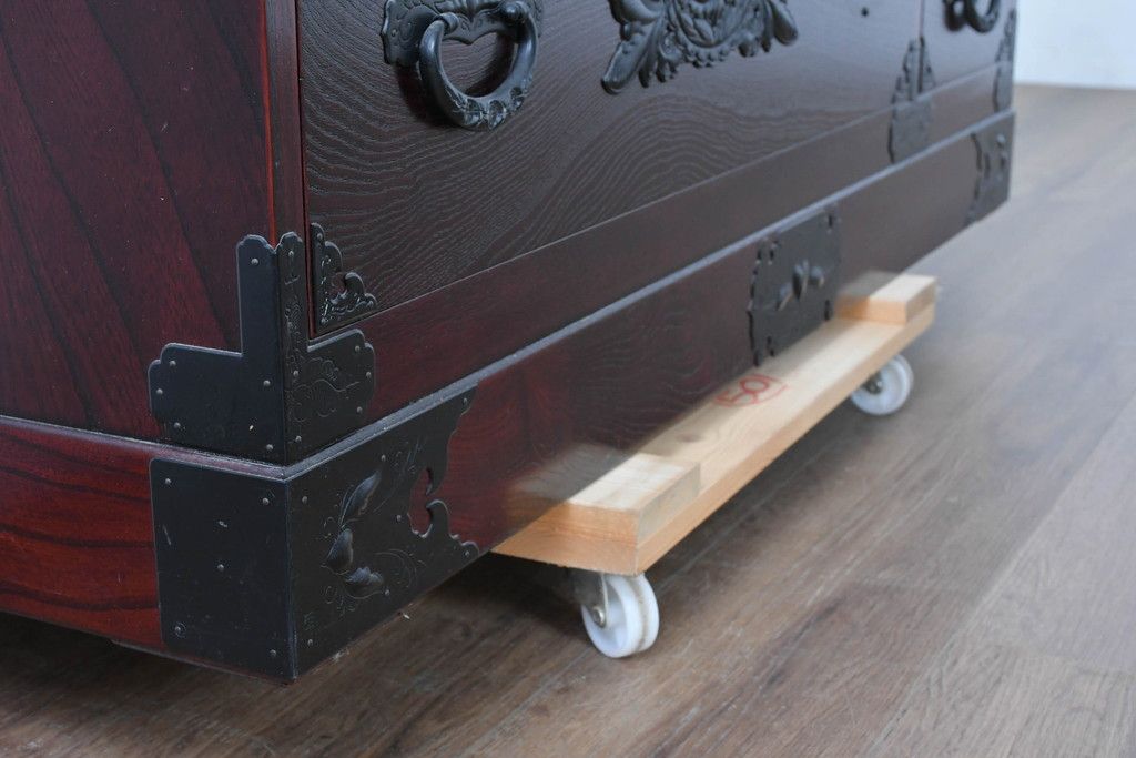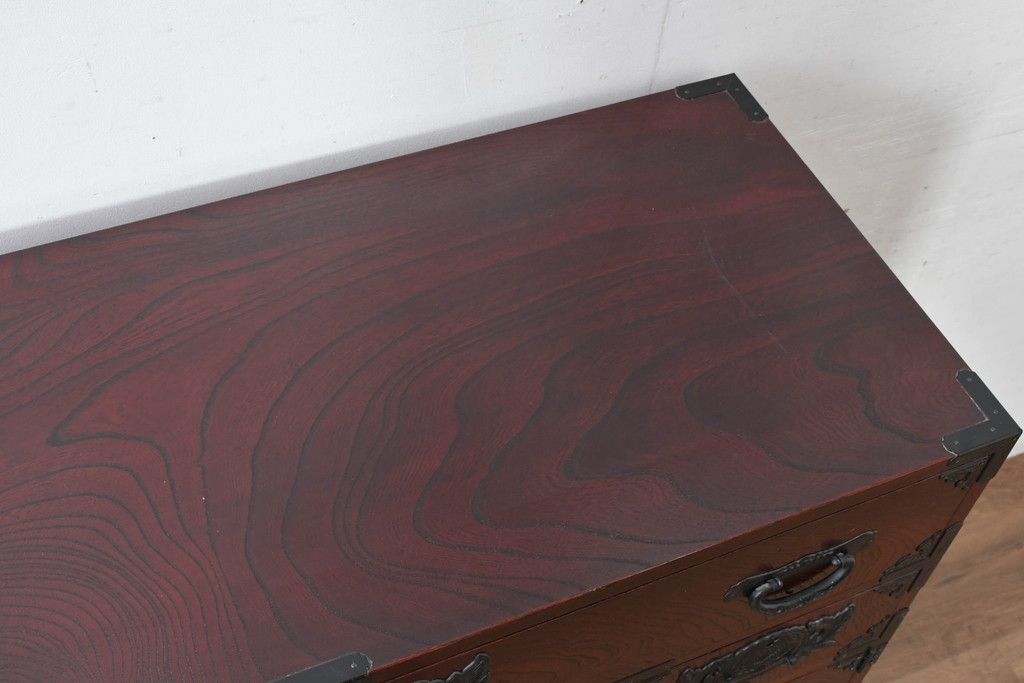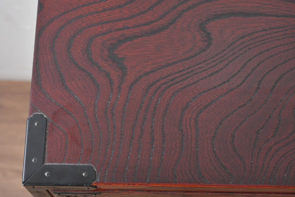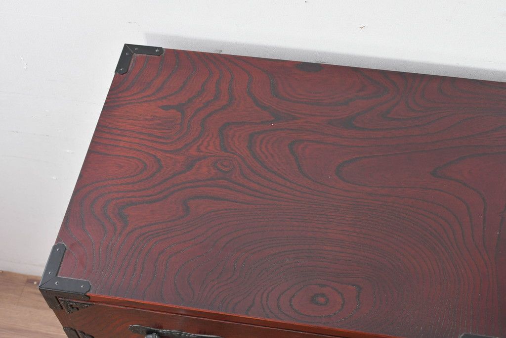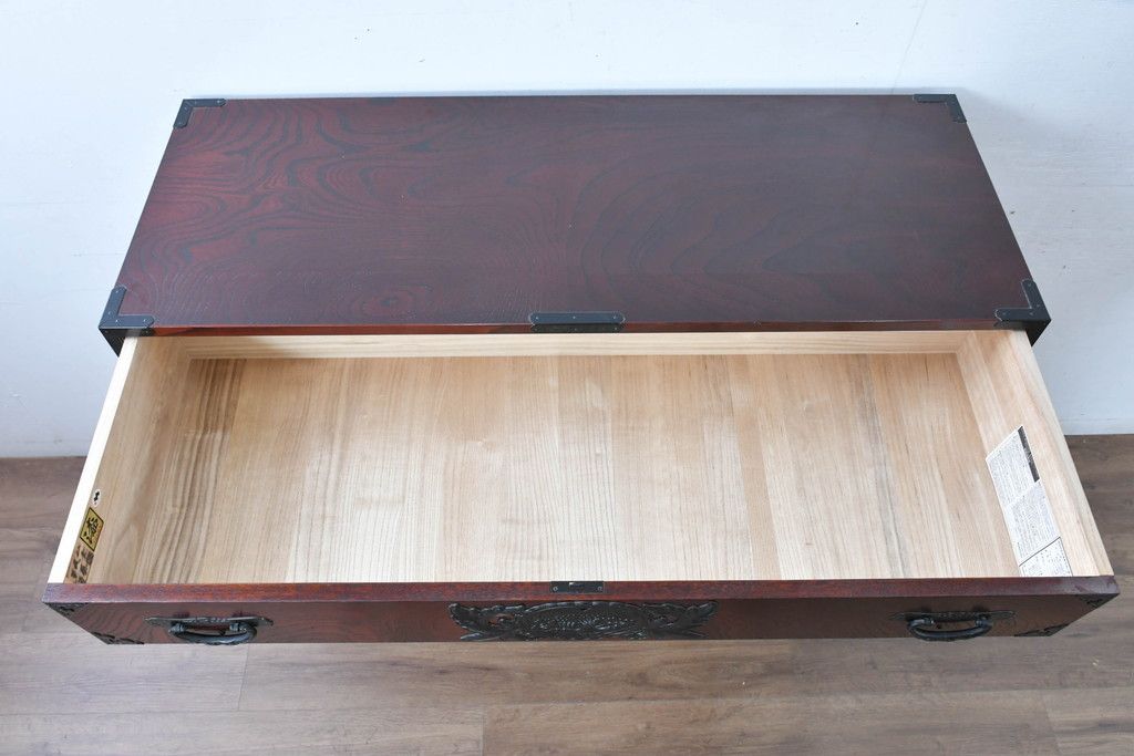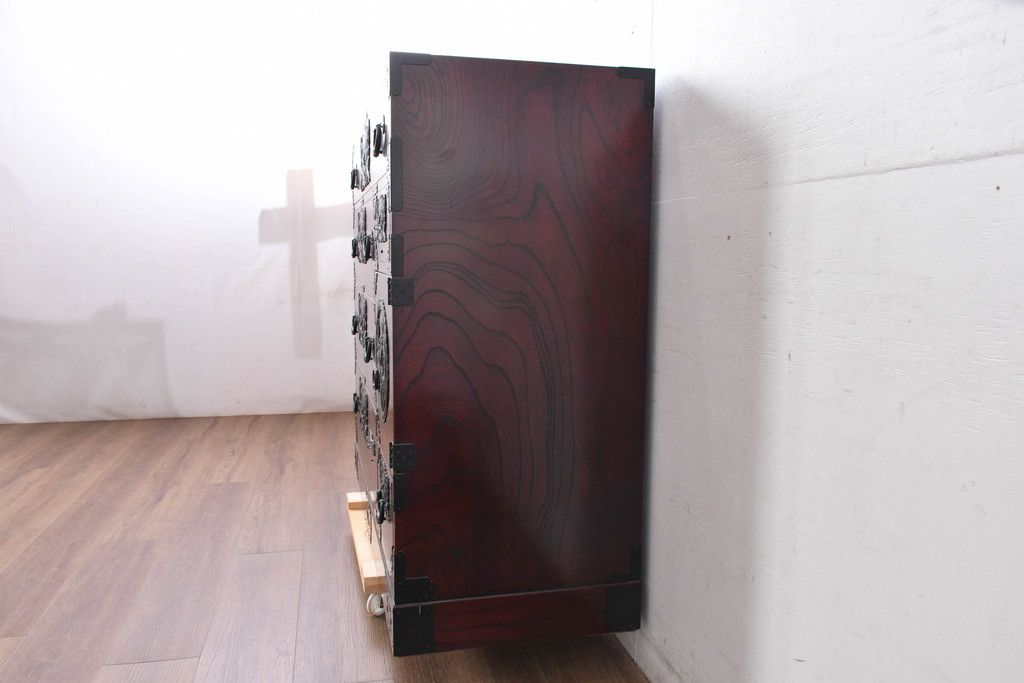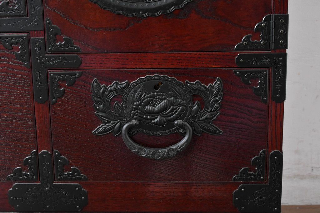 中古 美品 仙台民芸箪笥 欅産業 漆塗り 立派な杢目と牡丹があしらわれた装飾金具が美しい仙台箪笥 定価約60万円相当 (R-084679)