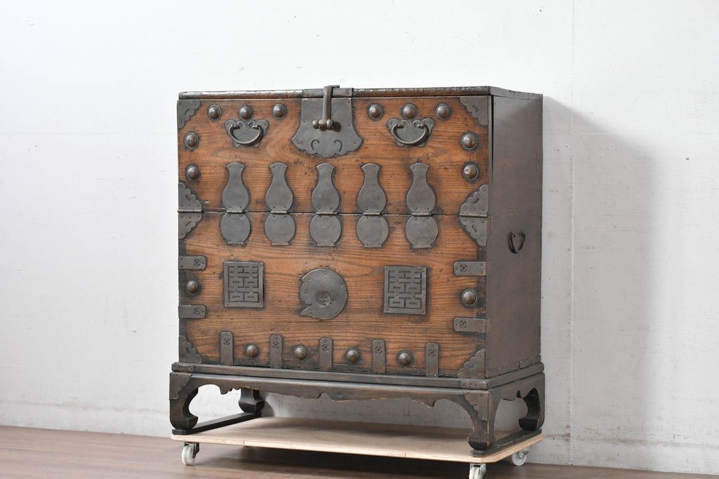 • 韓国アンティーク 松材 多彩な金具装飾が存在感を放つバンダチ (R-084681)