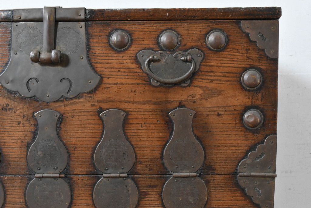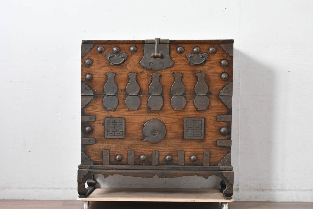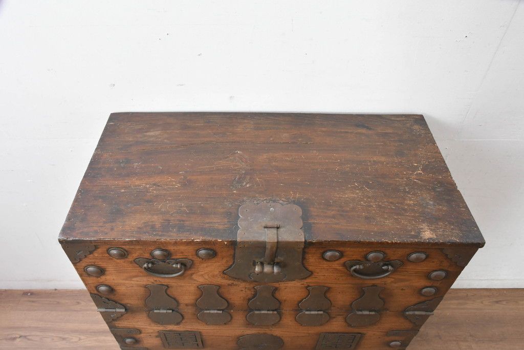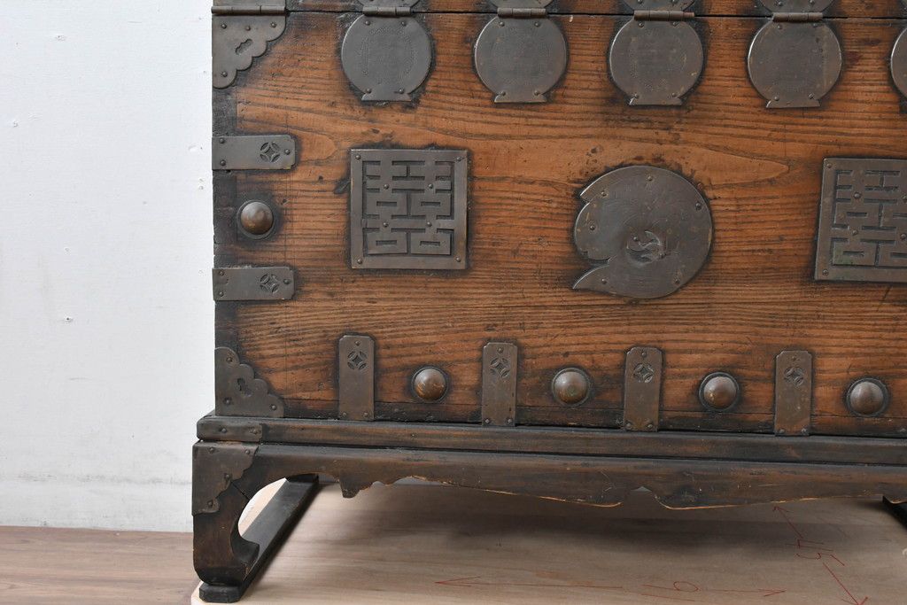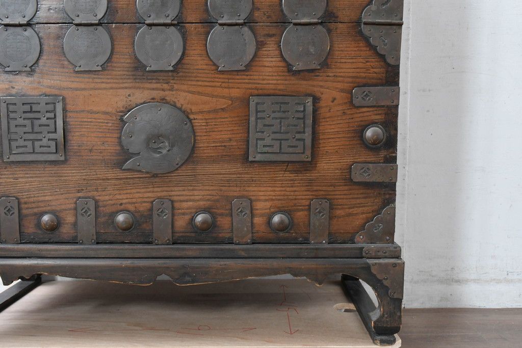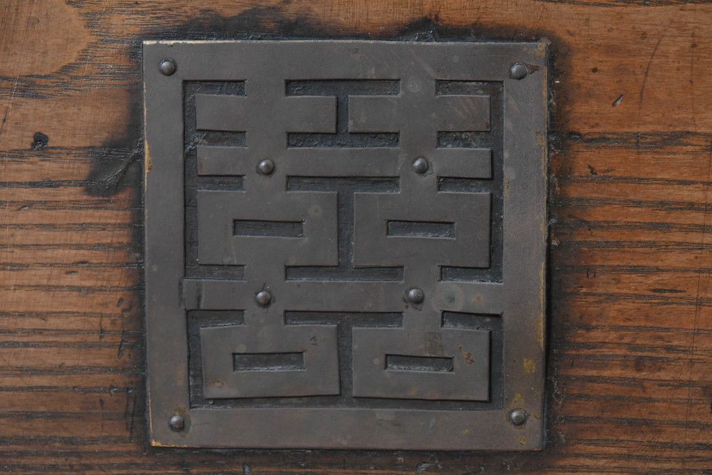 ラフジュ工房> 李朝家具 > 韓国アンティーク 松材 多彩な金具装飾が存在感を放つバンダチ (R-084681)