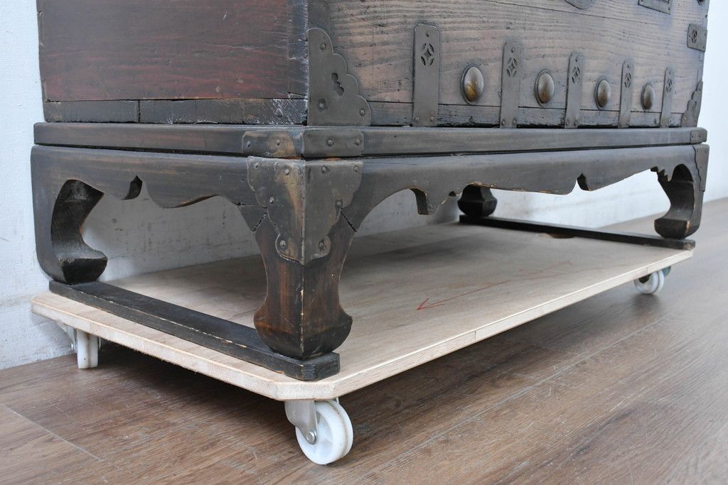 韓国アンティーク 松材 多彩な金具装飾が存在感を放つバンダチ (R-084681)