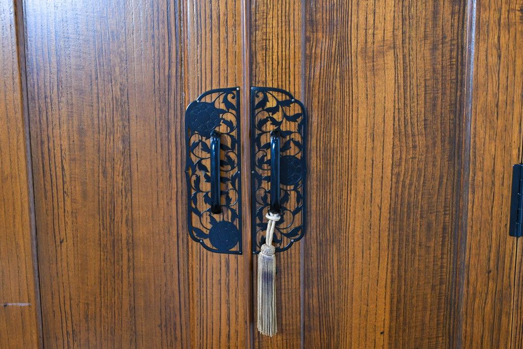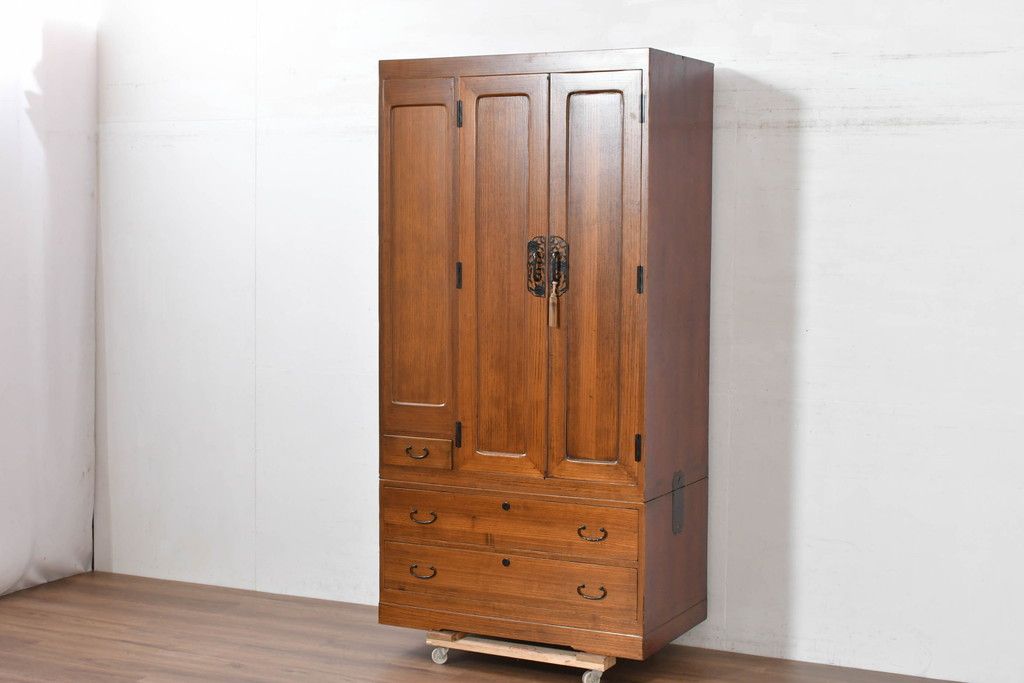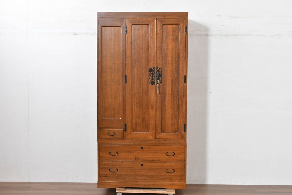 和製ビンテージ 専門店にてリペア済 前面桐材 透かしの金具がアクセント!和の美を纏うワードローブ(R-084691)