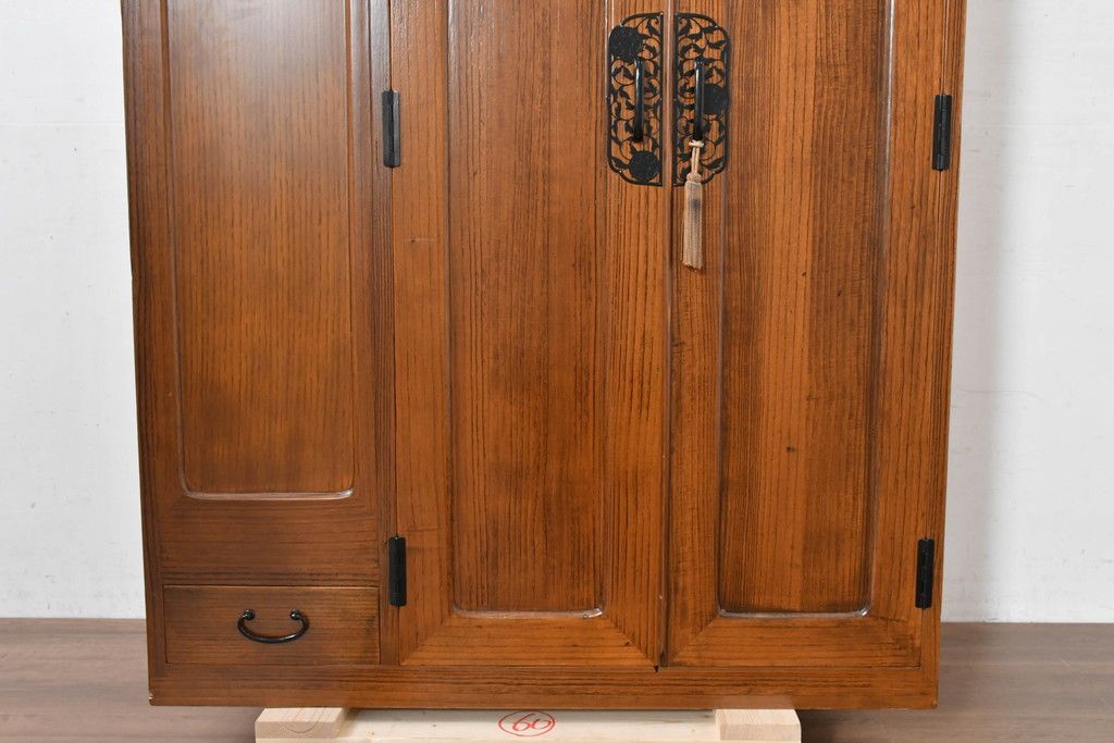 和製ビンテージ 専門店にてリペア済 前面桐材 透かしの金具がアクセント!和の美を纏うワードローブ(R-084692)