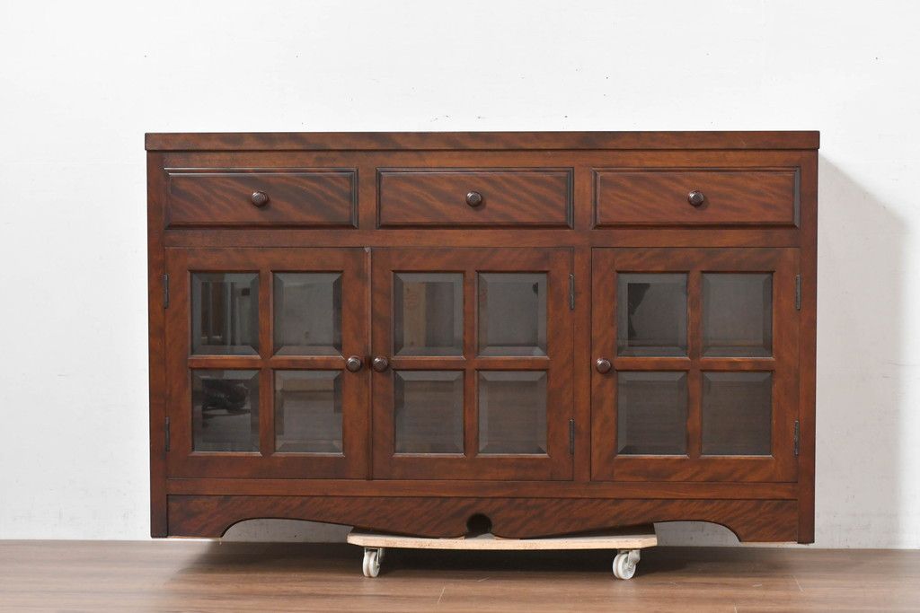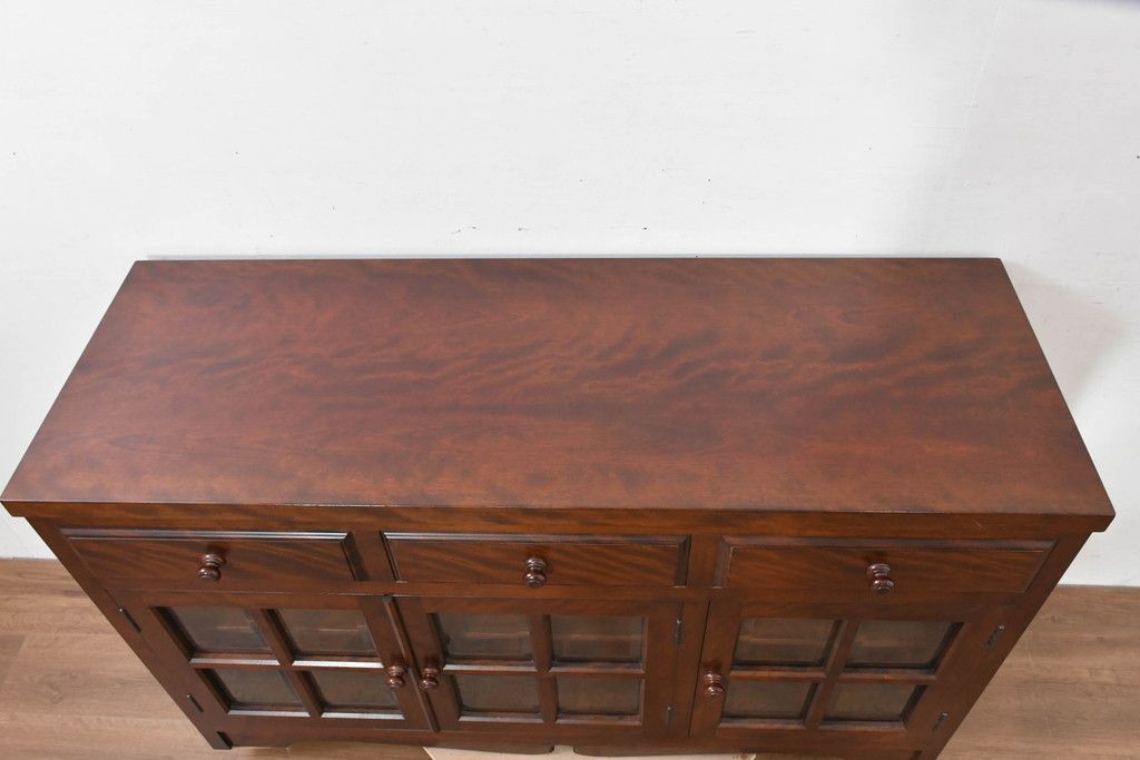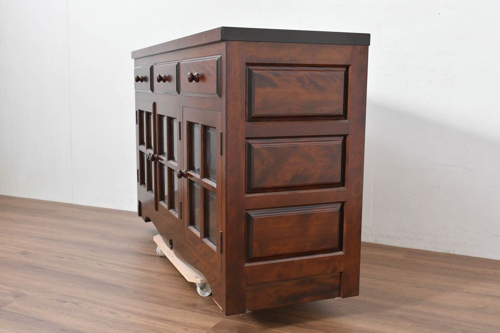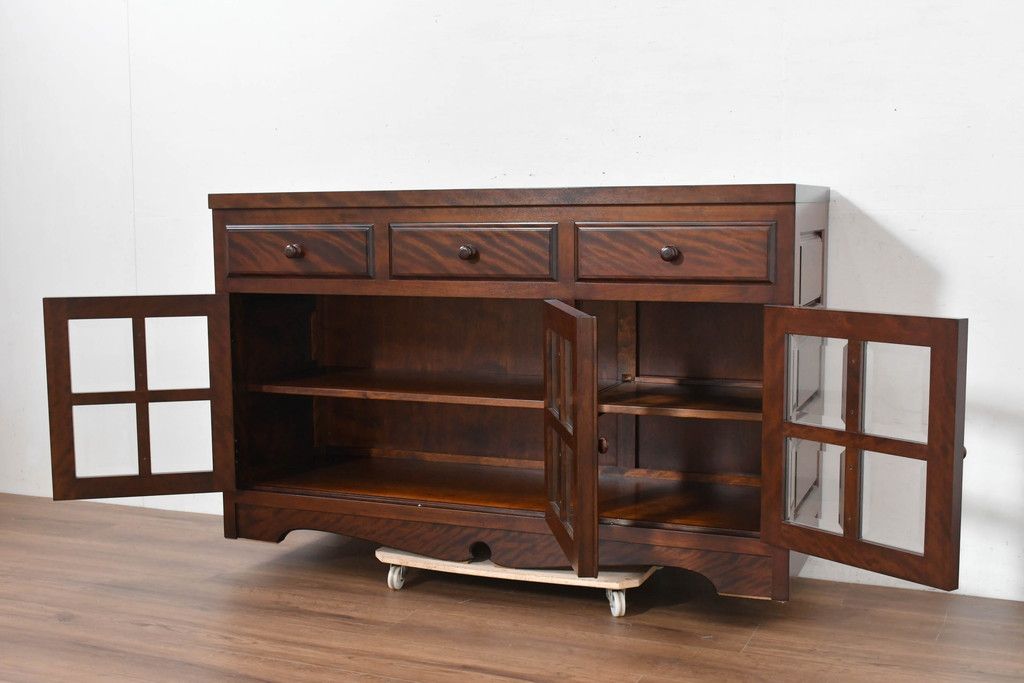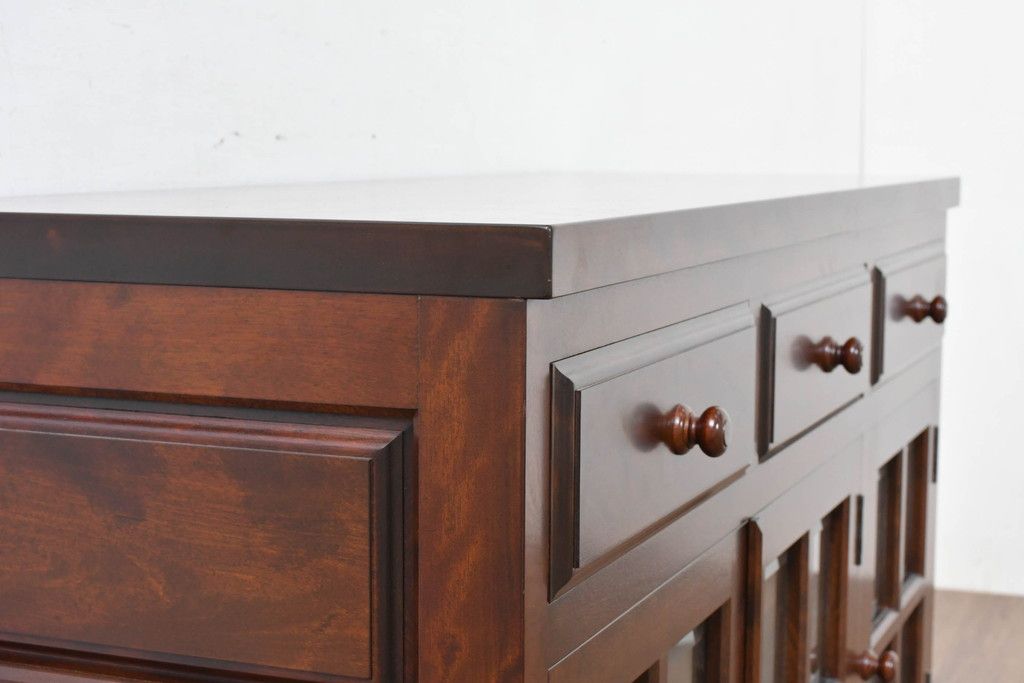 キャビネット・戸棚> サイドボード > 中古 超美品!! 特注 松本民芸家具 ぶ厚い天板が安心感と高級感を感じさせインテリアの主役になるサイドボード(サイドキャビネット、収納棚、飾り棚、戸棚)(定価約65万円)(R-084695)