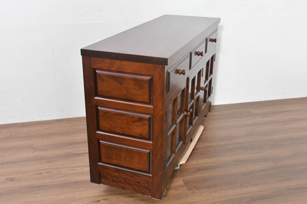 中古 超美品!! 特注 松本民芸家具 ぶ厚い天板が安心感と高級感を感じさせインテリアの主役になるサイドボード(サイドキャビネット、収納棚、飾り棚、戸棚)(定価約65万円)(R-084695)