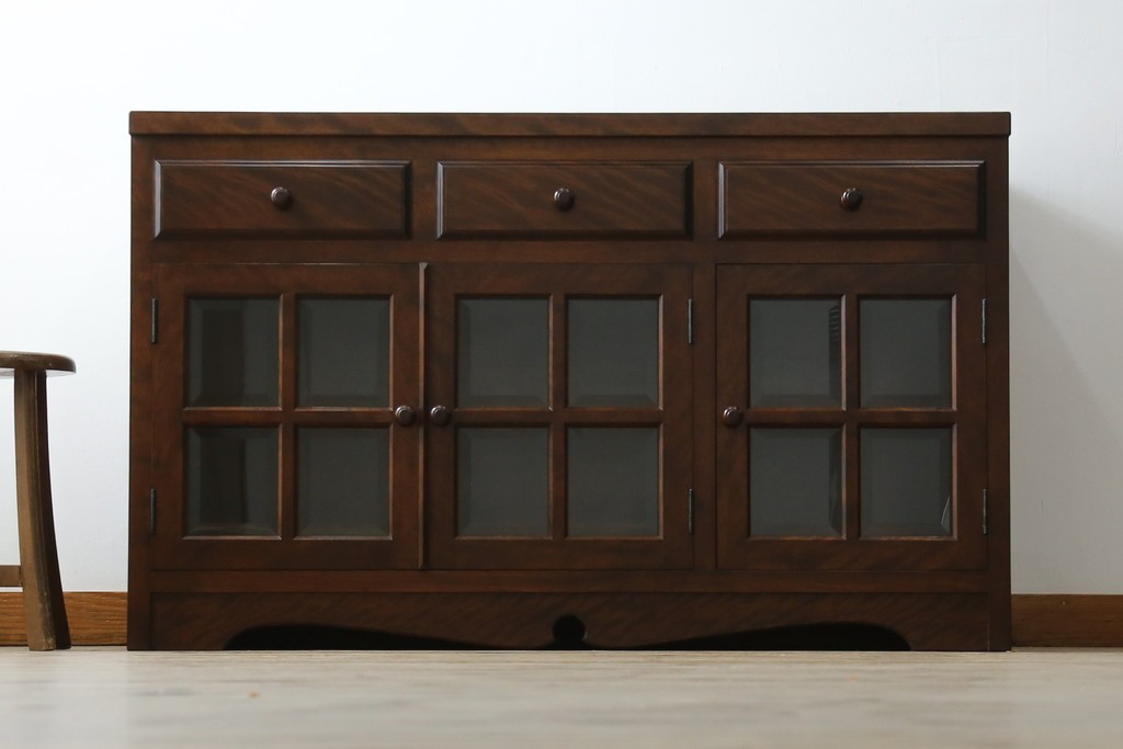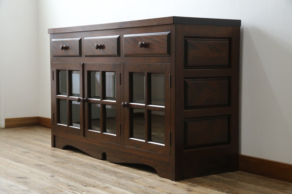 中古 超美品!! 特注 松本民芸家具 ぶ厚い天板でインテリアの主役になるサイドボード 定価約65万円相当 (R-084695)