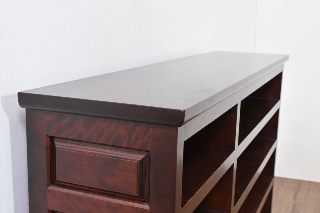 中古 超美品!! 特注品 松本民芸家具 ぶ厚い棚板と深みのある木目が空間を上品に引き立てる収納棚(サイドキャビネット、オープンラック、飾り棚)(定価約50万円)(R-084696)