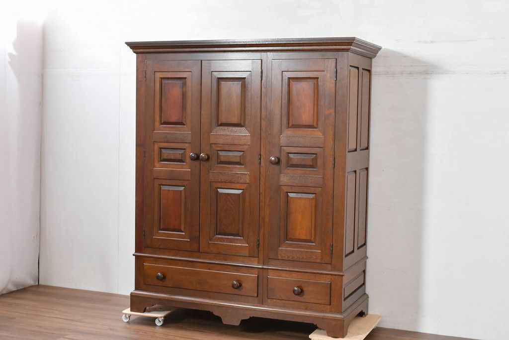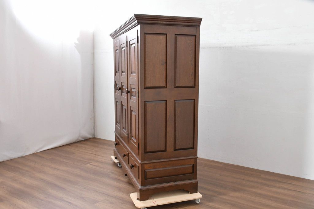 ワードローブ・ロッカー> ワードローブ > 中古 超美品 特注品!! 松本民芸家具 重厚感と品格が際立つクラシックな洋服タンス(ワードローブ、ジャケットタンス、収納棚、衣装タンス)(定価約130万円)(R-084700)