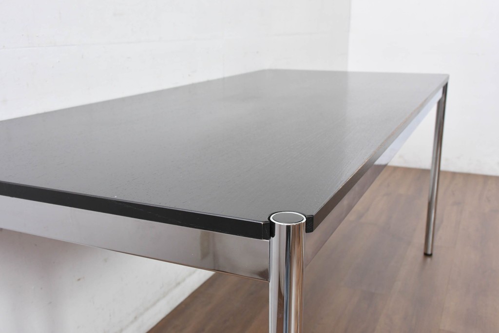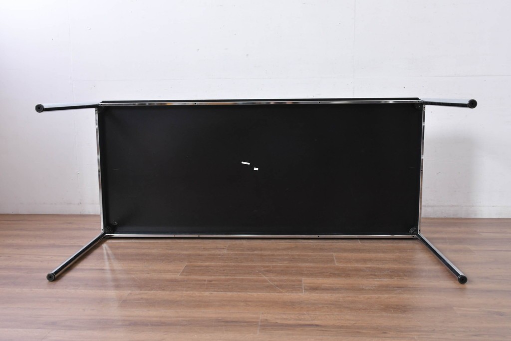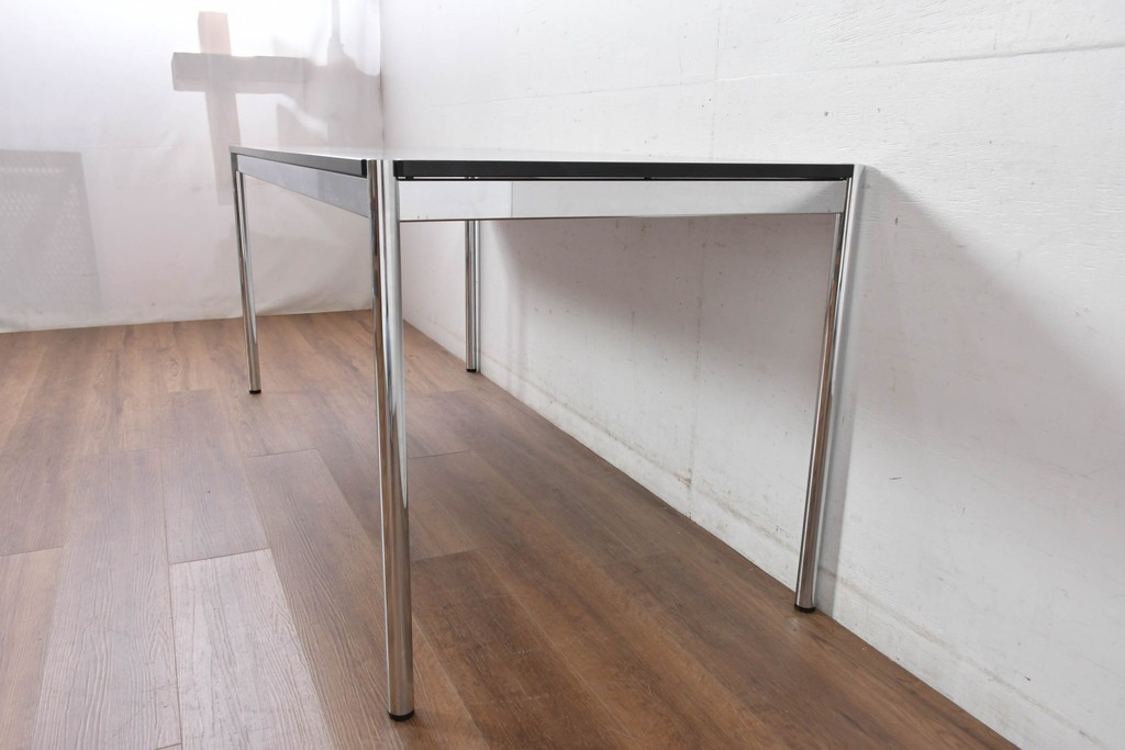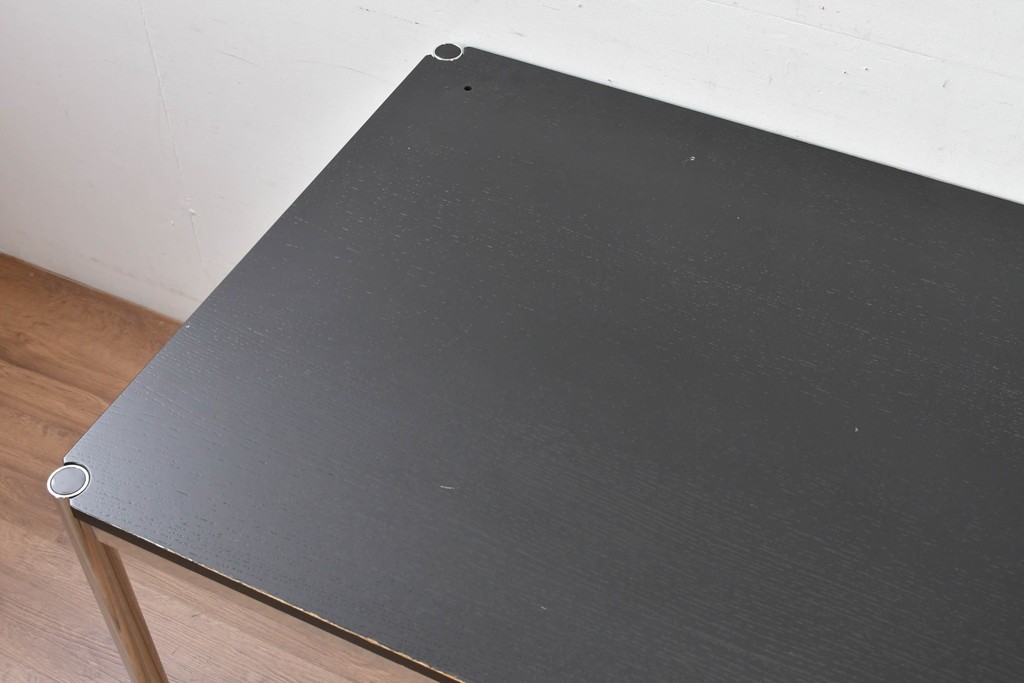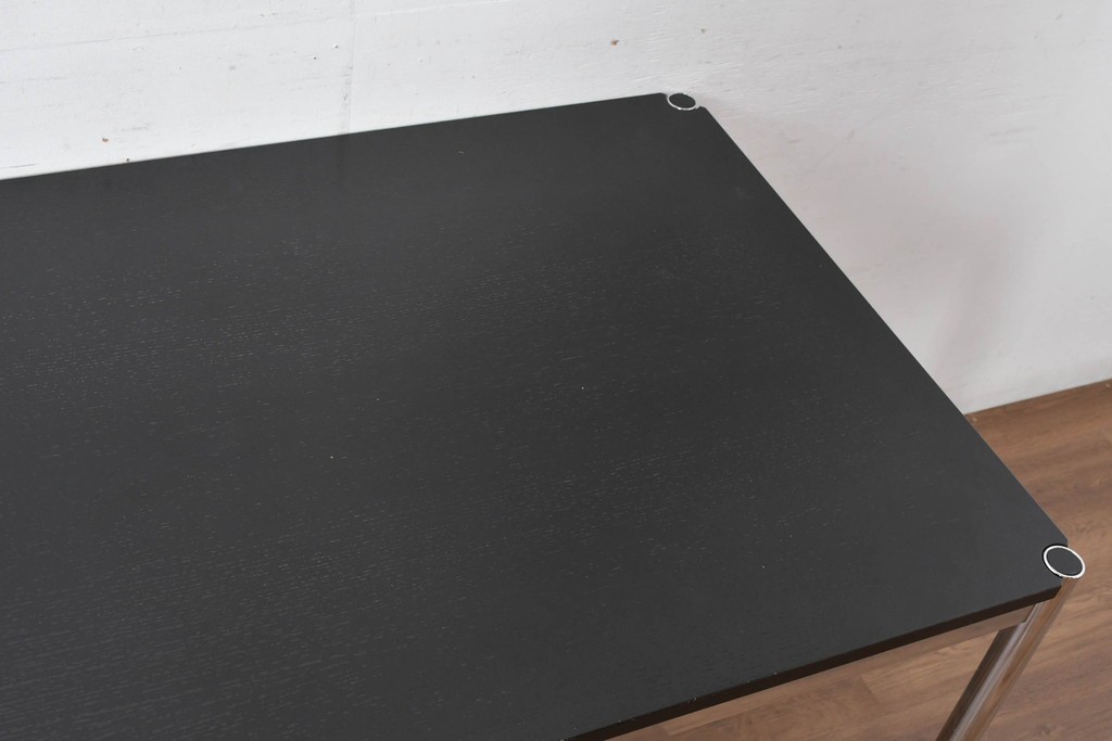 無駄をそぎ落としたスチールフレームが、USMハラーらしい機能美を感じさせます。四隅の接合部を強調した構造は視覚的な軽やかさを保ちながら、全体の安定したフォルムをつくり出しています。モジュール家具の思想を反映したバランスのよい造形が魅力です。