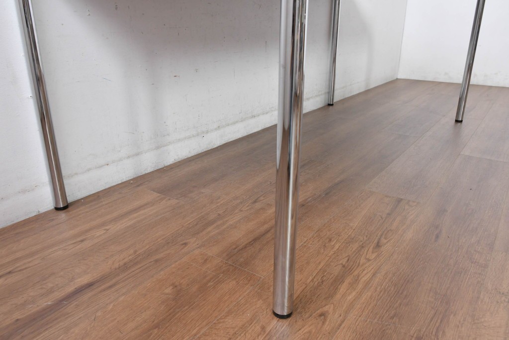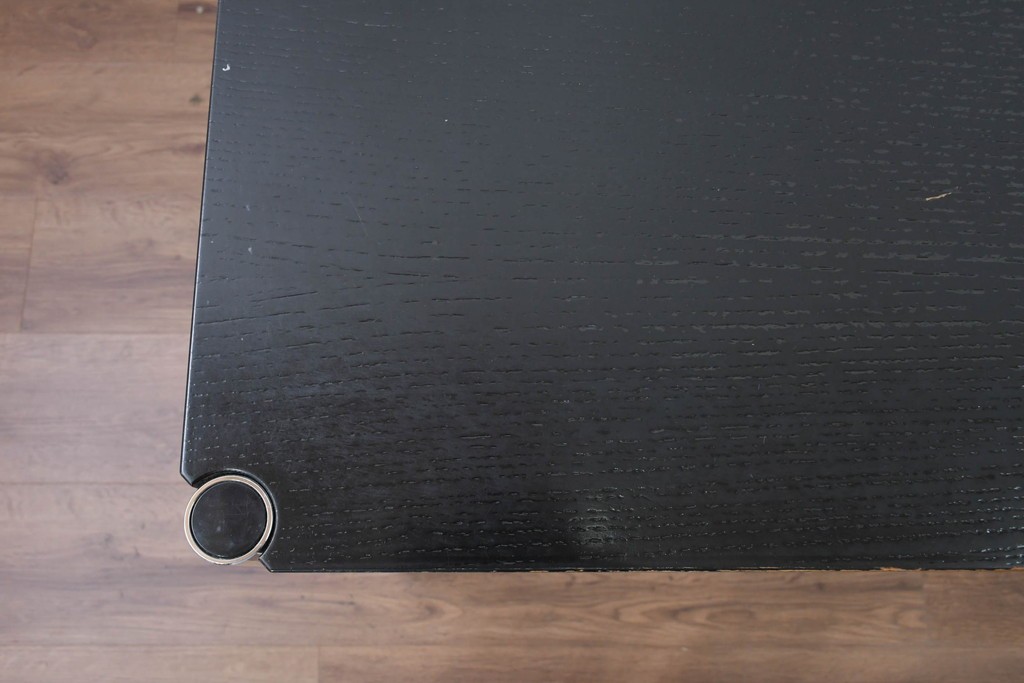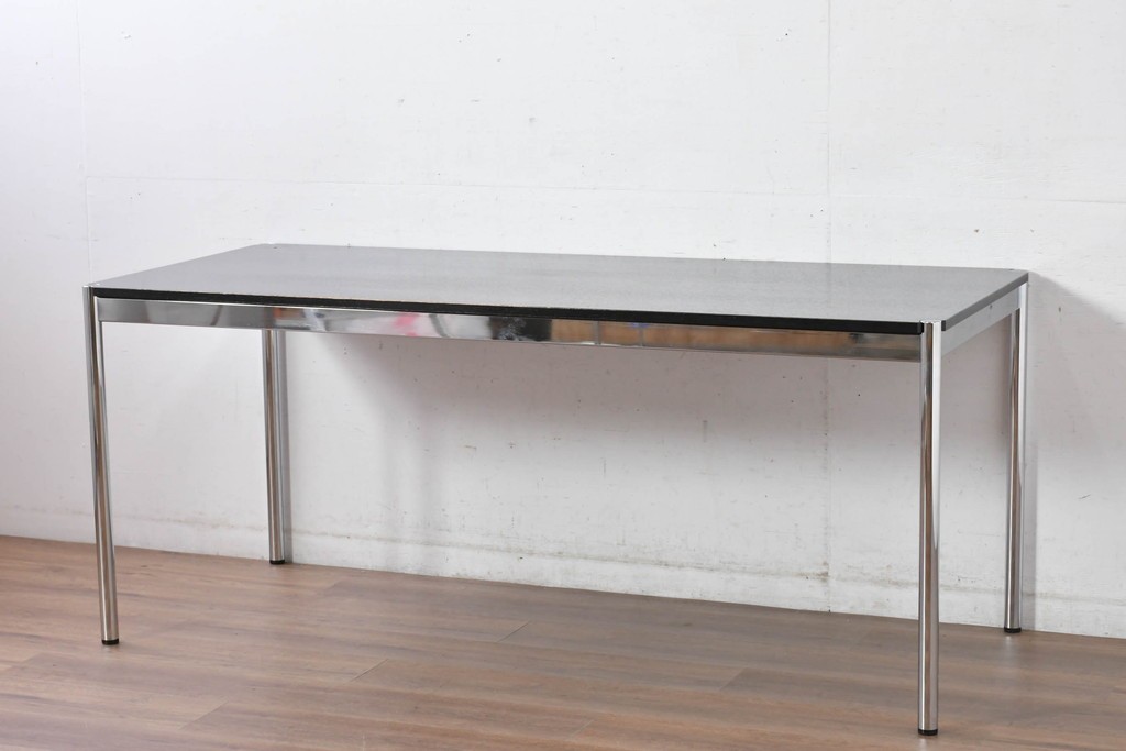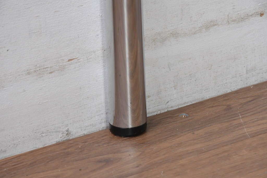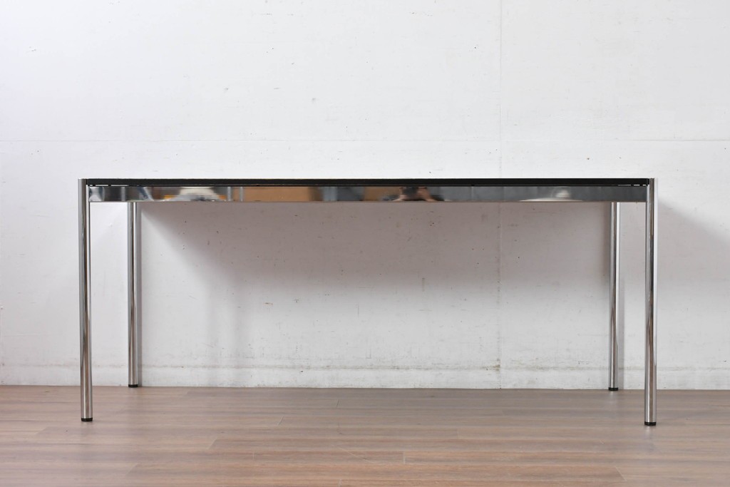 無駄をそぎ落としたスチールフレームが、USMハラーらしい機能美を感じさせます。四隅の接合部を強調した構造は視覚的な軽やかさを保ちながら、全体の安定したフォルムをつくり出しています。モジュール家具の思想を反映したバランスのよい造形が魅力です。