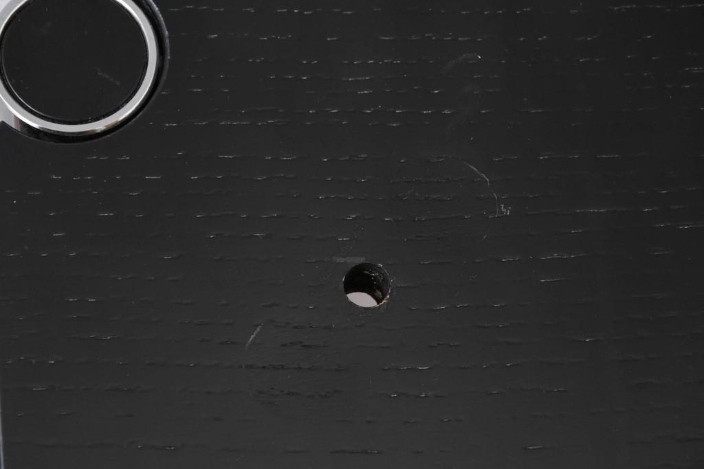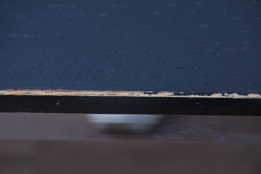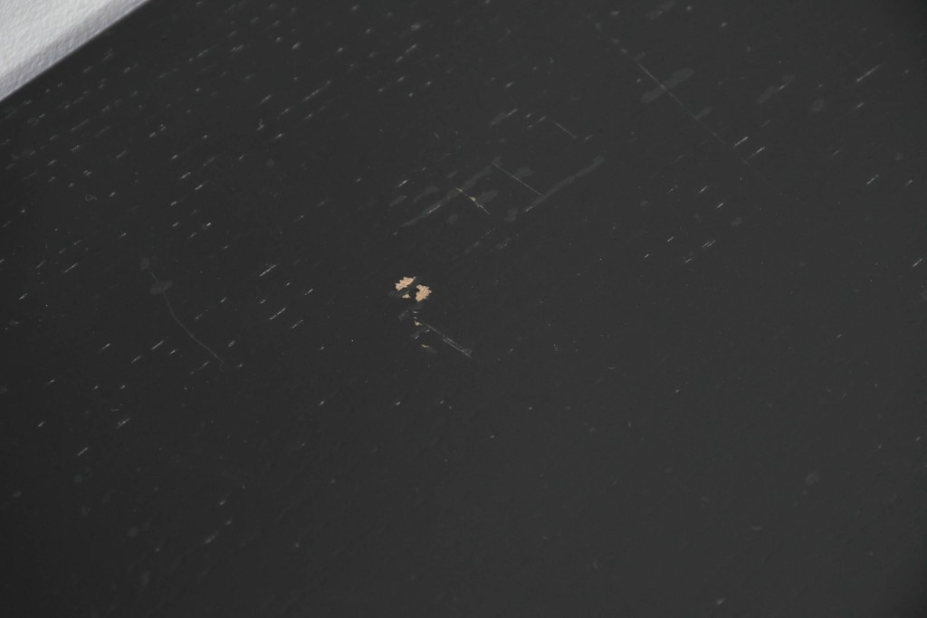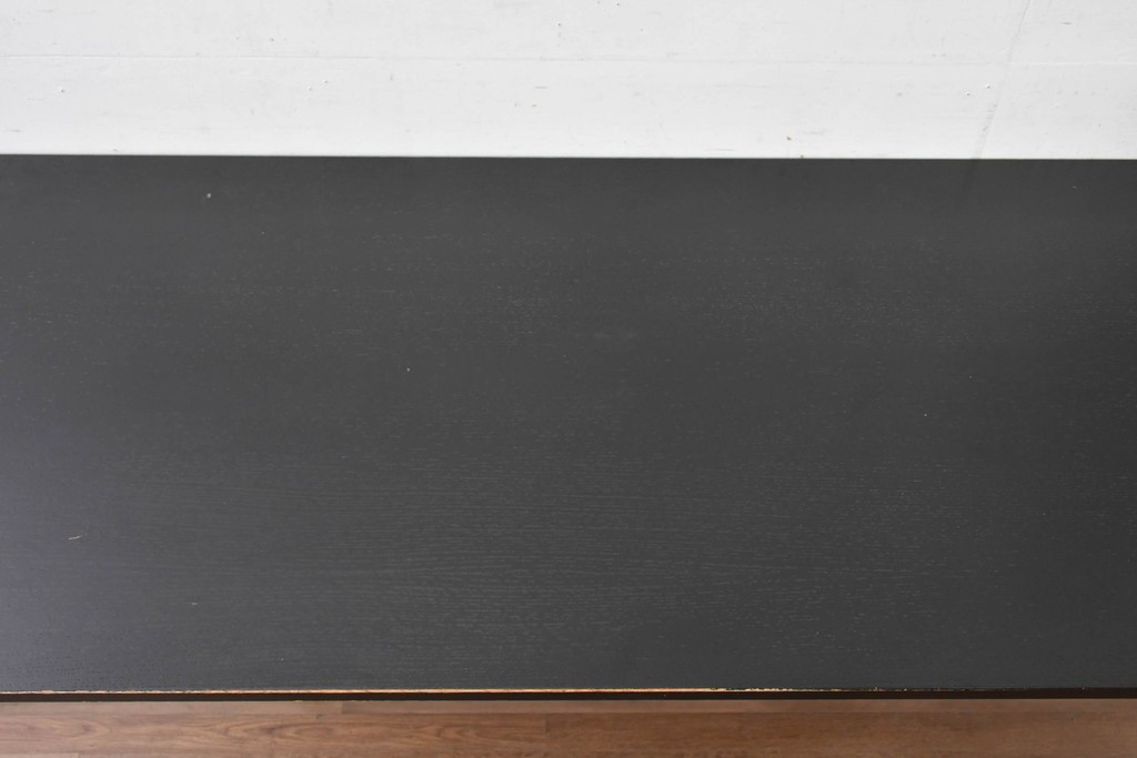 天板には深みのあるブラックカラーが採用され、空間を引き締めながら洗練された印象を与えます。シンプルな色調でありながら木目の表情がほのかに感じられ、上質さと機能性のどちらも備えた心地良い意匠が魅力です。