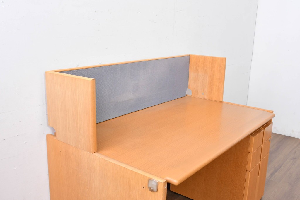 ラフジュ工房> デスク > 中古 北海道旭川家具 インテリアセンター(カンディハウス) オーク材 取り外しパネル付き ナチュラルモダンなデスクとワゴンのセット (R-084724)