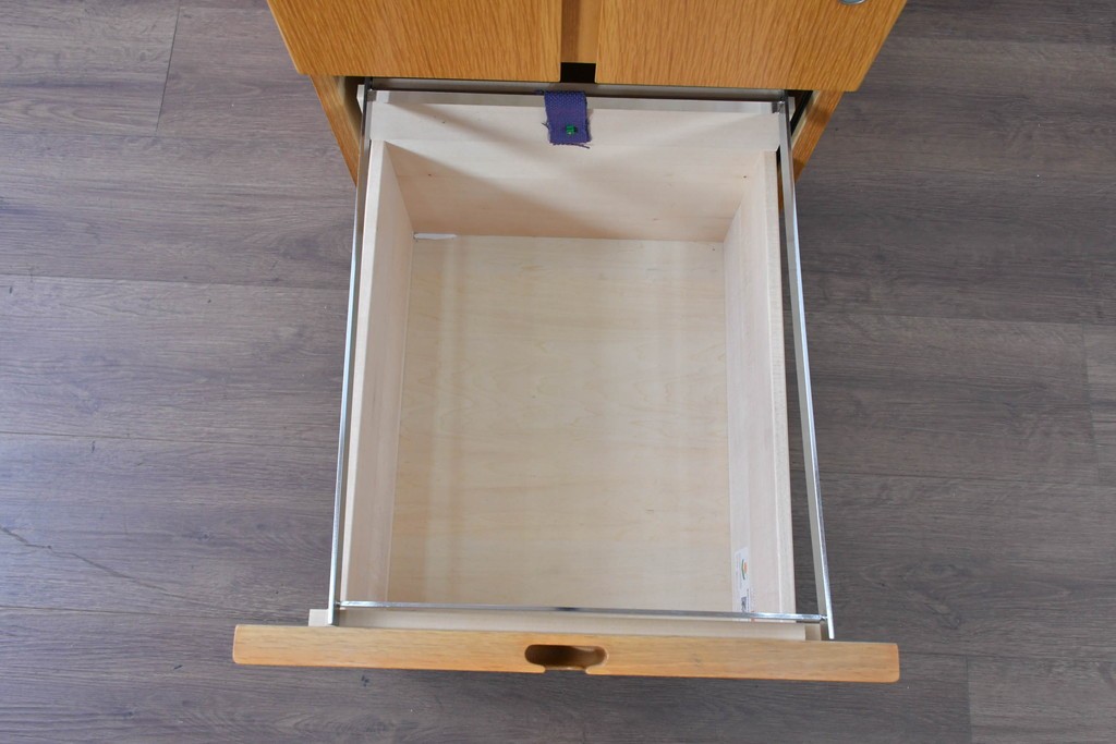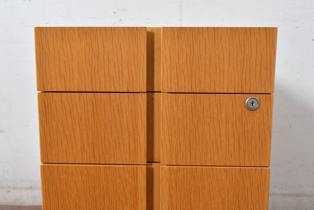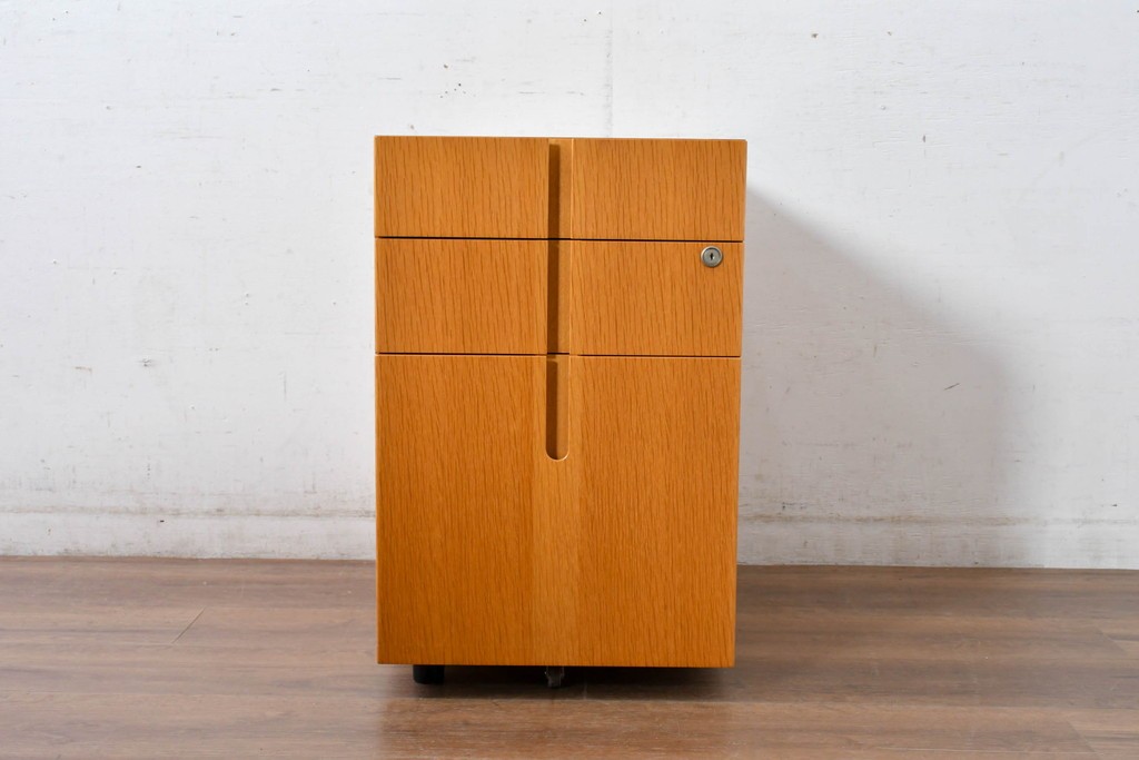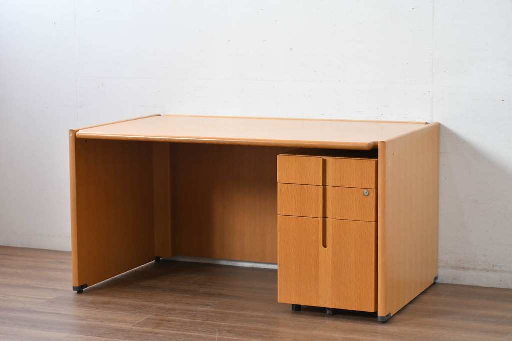 ラフジュ工房> デスク> 片袖机・両袖机 > 中古 北海道旭川家具 インテリアセンター(カンディハウス) オーク材 取り外しパネル付き ナチュラルモダンなデスクとワゴンのセット (R-084724)