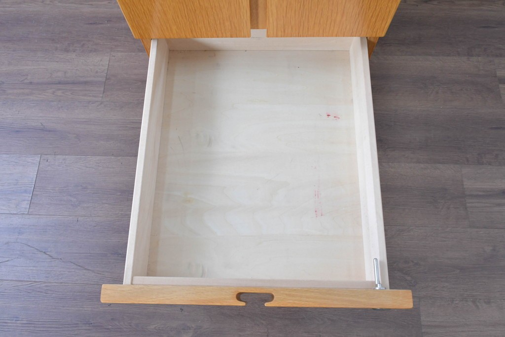 中古 北海道旭川家具 インテリアセンター(カンディハウス) オーク材 取り外しパネル付き ナチュラルモダンなデスクとワゴンのセット (R-084724)