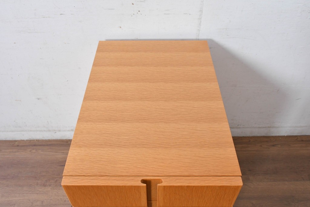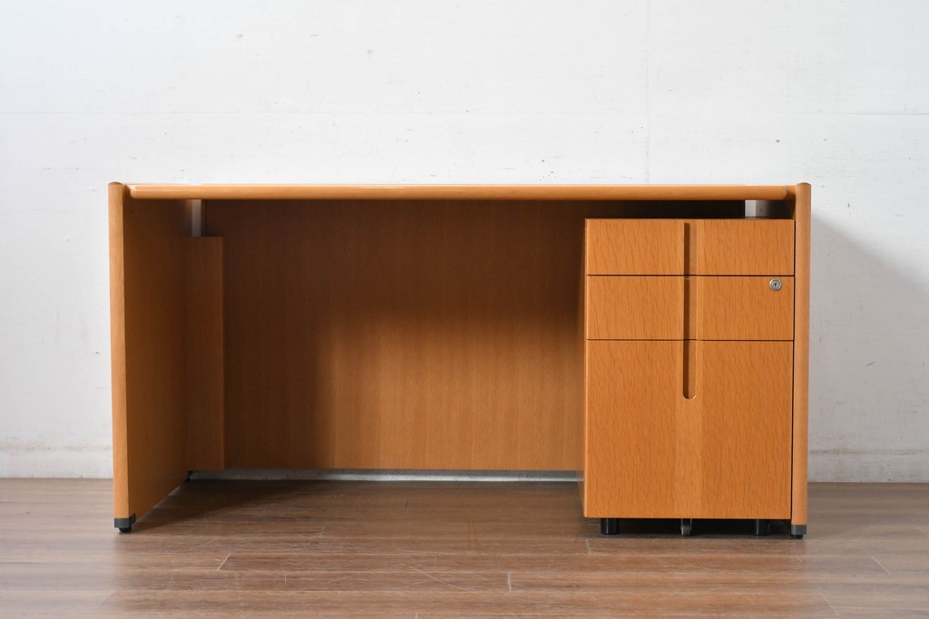 ラフジュ工房> デスク> 片袖机・両袖机 > 中古 北海道旭川家具 インテリアセンター(カンディハウス) オーク材 取り外しパネル付き ナチュラルモダンなデスクとワゴンのセット (R-084726)