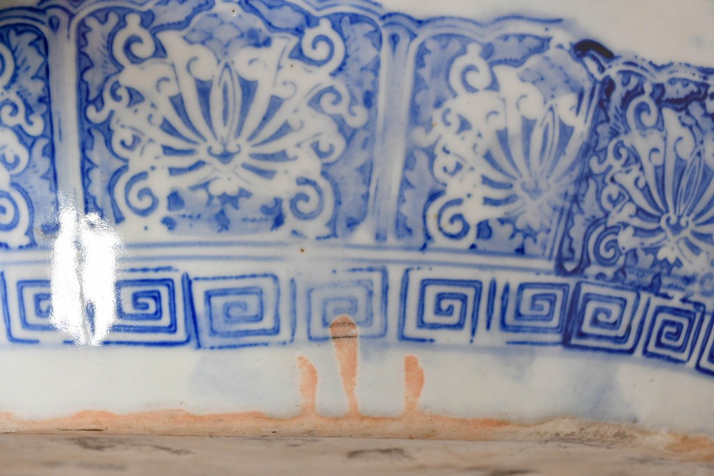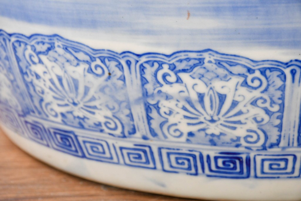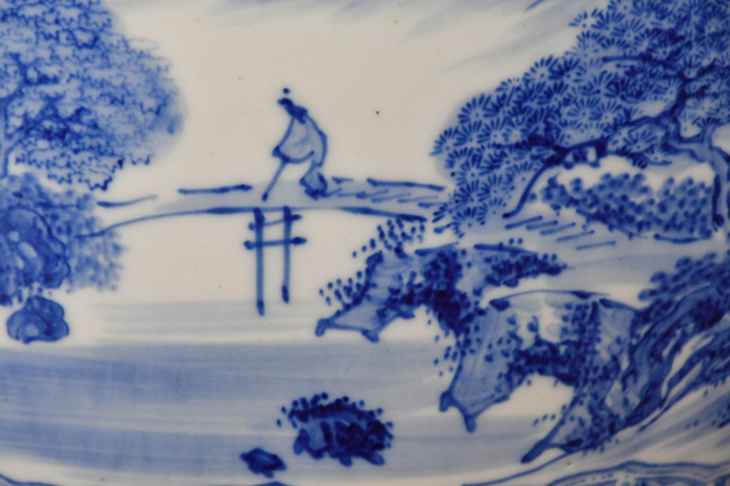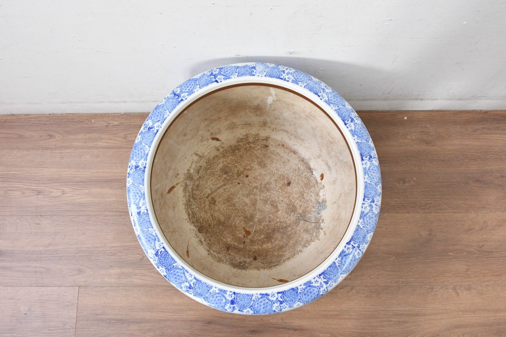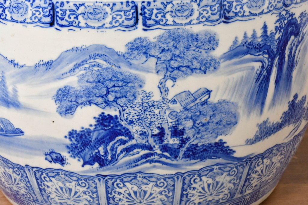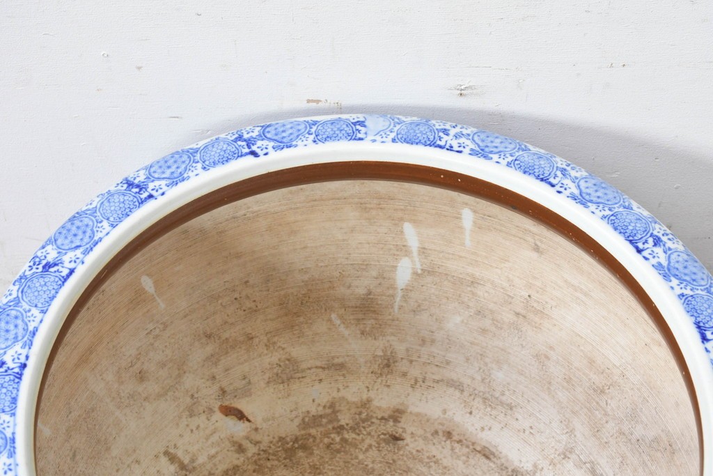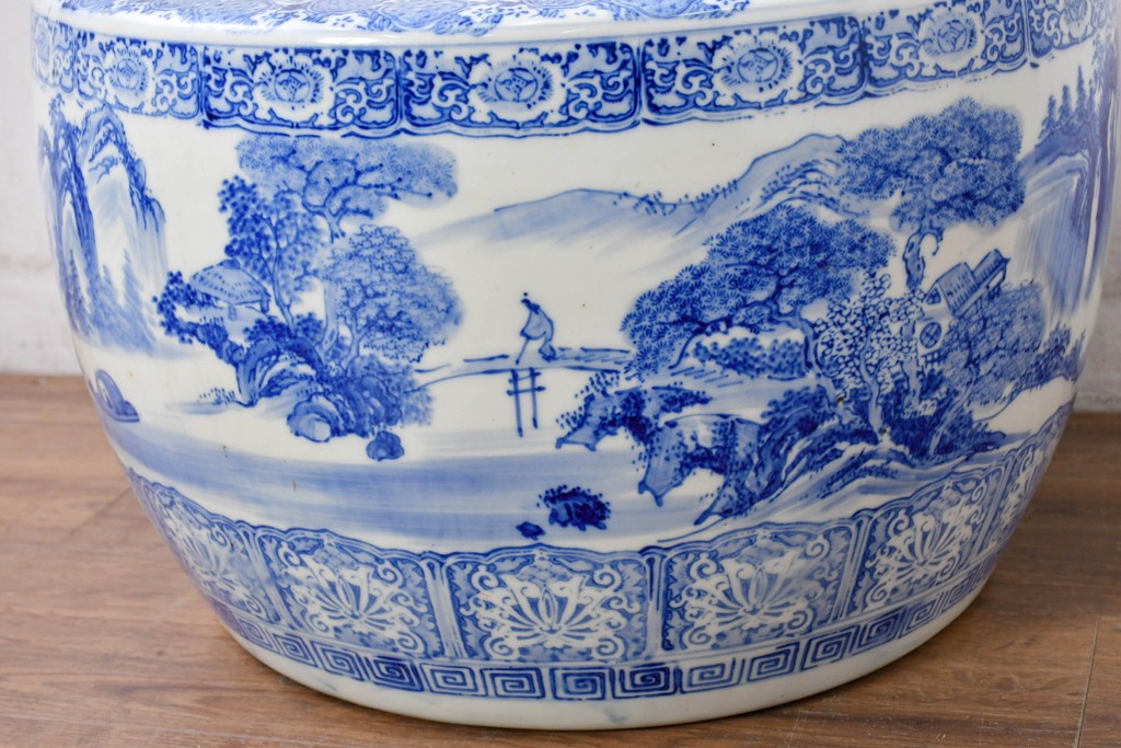 • 和製ヴィンテージ 山水の図 藍色の濃淡で表現された図が魅力的な瀬戸火鉢 (R-084731)