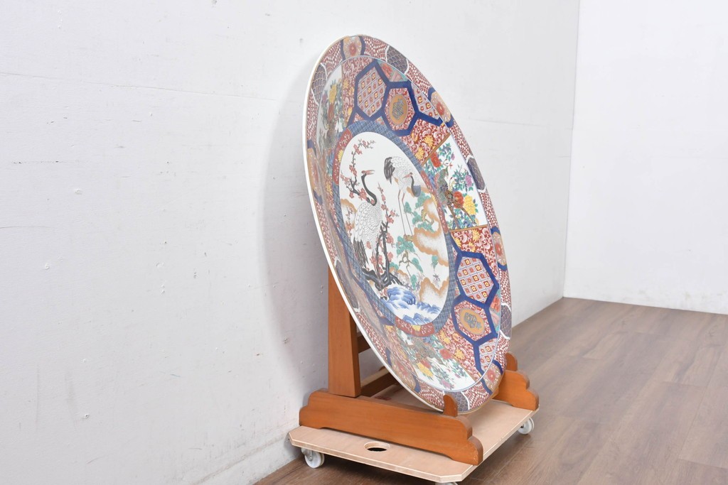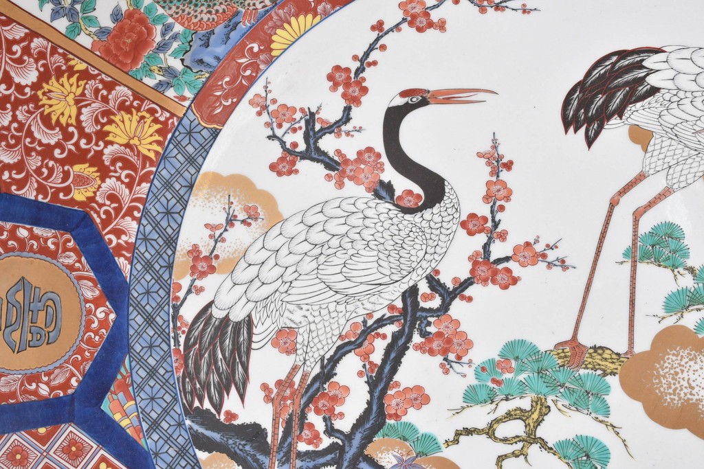 有田焼・神右衛門による染錦鶴絵の大皿です。
