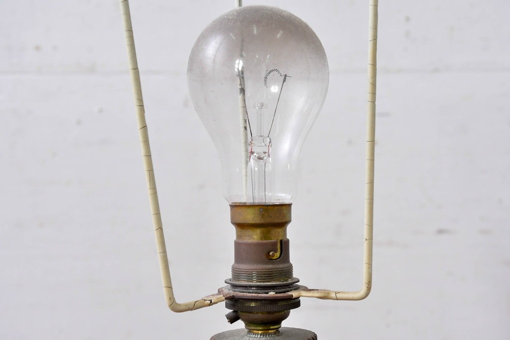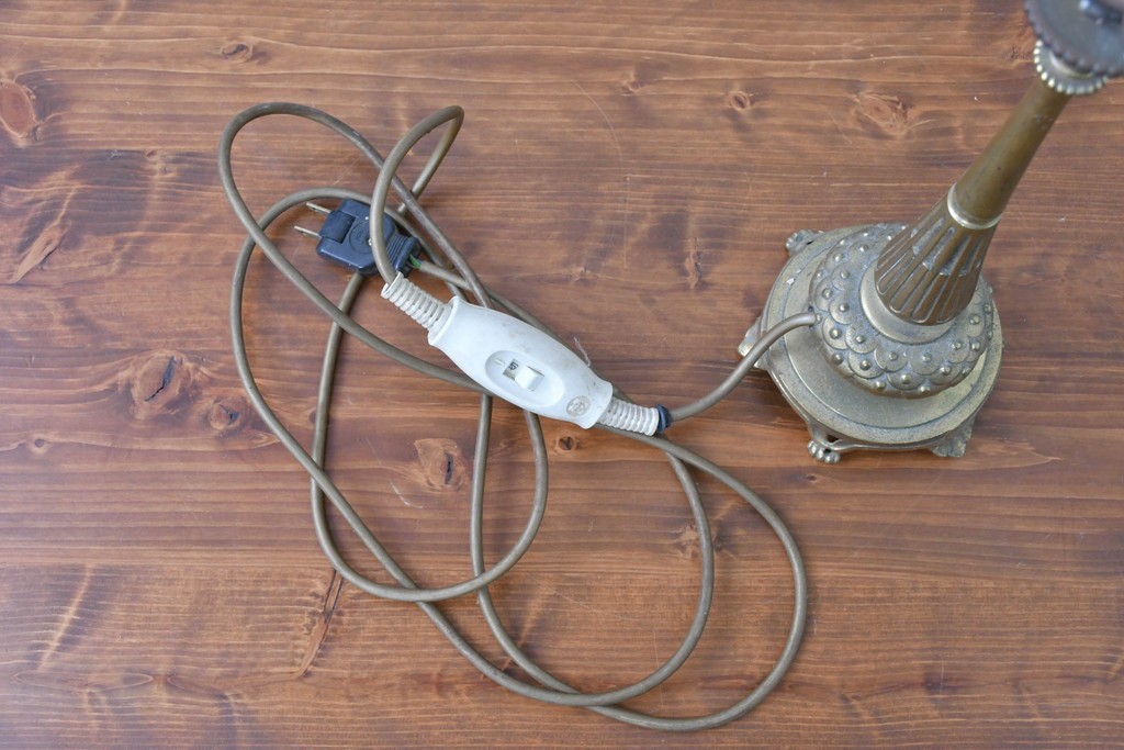 ラフジュ工房> 照明・ランプ> デスクライト・テーブルライト > フランスアンティーク クラシカルな雰囲気の真鍮フレームのテーブルスタンド (R-084740)