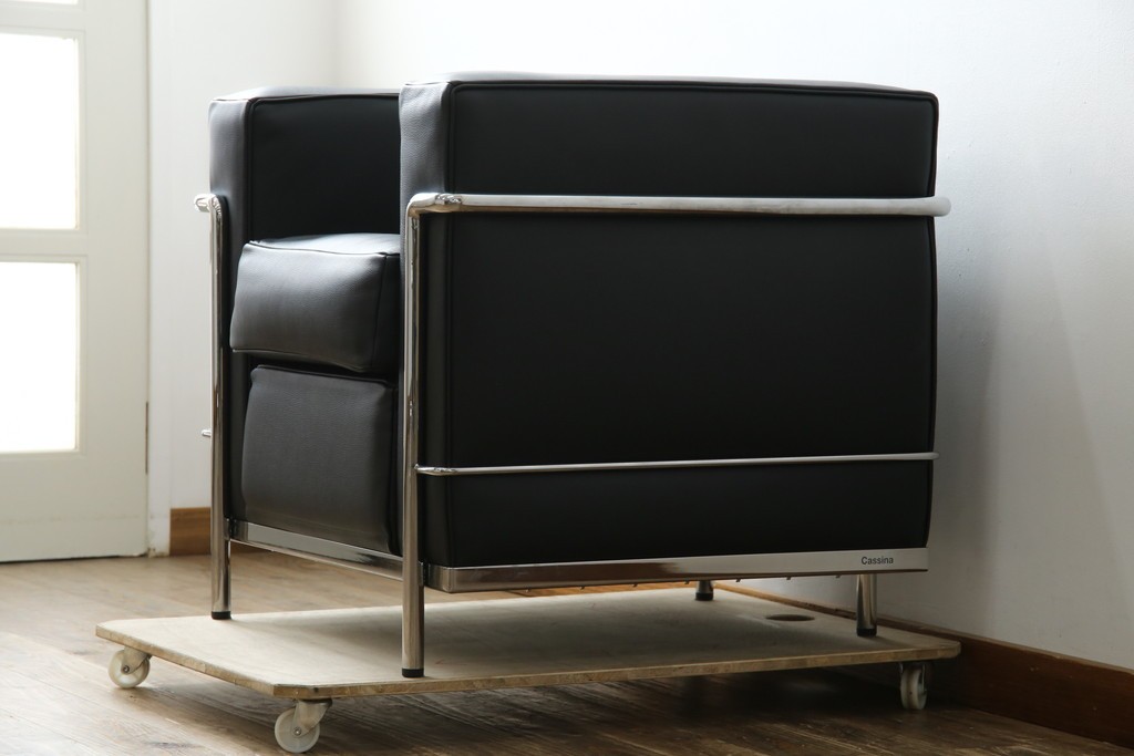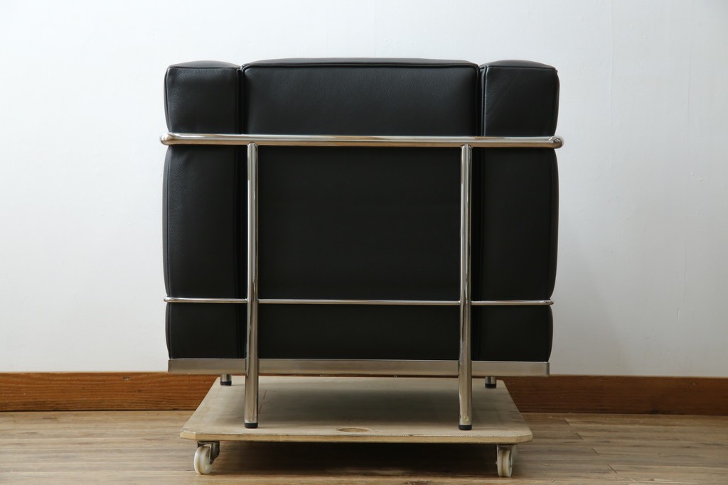 ル・コルビュジエが追求した「建築としての家具」を体現するように、金属フレームとクッションの対比が非常に明快です。フレームを外側に配する構造が特徴で、見た目の軽さと強度を両立した独自の美しさが感じられます。直線的な構成が空間を整えるように佇み、置くだけでインテリアに上質な緊張感を生み出します。