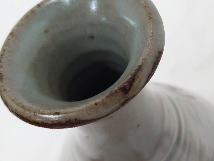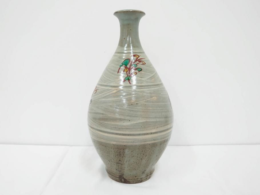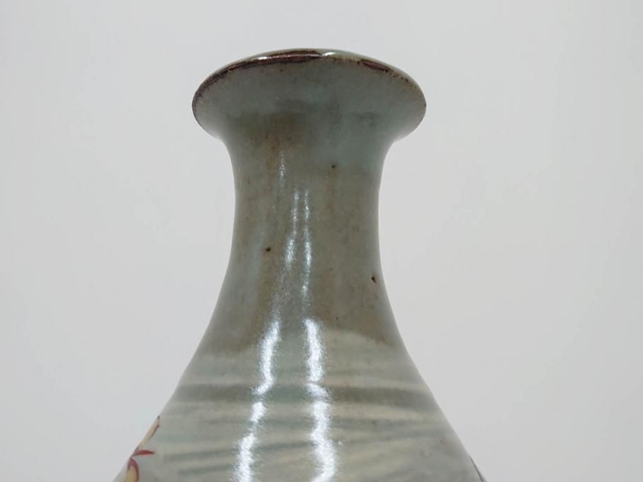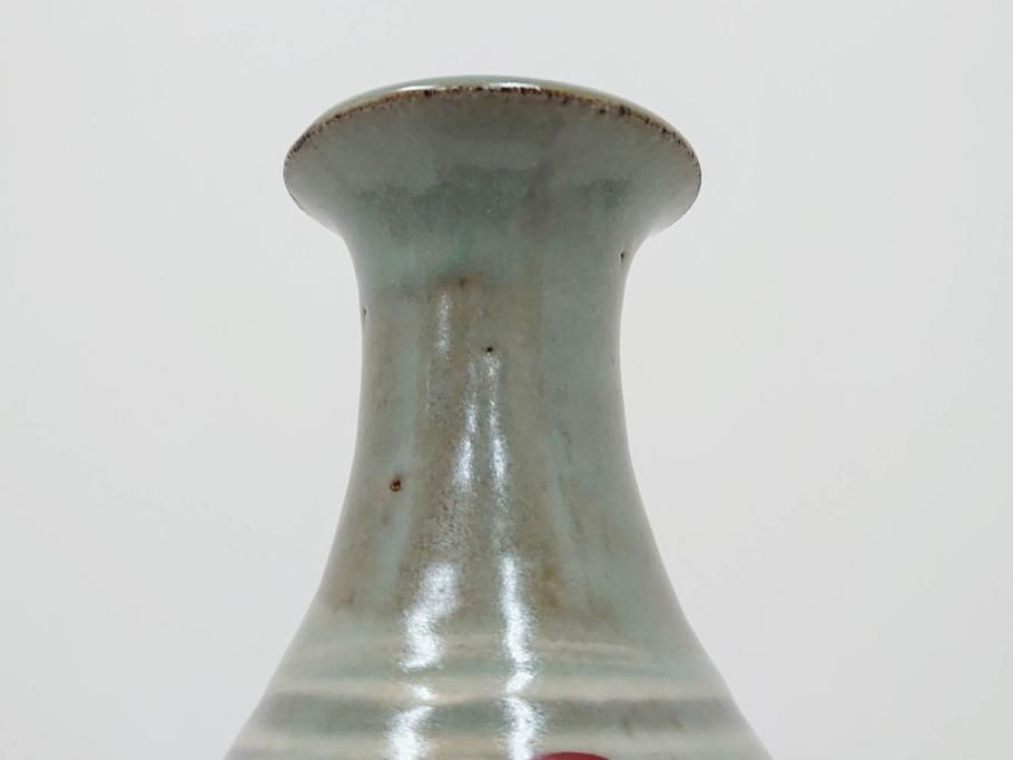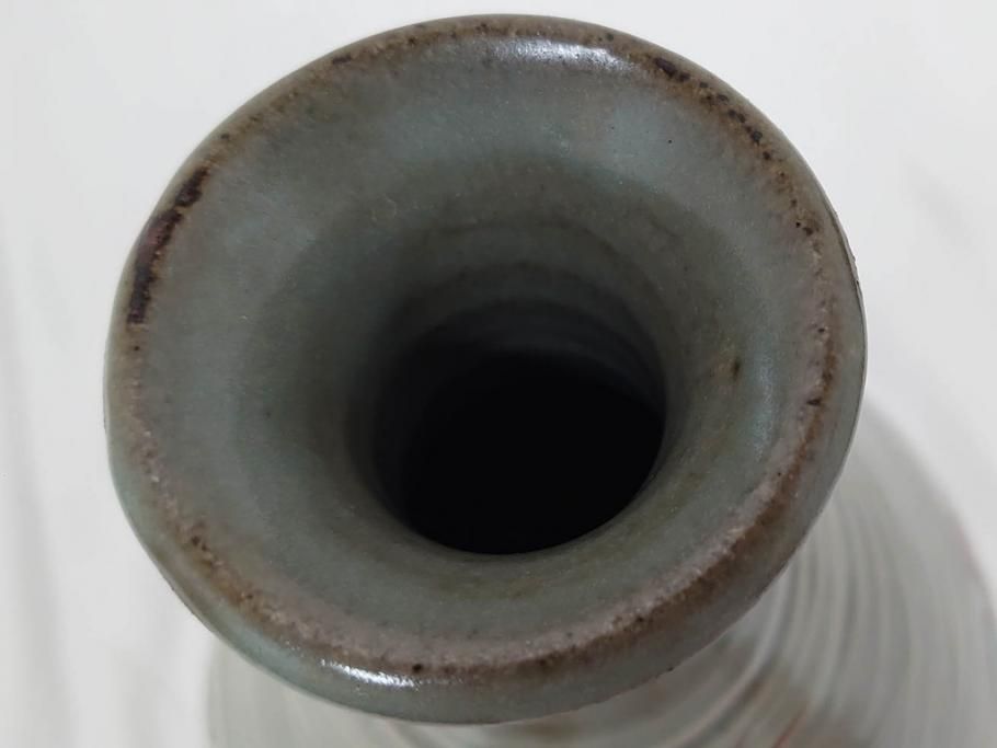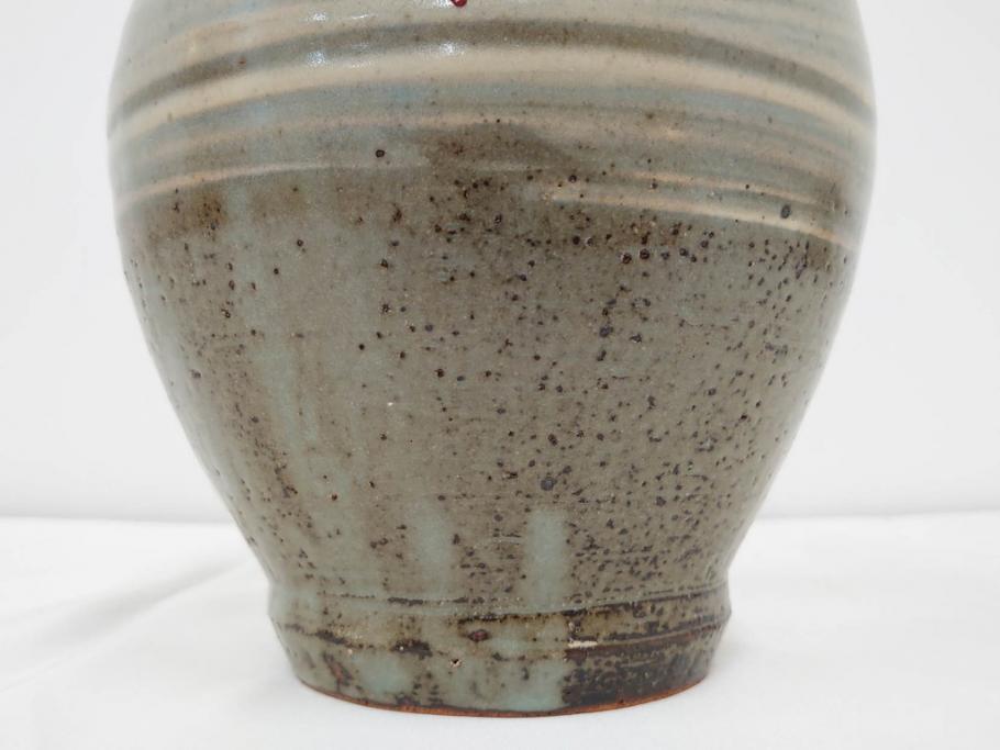雑貨> ガラス瓶・花瓶 > 人間国宝 島岡達三 印毛目 赤絵 高さ 約36cm 格調高い雰囲気を醸し出す壷(壺、花瓶、花器、花入、花生、共箱付)(R-084763)