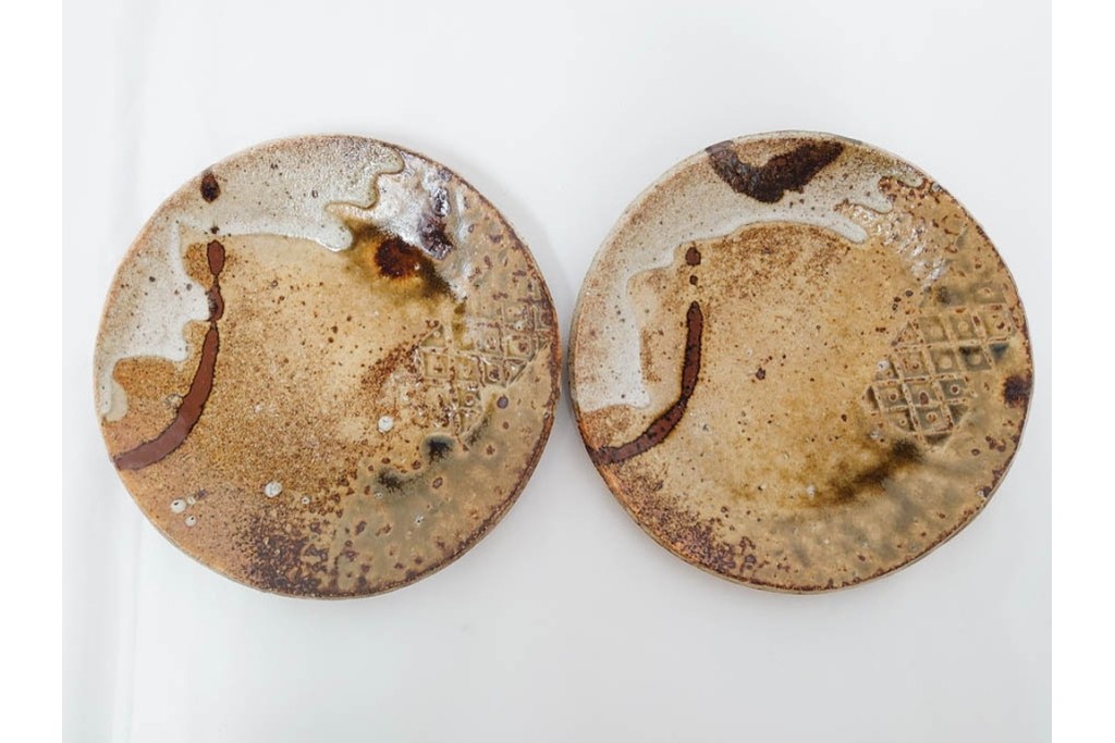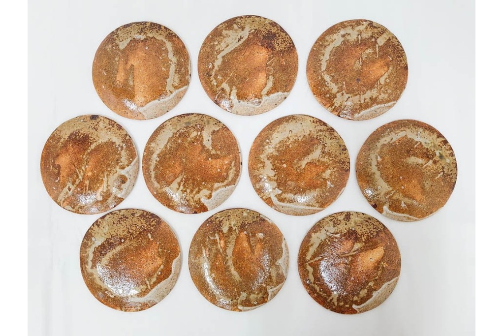 和食器・茶道具> 皿 > 岐阜県無形文化財 加藤十右衛門 美濃 約14cm 4.6寸 素朴な風合いが魅力の伊賀皿10枚セット (R-084767)