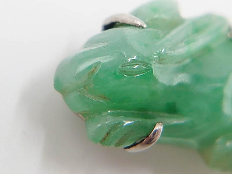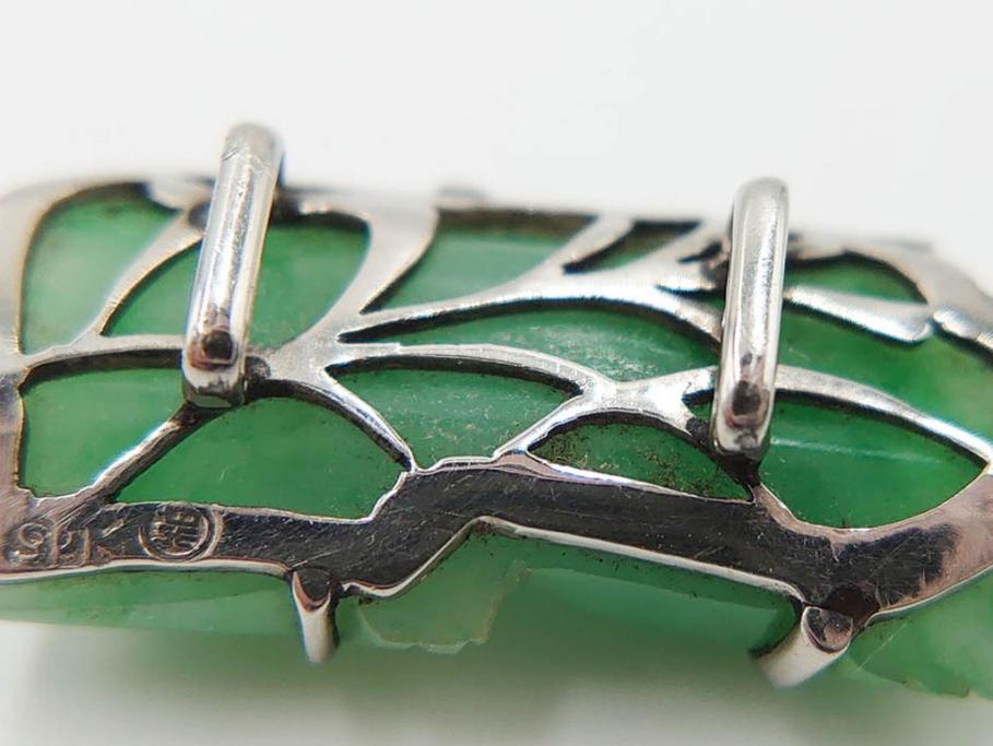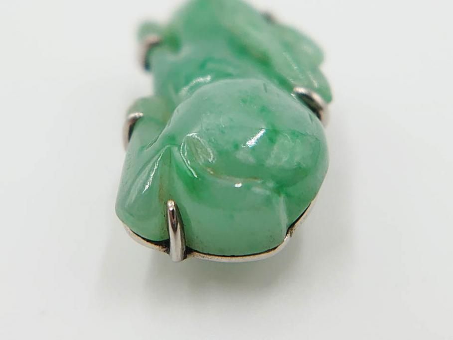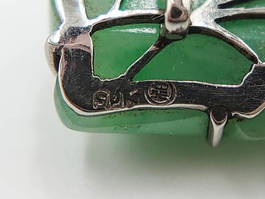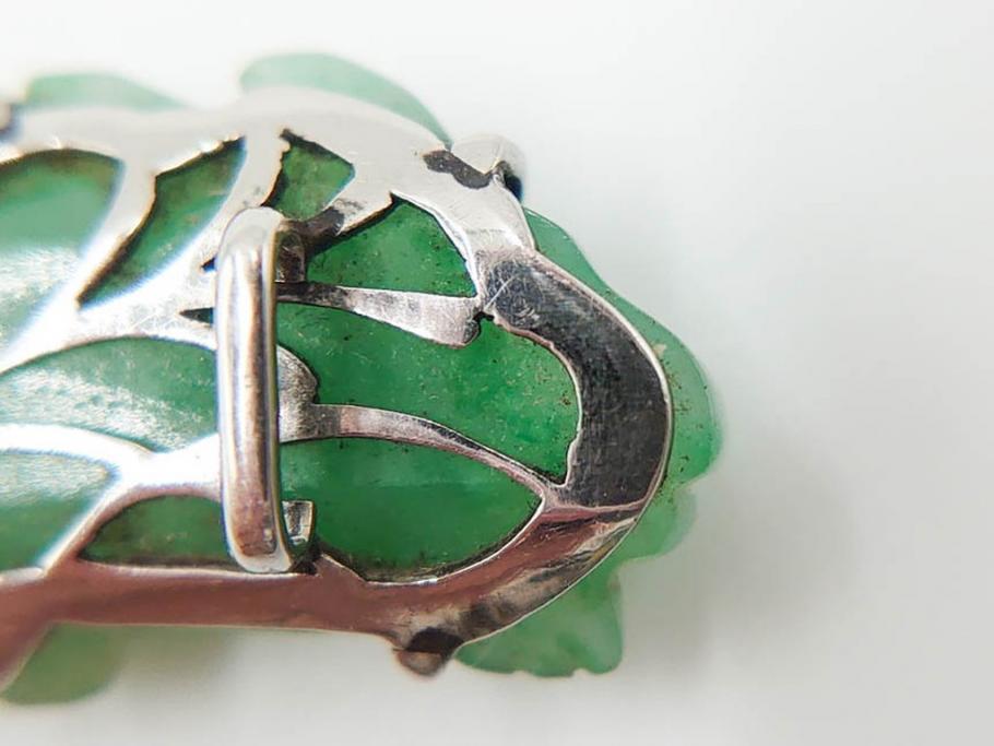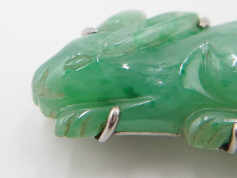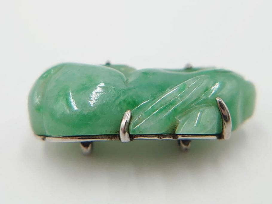 戦前 当時物 アンティーク 翡翠 兎 SPM刻印 柏 在銘 丁寧に彫刻された可愛らしい帯留(ヒスイ、うさぎ、ウサギ、着物道具、和装小物、アクセサリー)(R-084770)