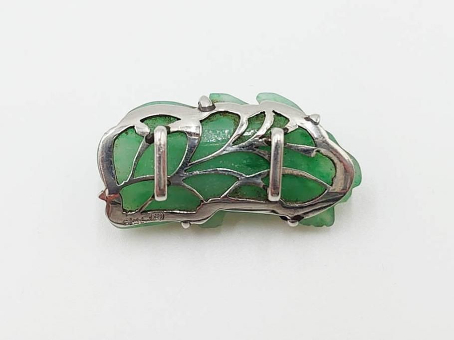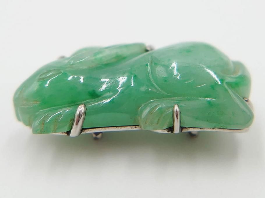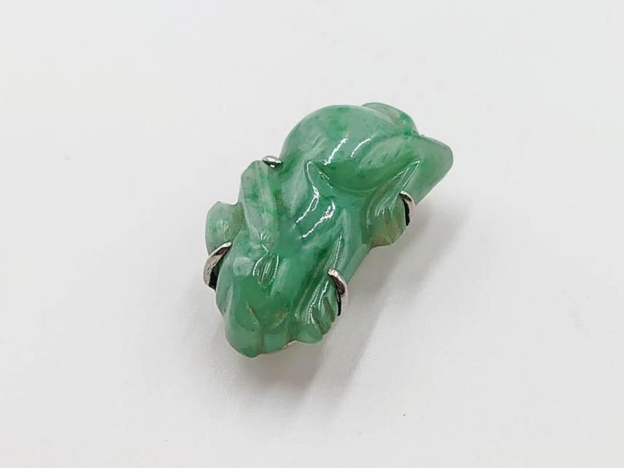 ラフジュ工房> アクセサリー > 戦前 当時物 アンティーク 翡翠 兎 SPM刻印 柏 在銘 丁寧に彫刻された可愛らしい帯留(ヒスイ、うさぎ、ウサギ、着物道具、和装小物、アクセサリー)(R-084770)