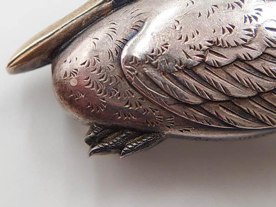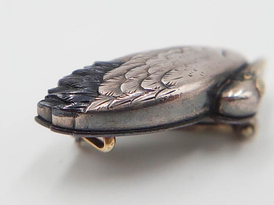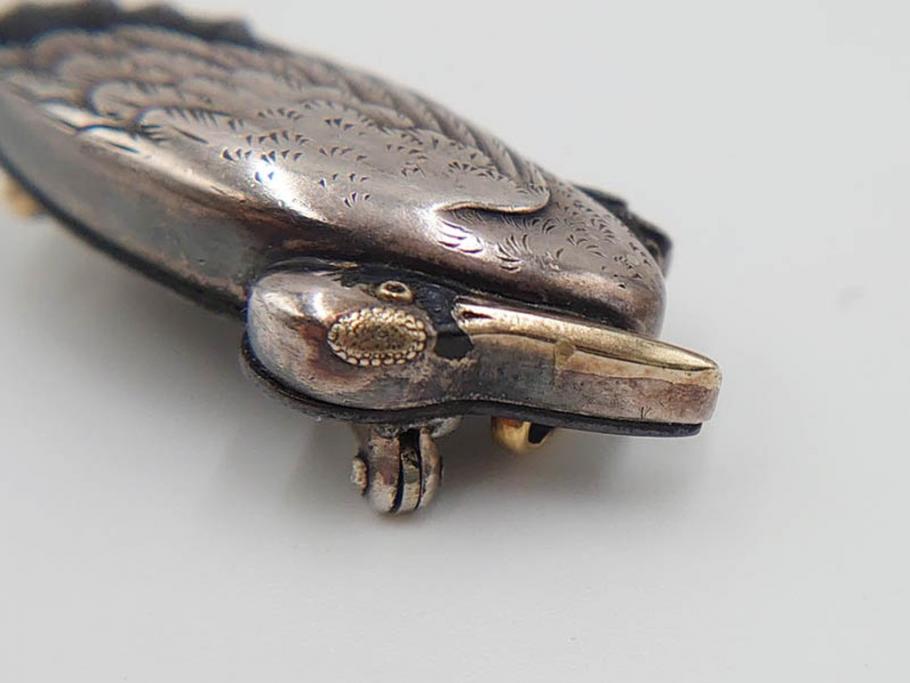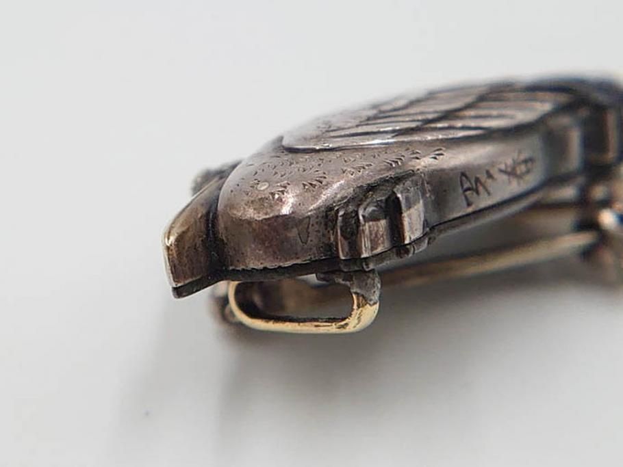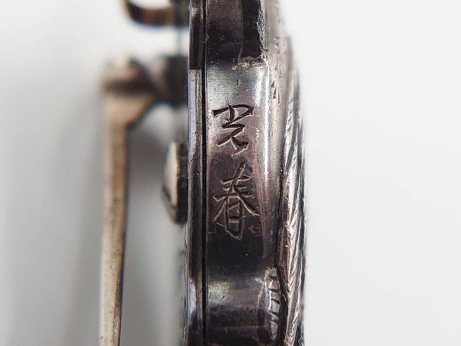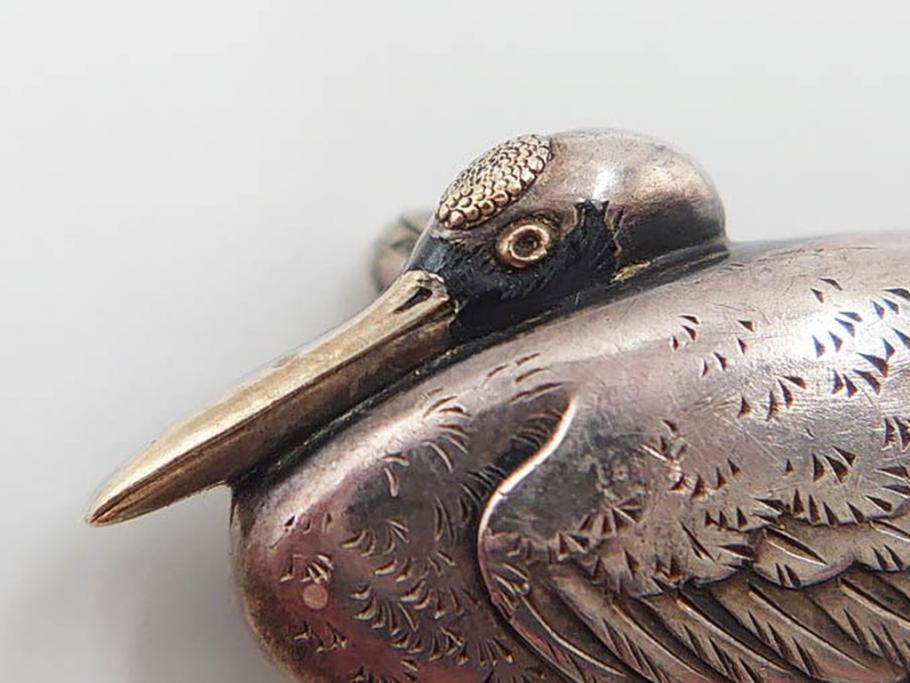 戦前 当時物 アンティーク 彫金家 桂光春 鶴 繊細な彫刻が見事な帯留(つる、ツル、鳥、帯留め、ブローチ、着物道具、和装小物、アクセサリー)(R-084775)