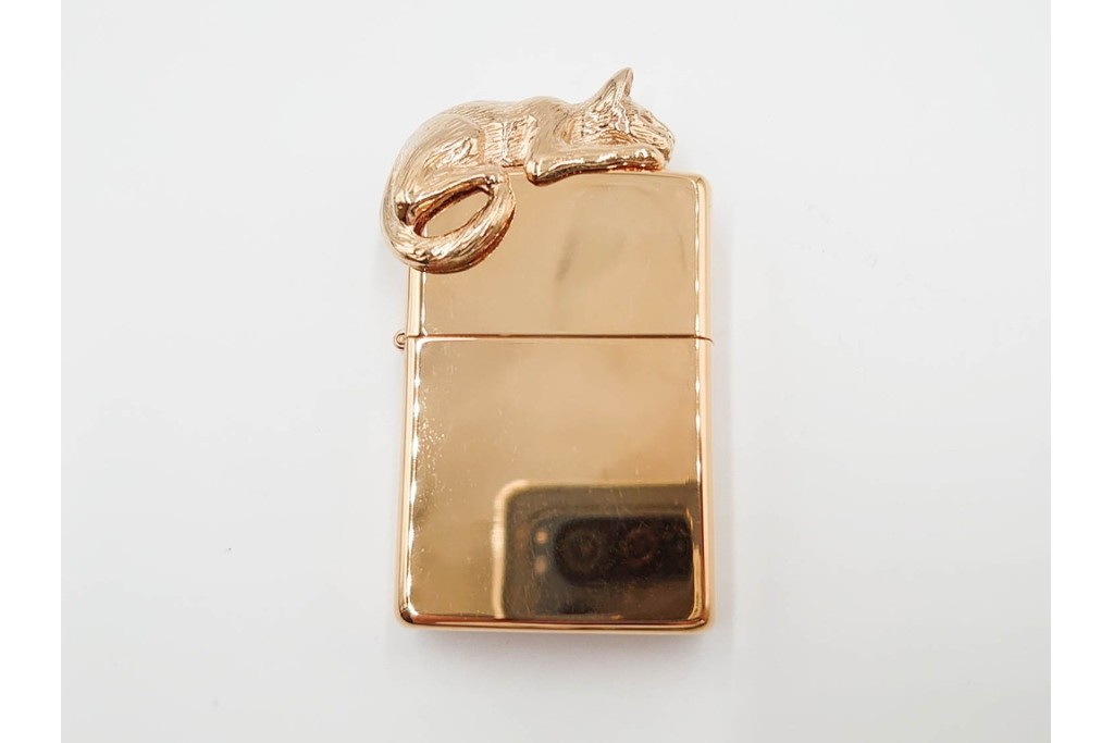 雑貨 > 1992年製 ZIPPO(ジッポー) ゴールド 猫のデザインが優雅さを演出するライター (R-084778)
