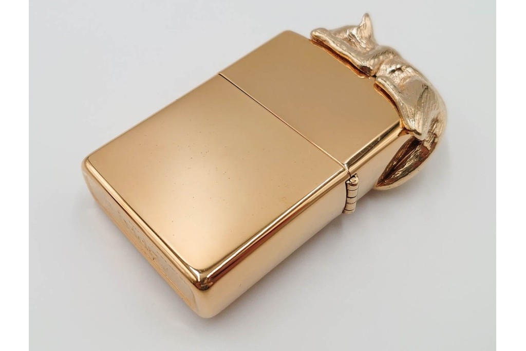 1992年製 ZIPPO(ジッポー) ゴールド 猫のデザインが優雅さを演出するライター (R-084778)