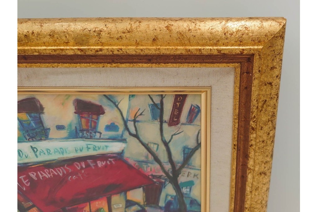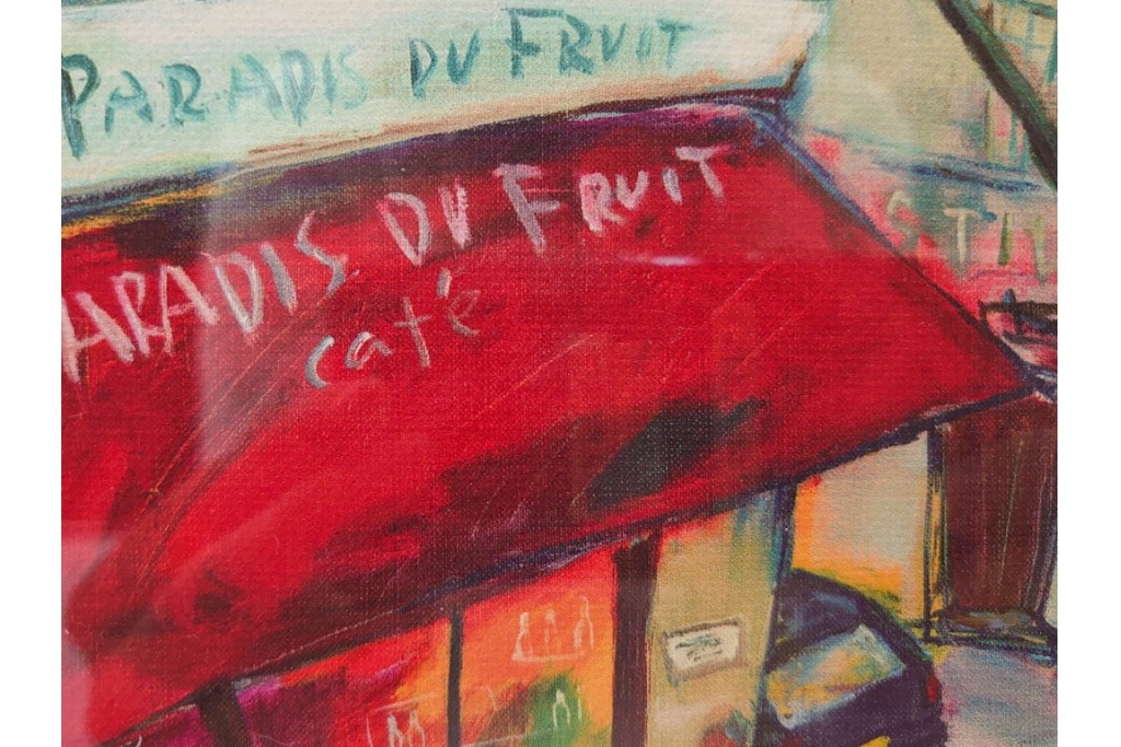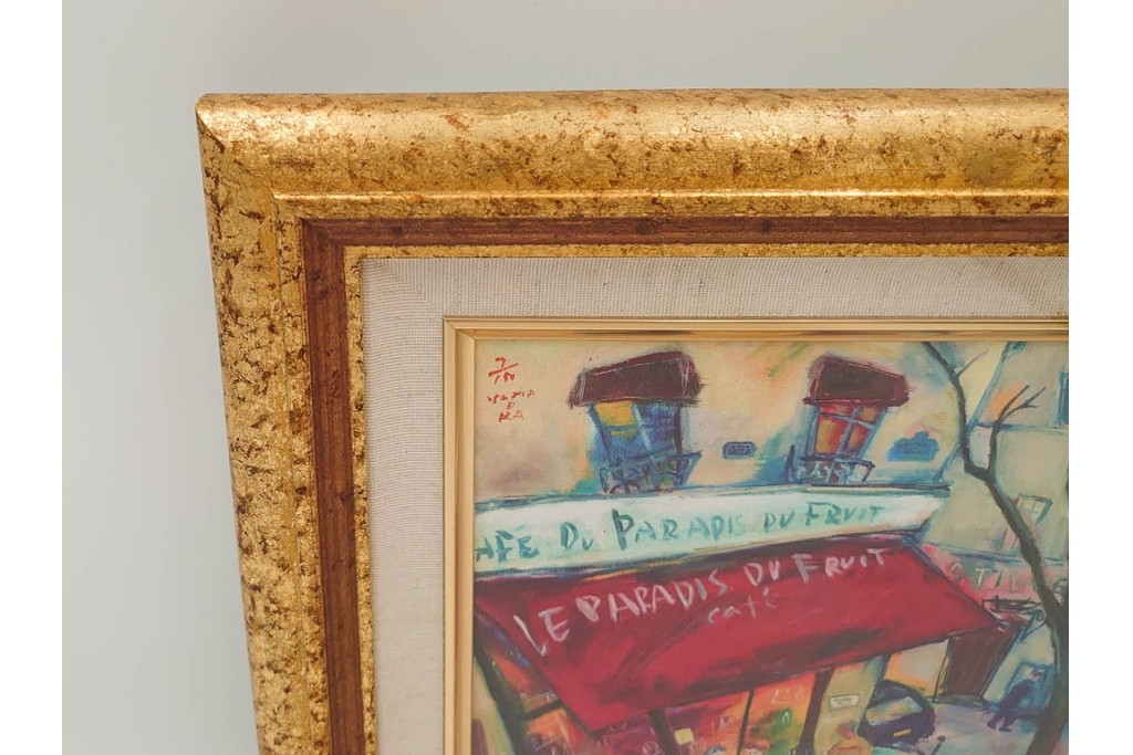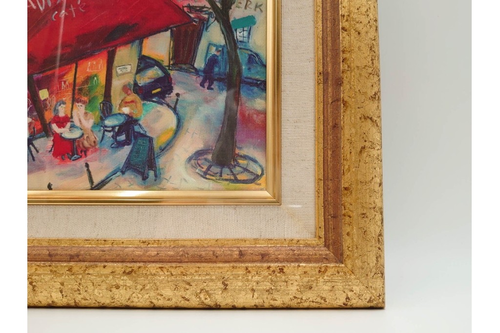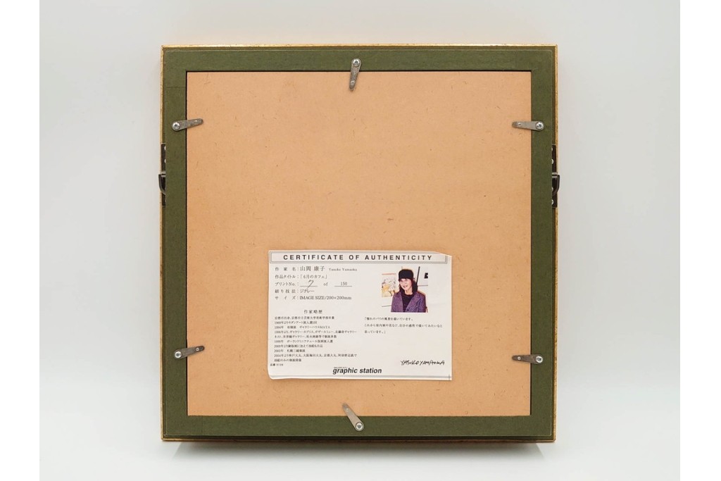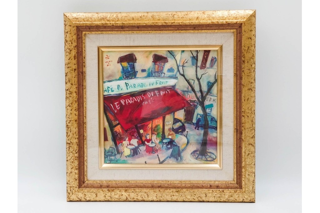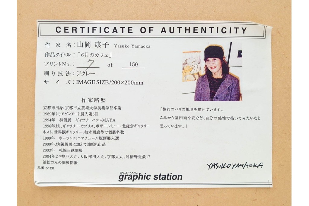 真作 山岡康子 「6月のカフェ」 7/150 パリの風景を描いたジクレー版画 (R-84789)