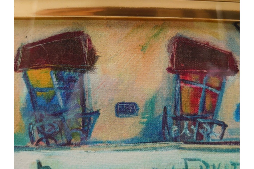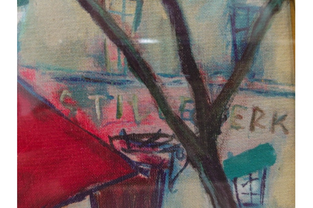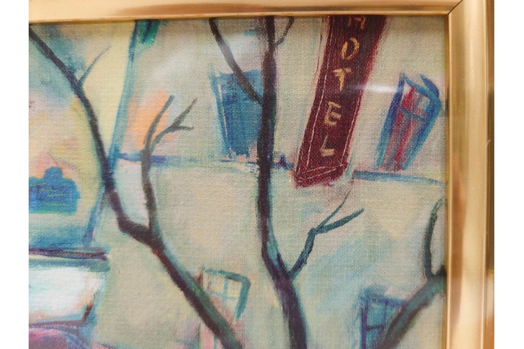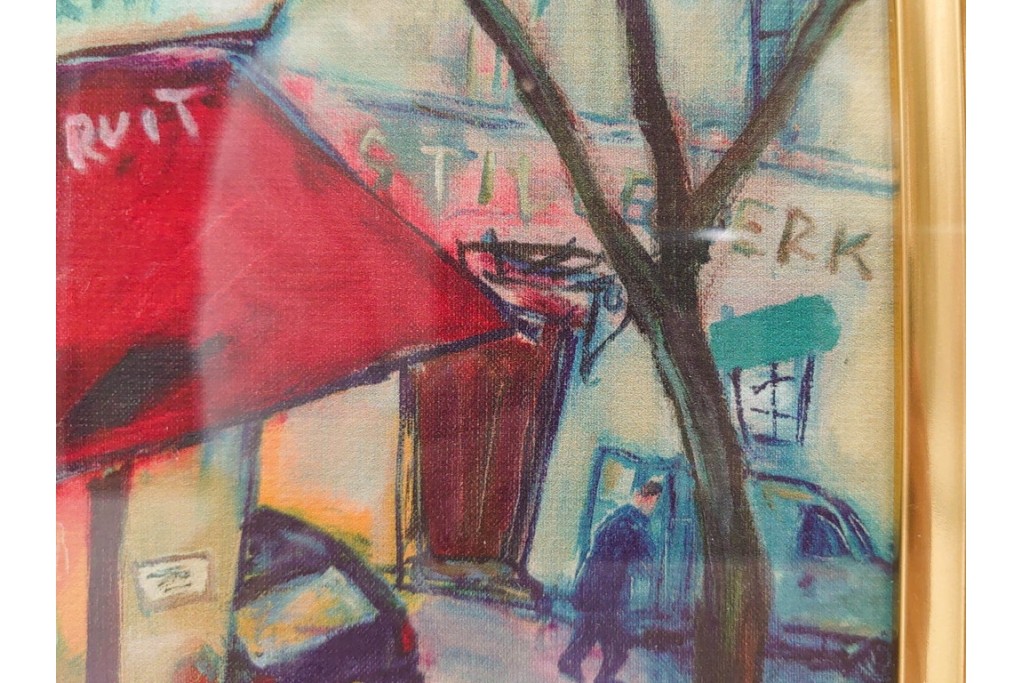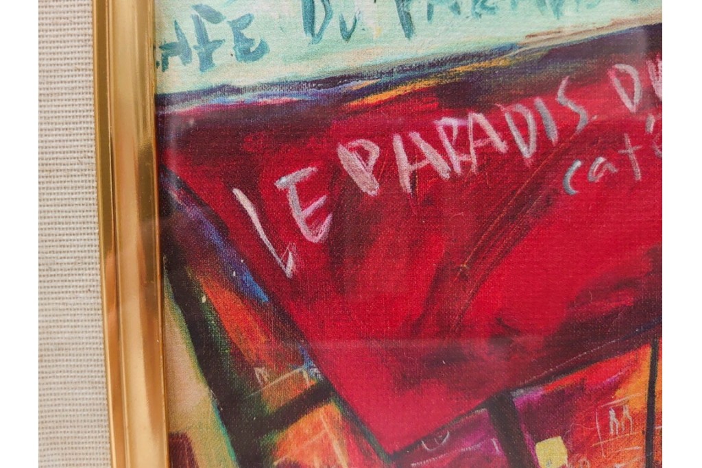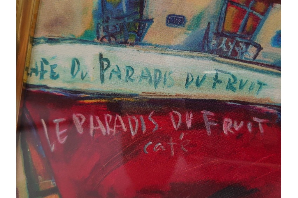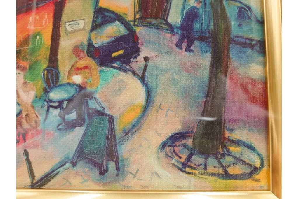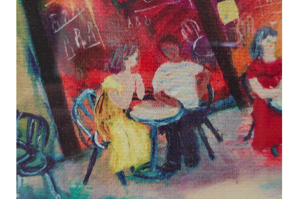 真作 山岡康子 「6月のカフェ」 7/150 パリの風景を描いたジクレー版画 (R-84789)