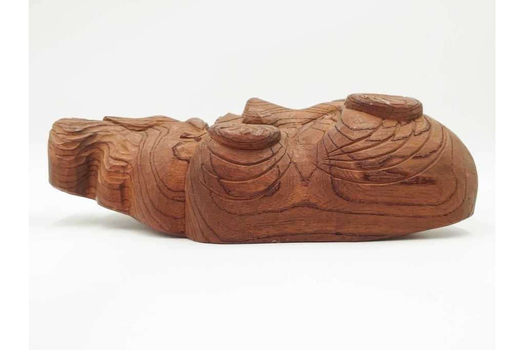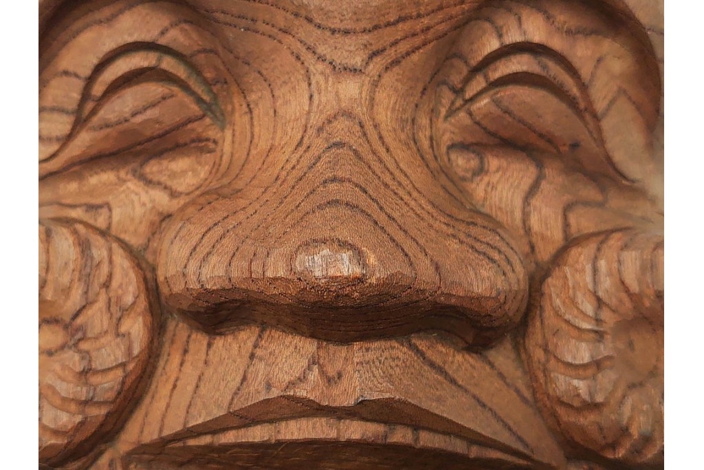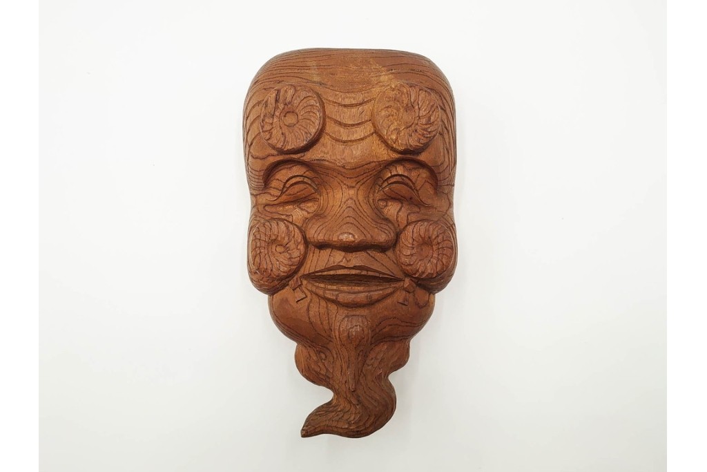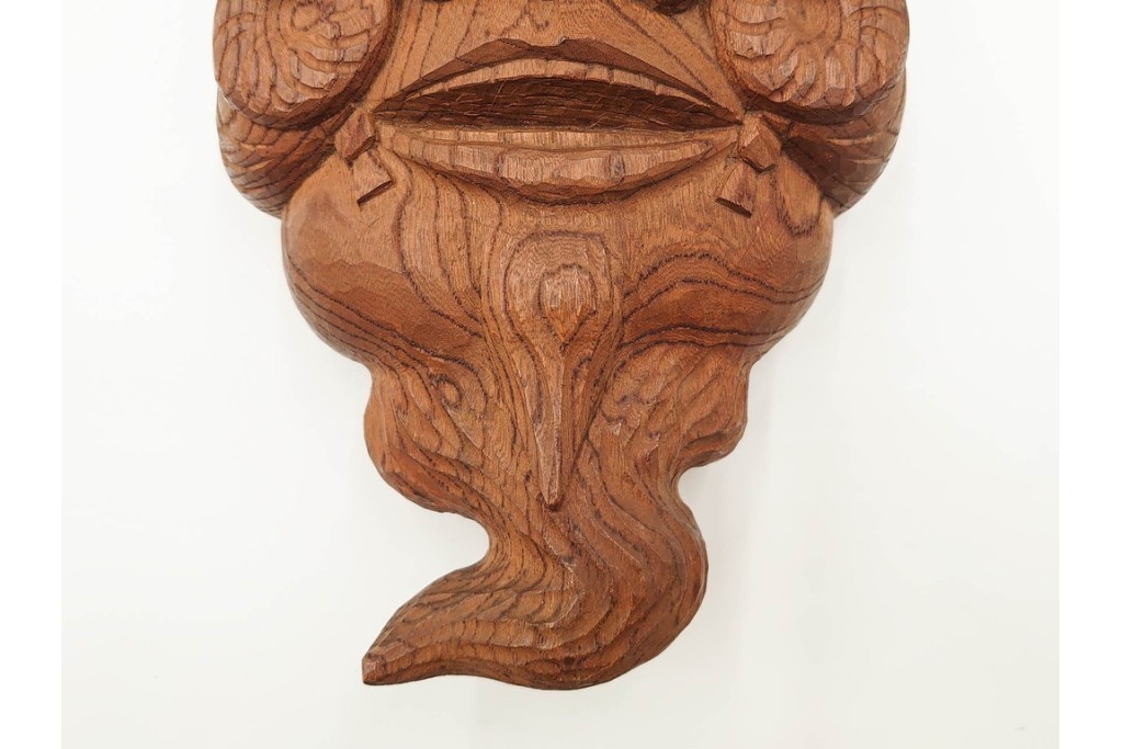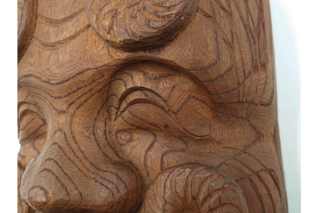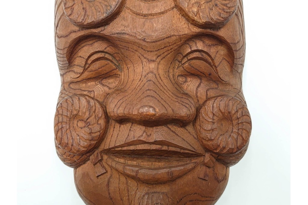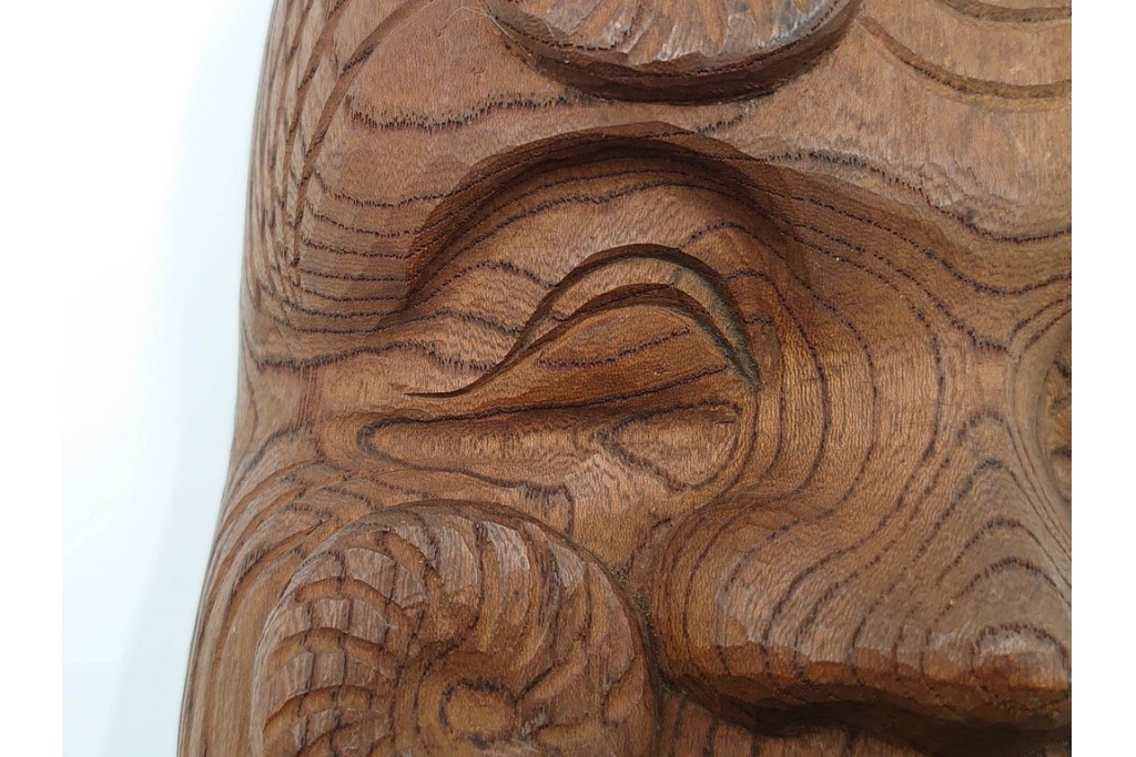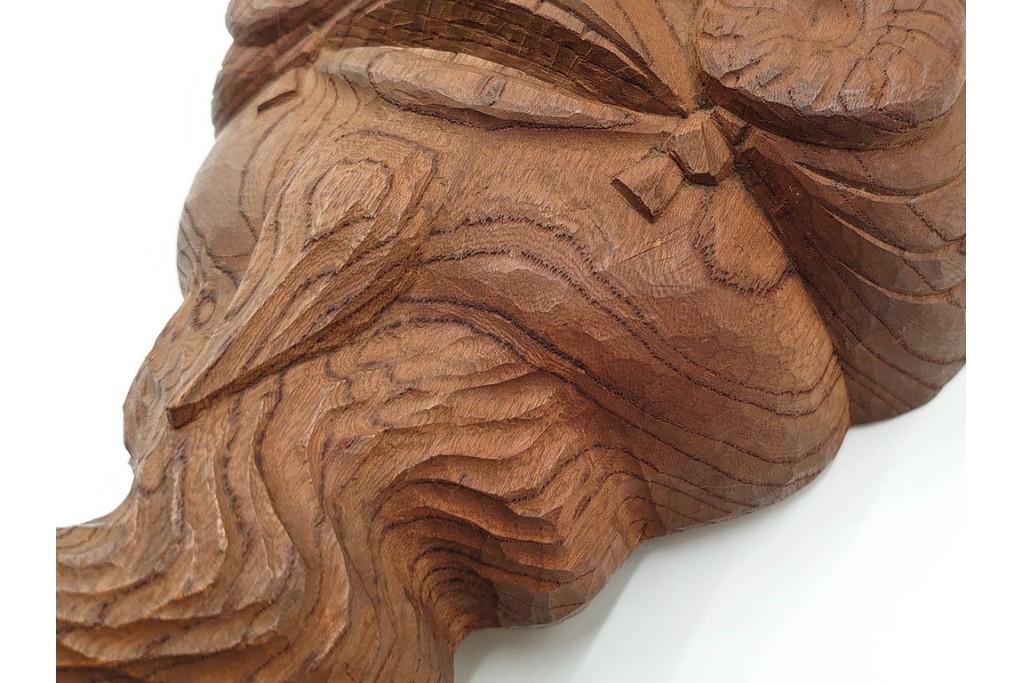 芳雲作 欅(ケヤキ)材 年輪をいかした木彫の翁面 (R-084792)